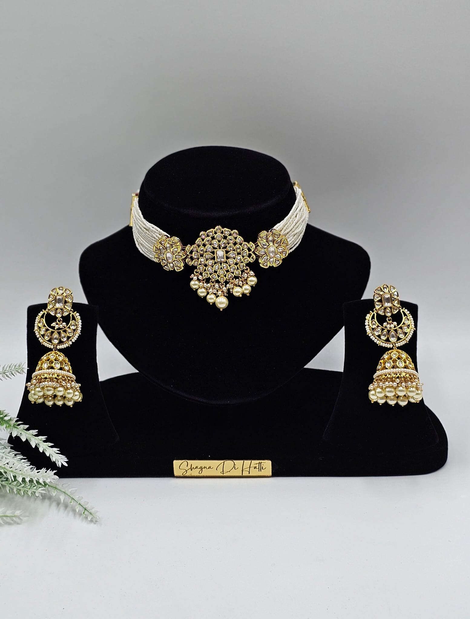Gold plated kundan simulated with Pearl's.