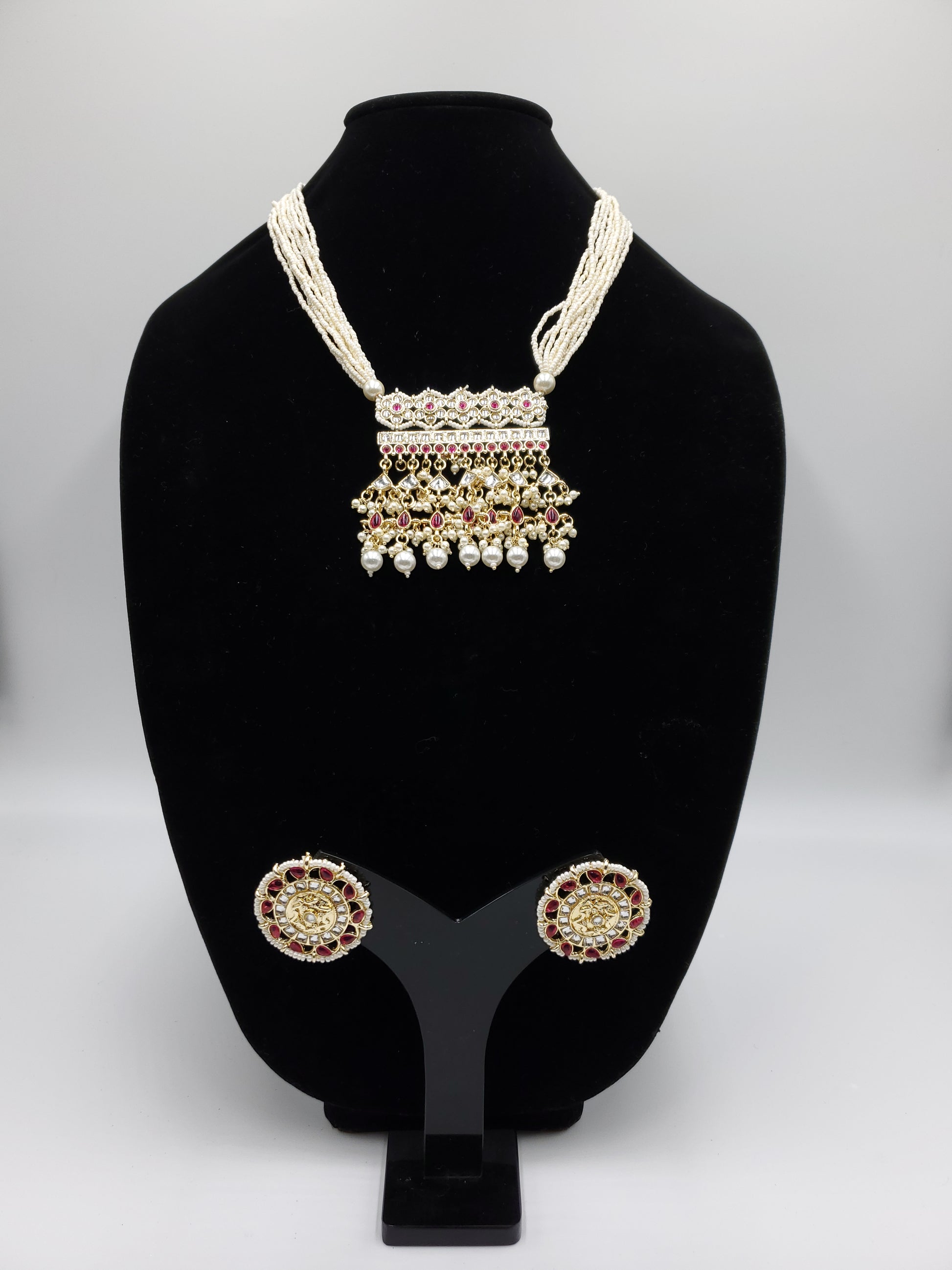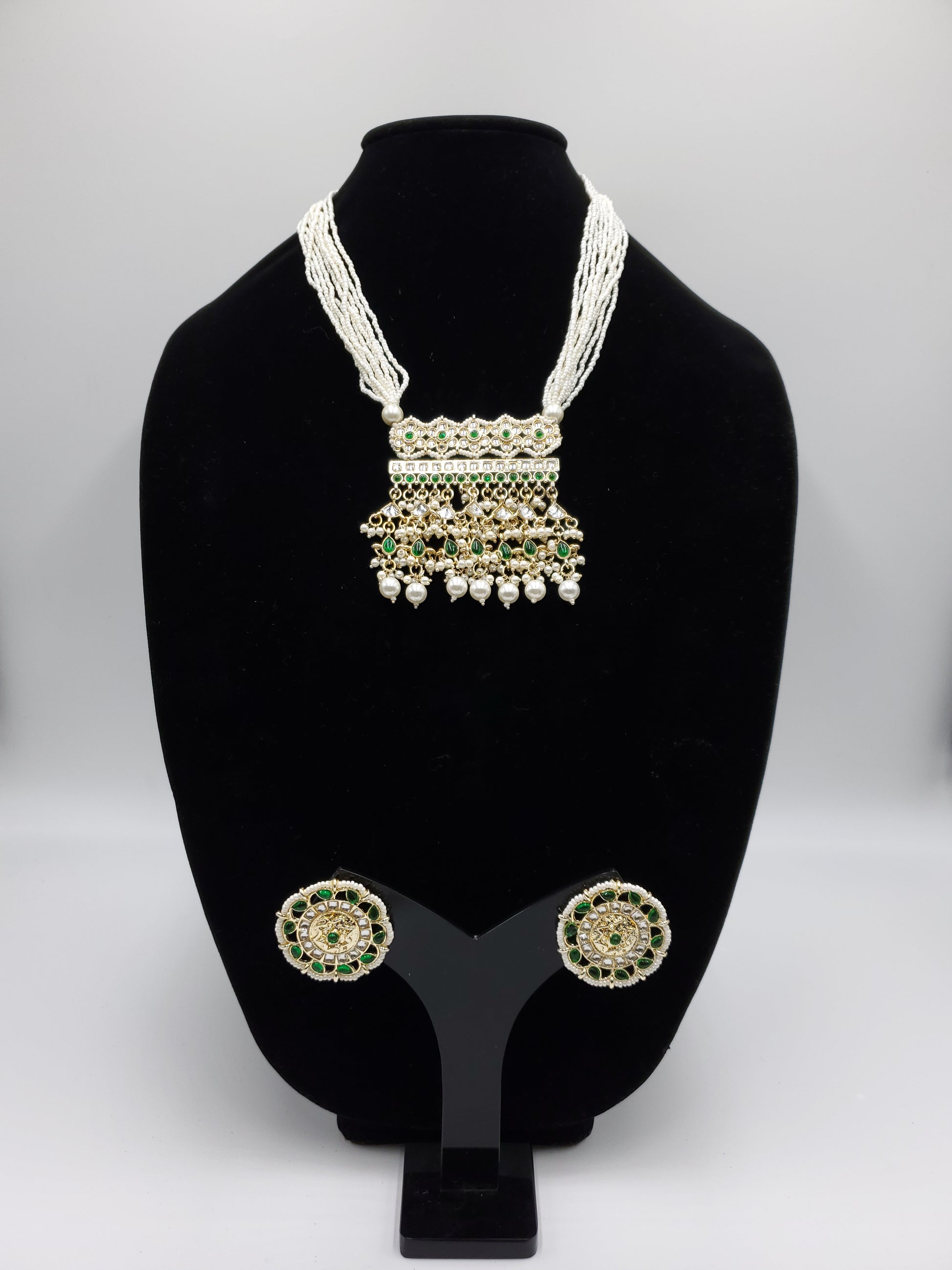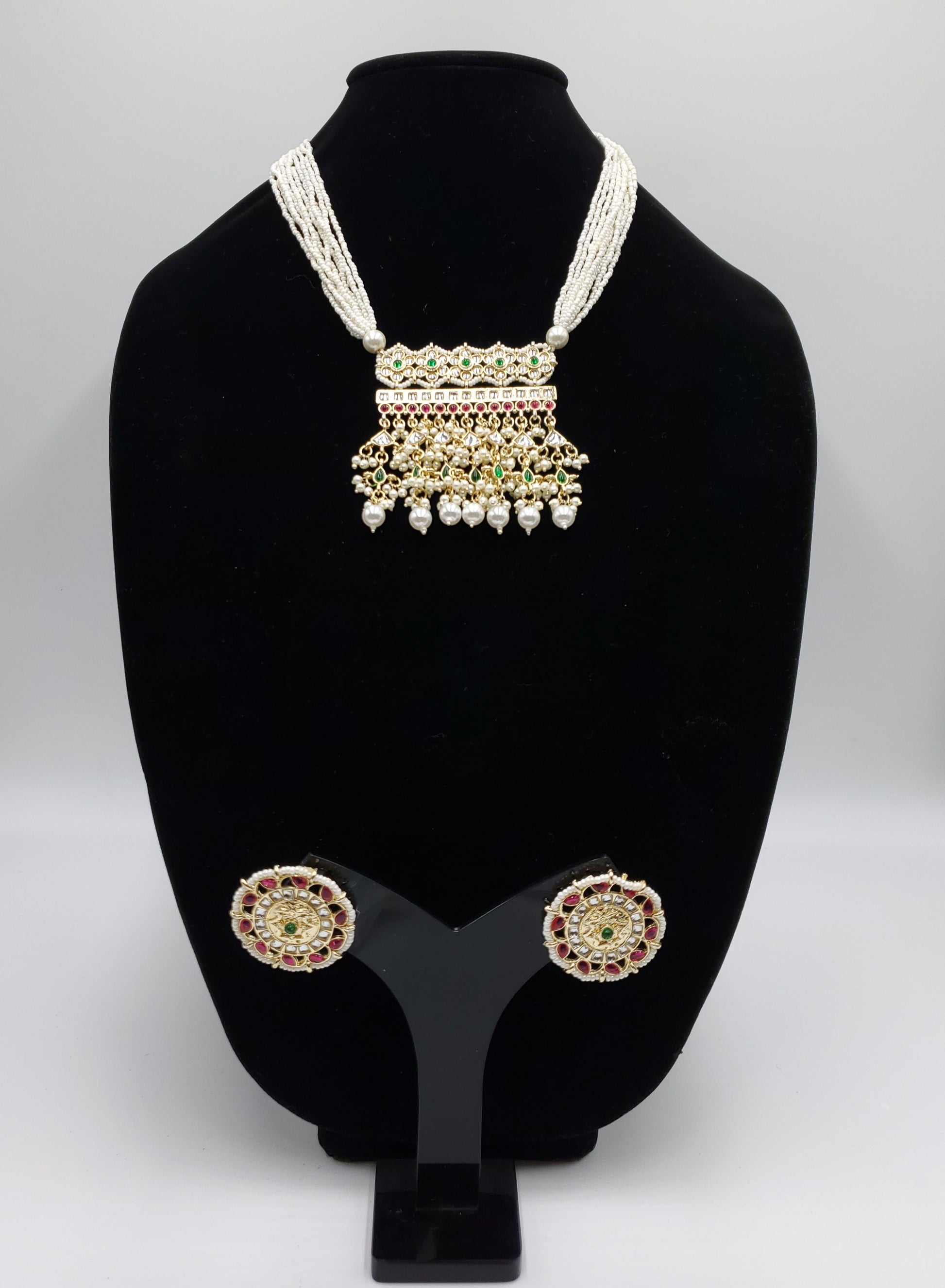 Gold Tone Simulated with kundan and polki stone necklace with beeds