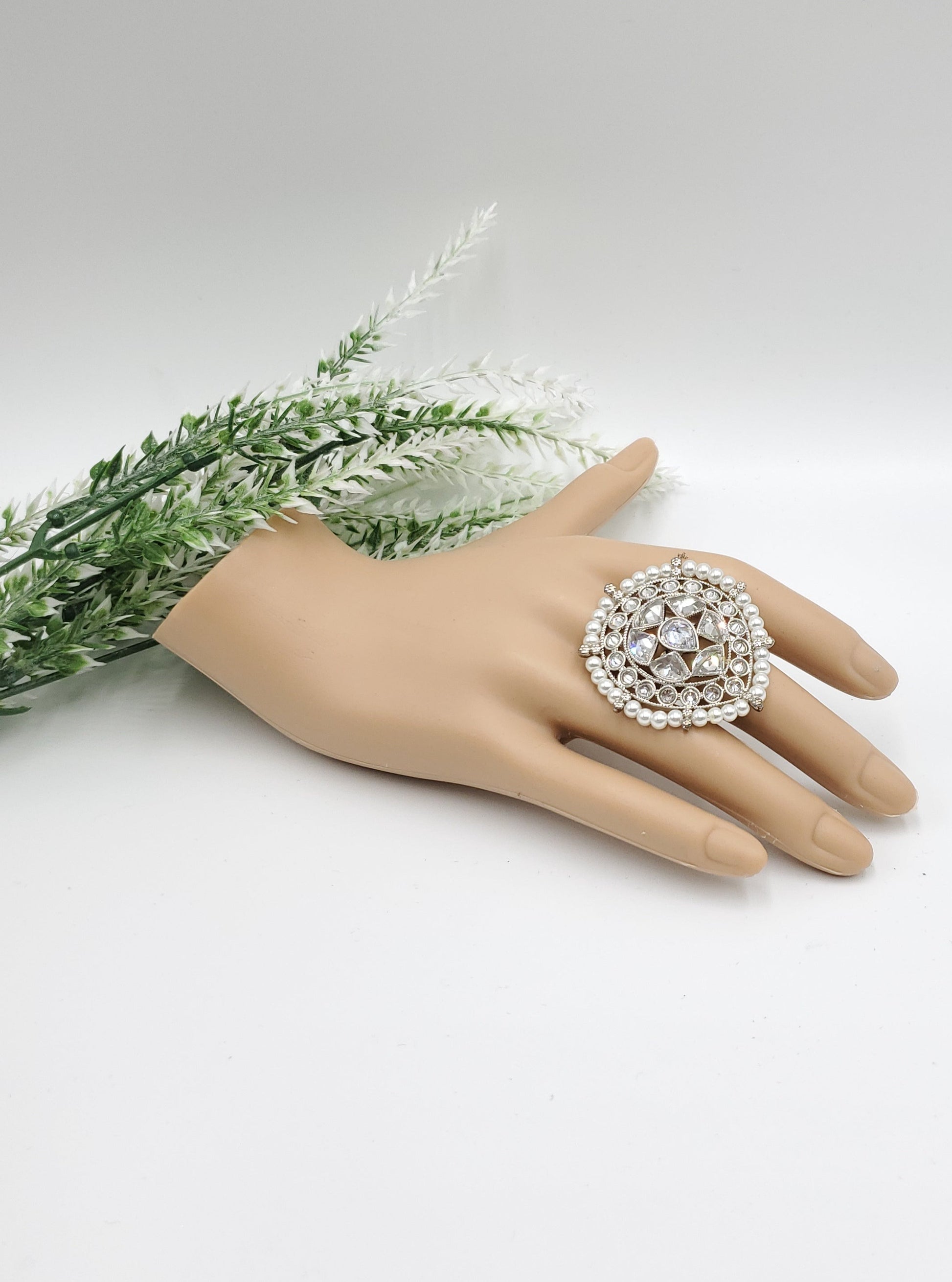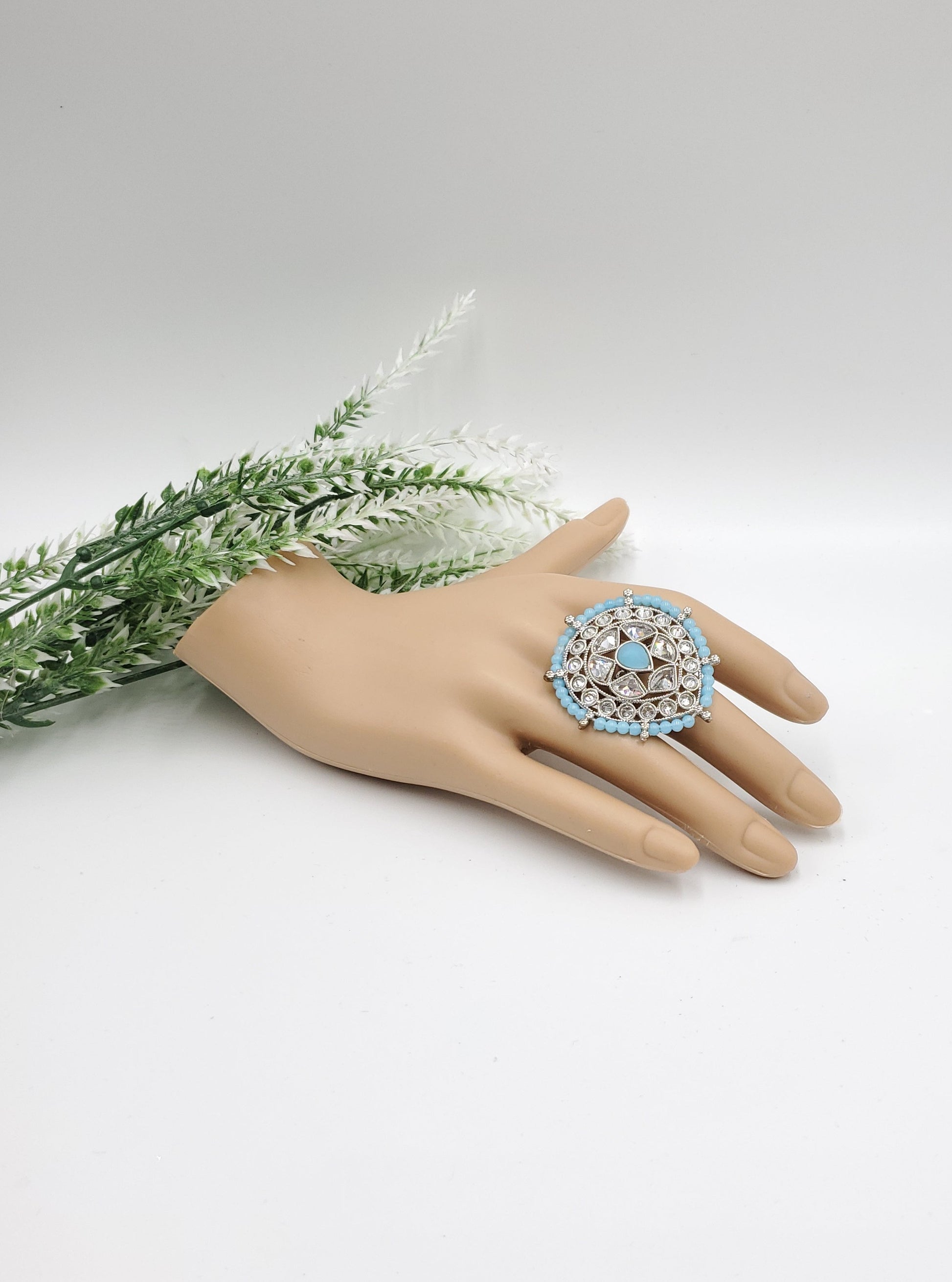 Silver tone Simulated with polki stone and colored beeds adjustable size.