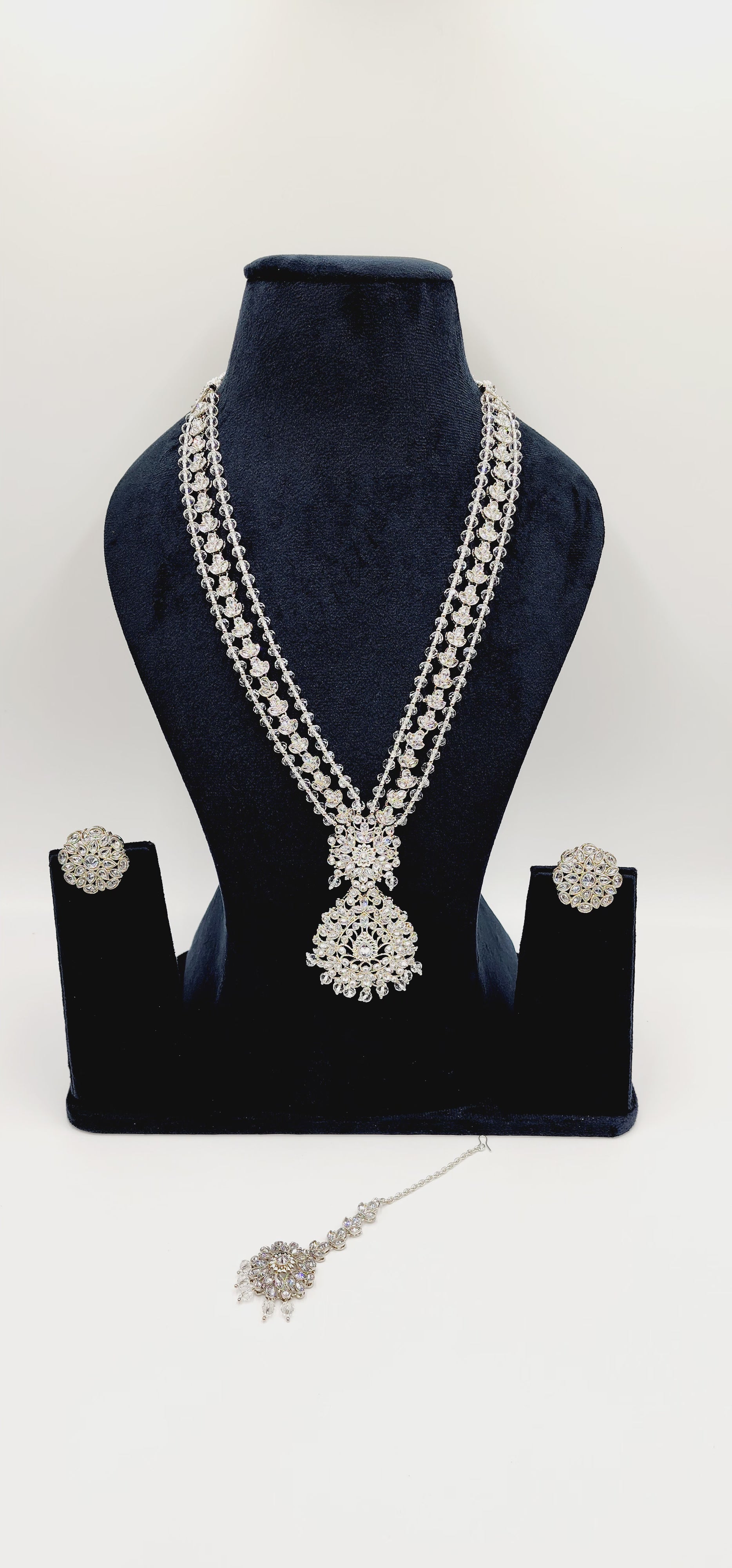 Silver tone with polki stone and Simulated with clear pearls and beads.
