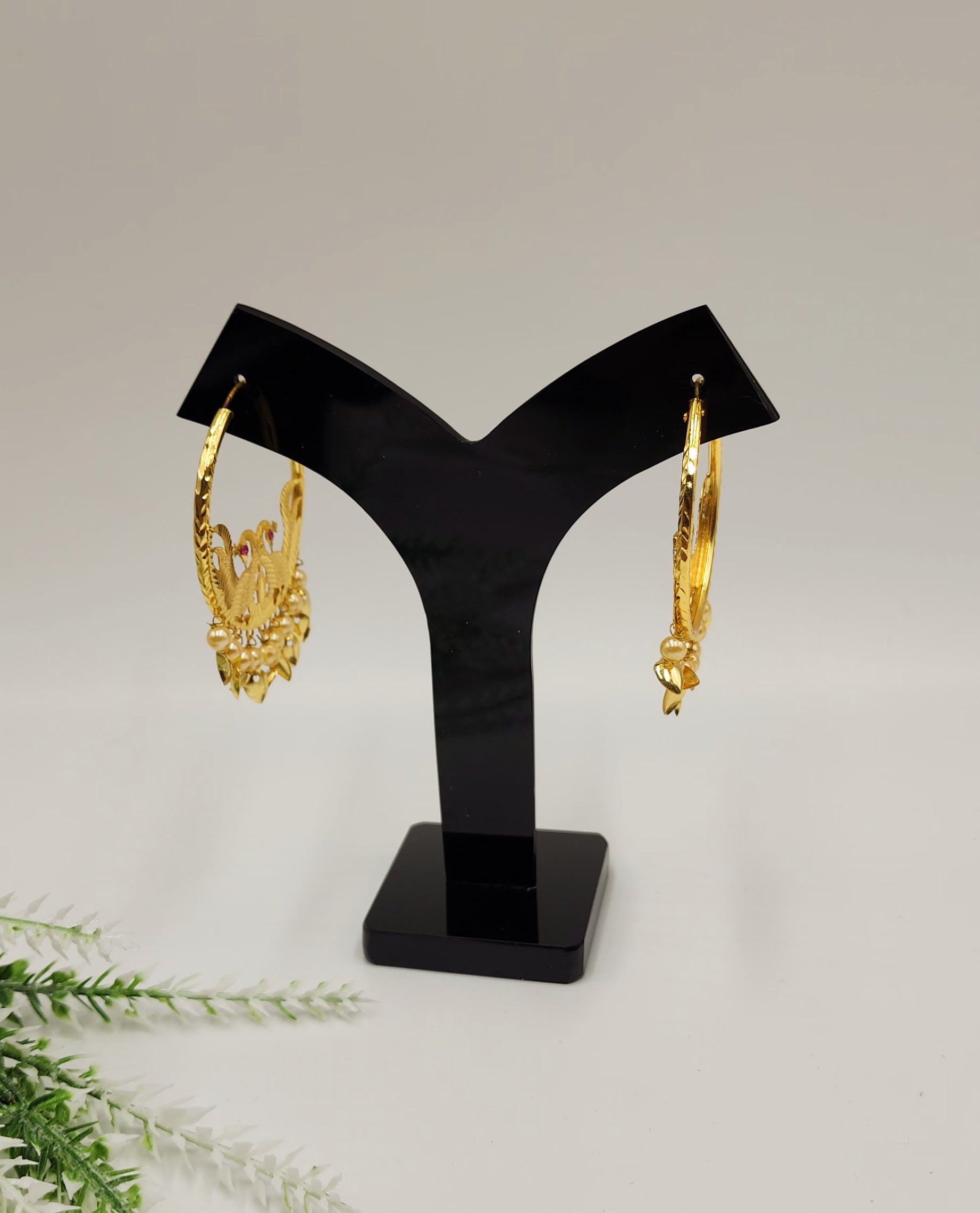 Gold Tone traditional earrings with ਪਿੱਪਲ ਪਤੀ