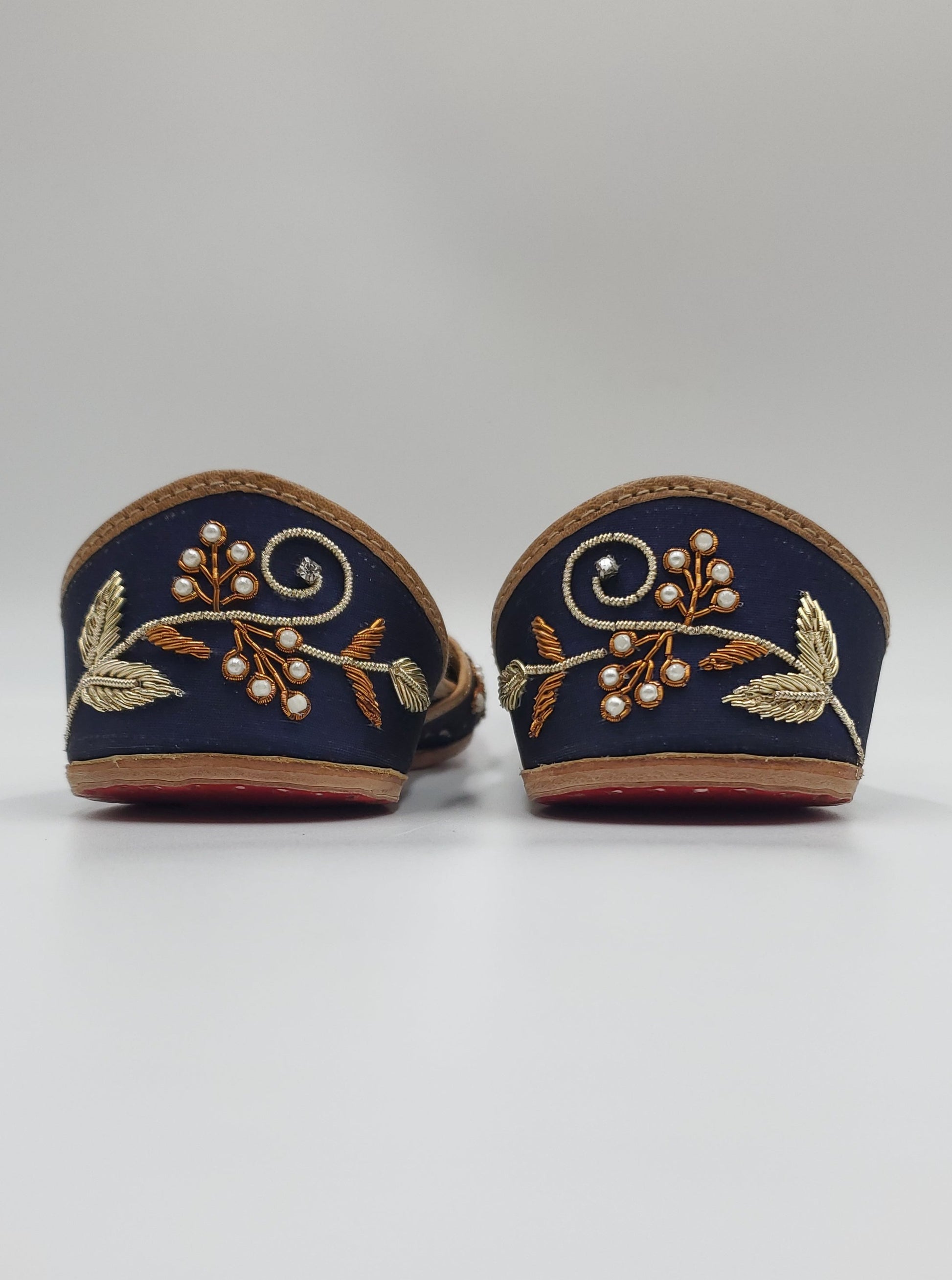 JULIA blue jutti beautifully handcrafted with embellished with gold beads. The interior is made of genuine leather and double cushioned making the jutti very comfortable to wear.