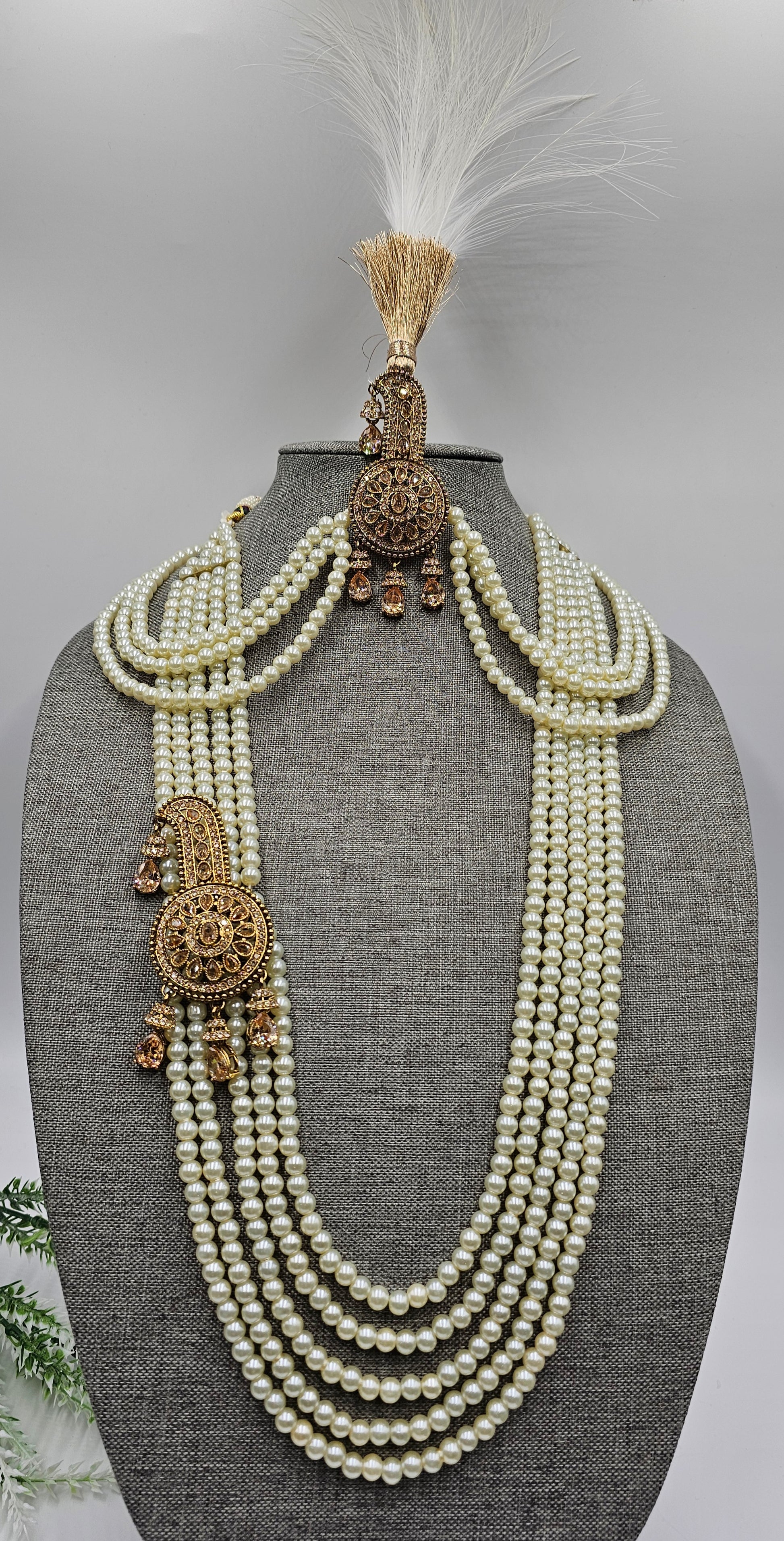 Good quality polki kalgi with Pearl's mala. Feather can be changed to Red