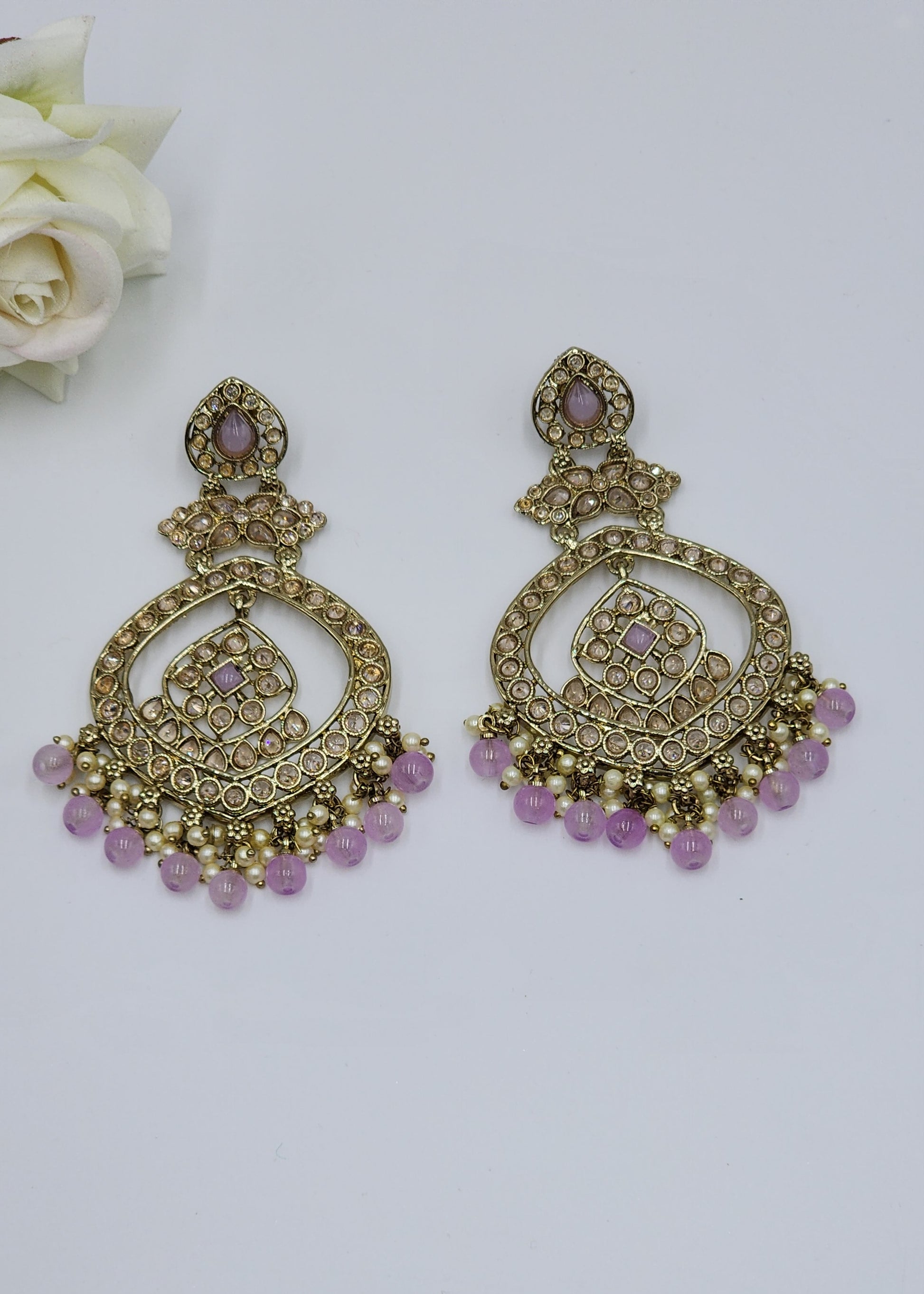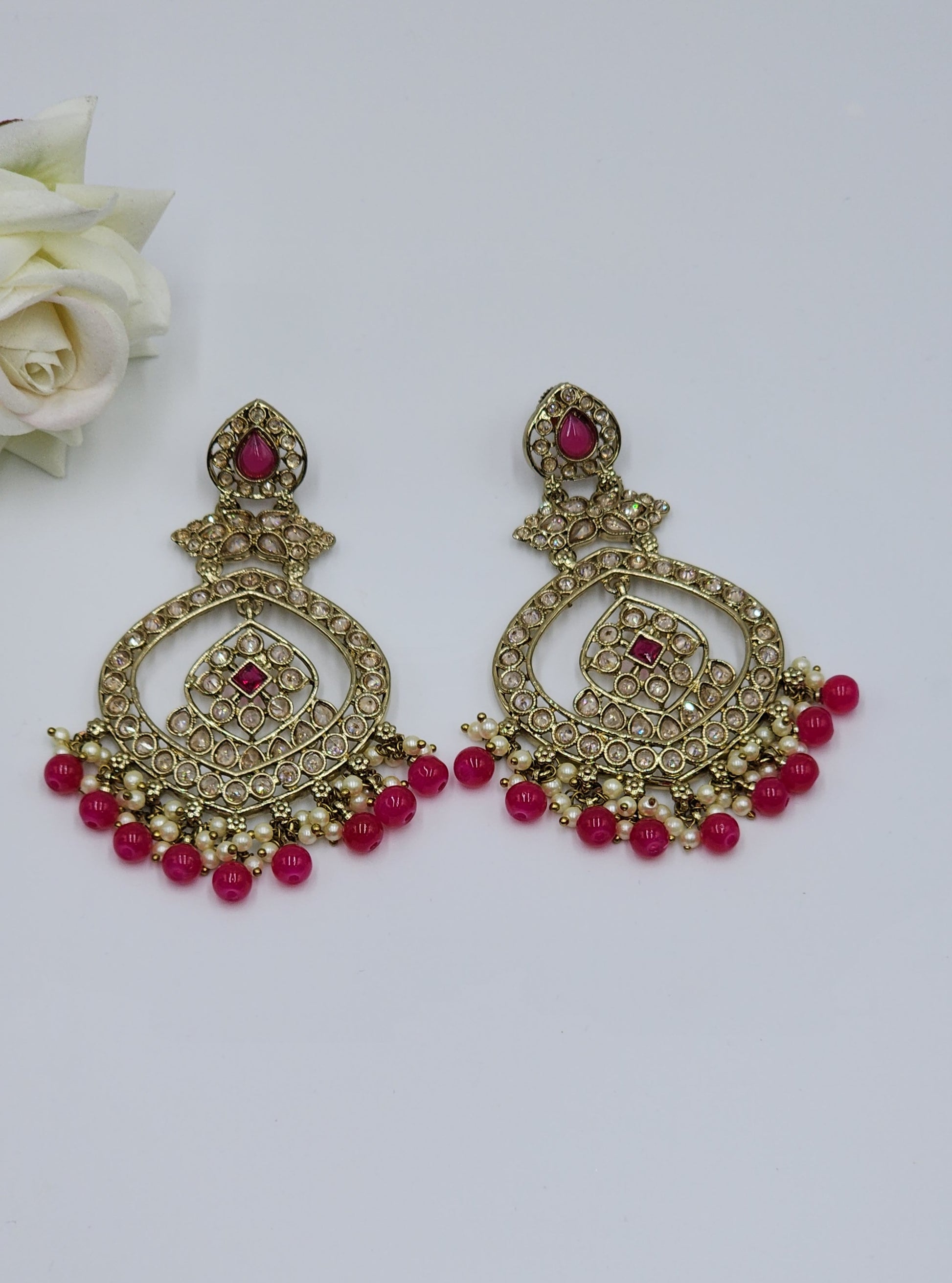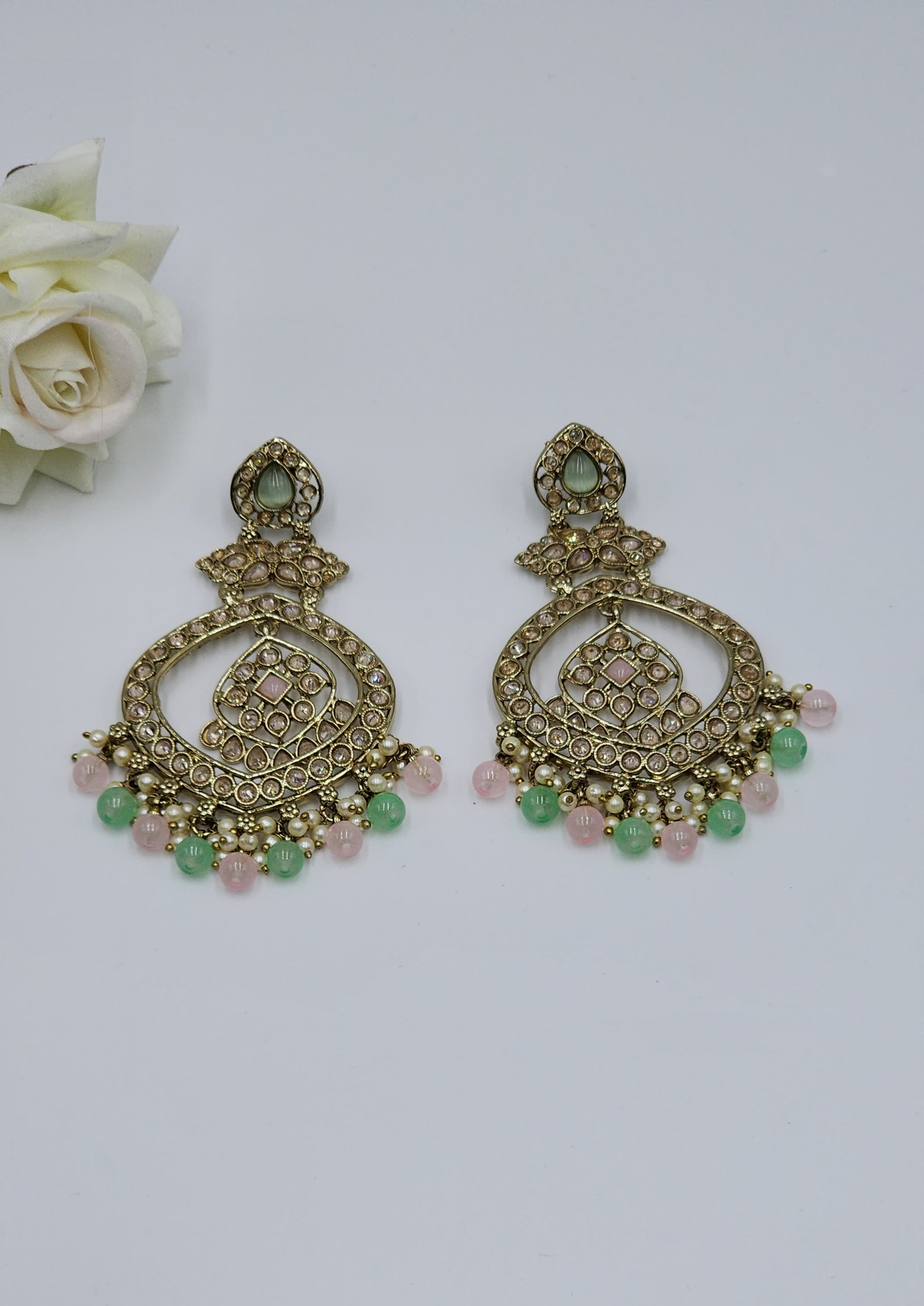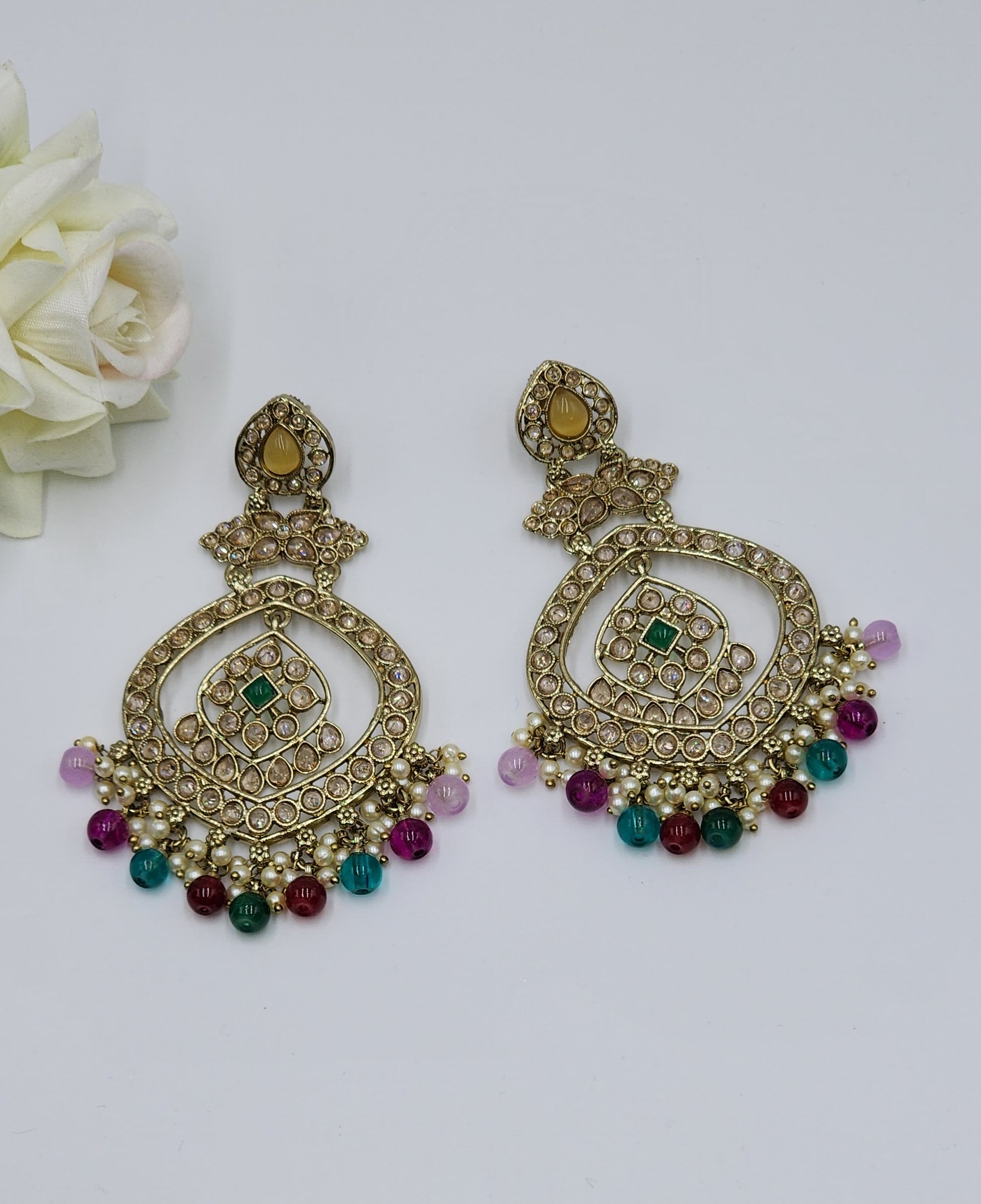 Polki Earrings with color pearls.