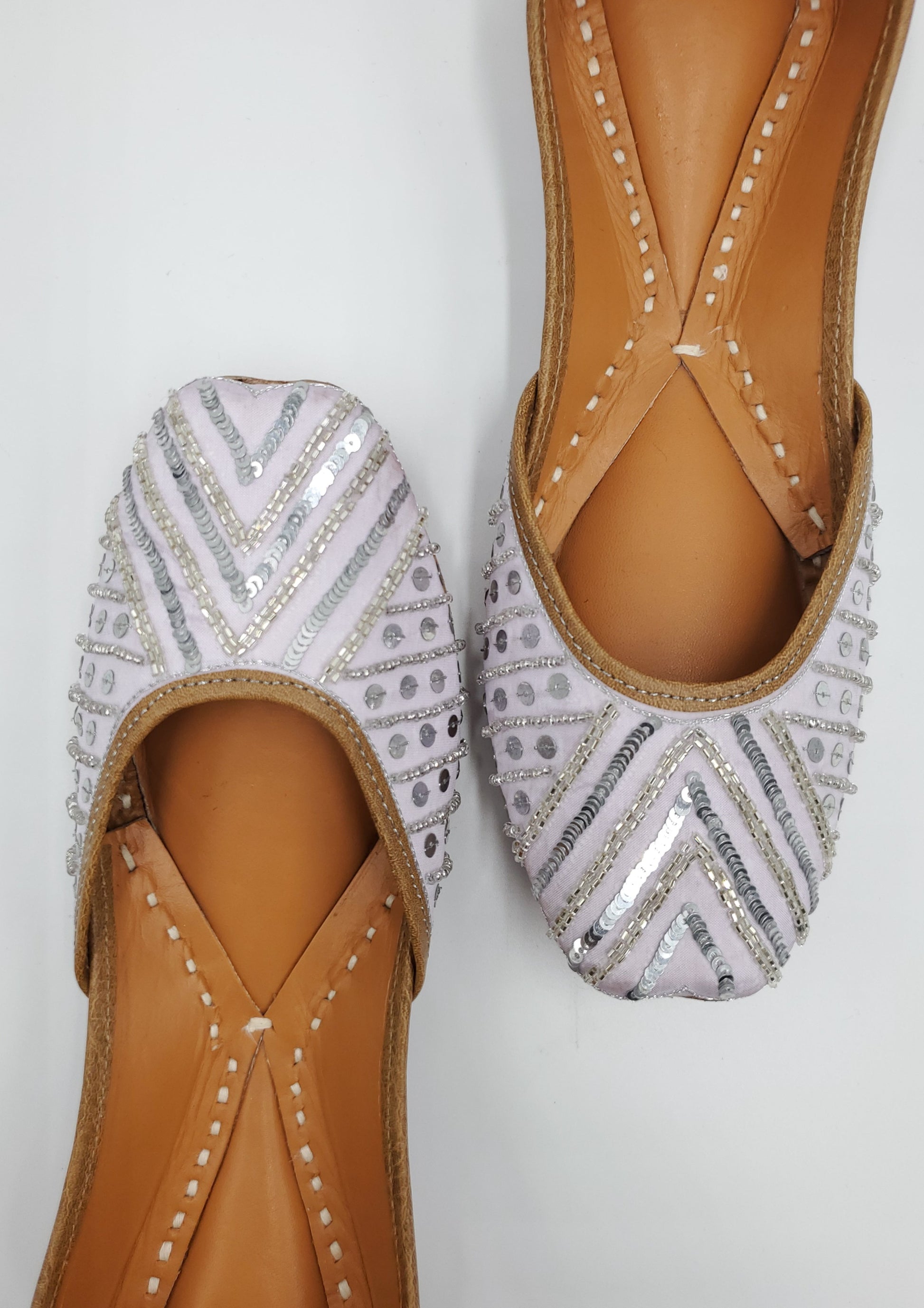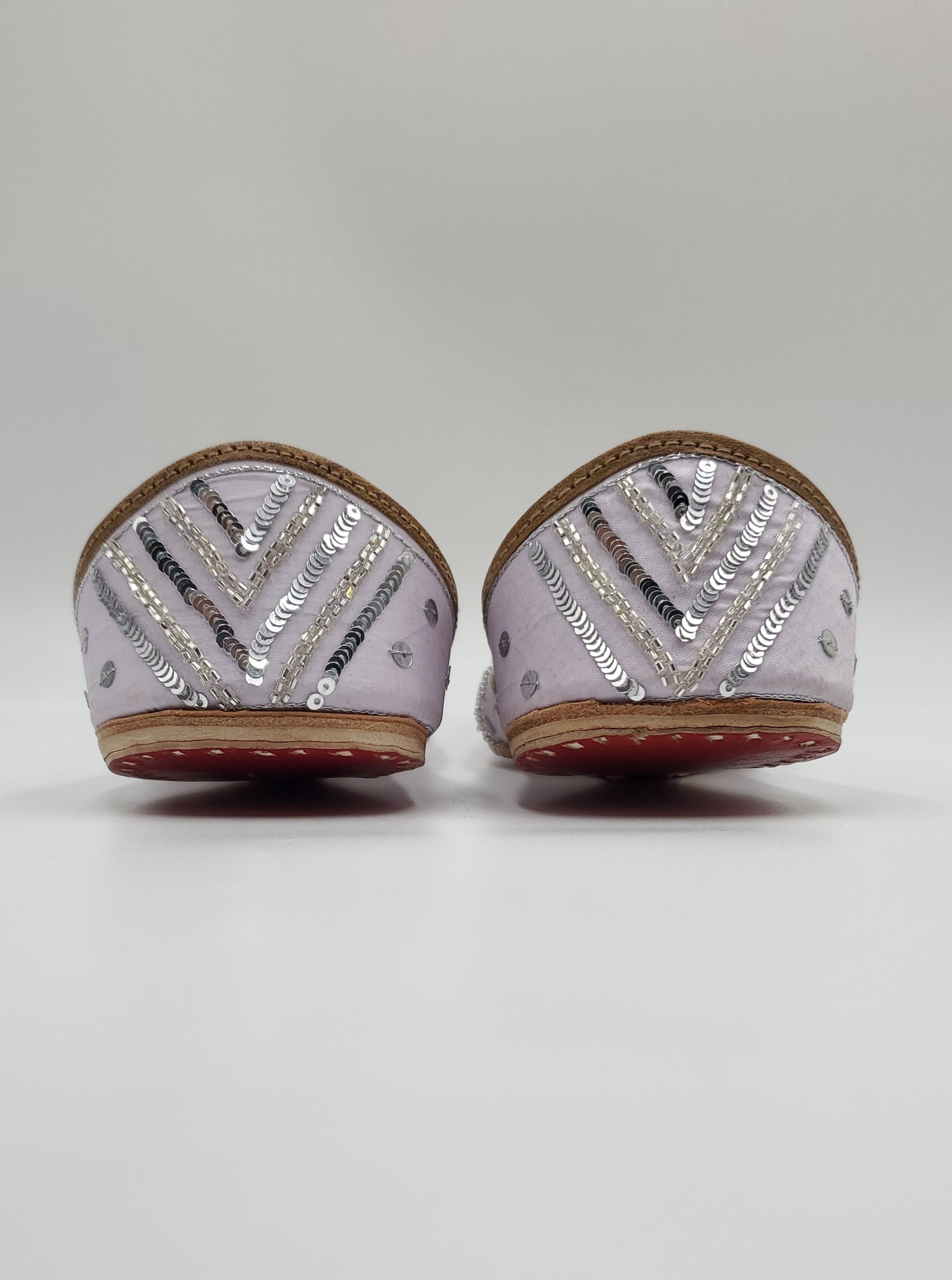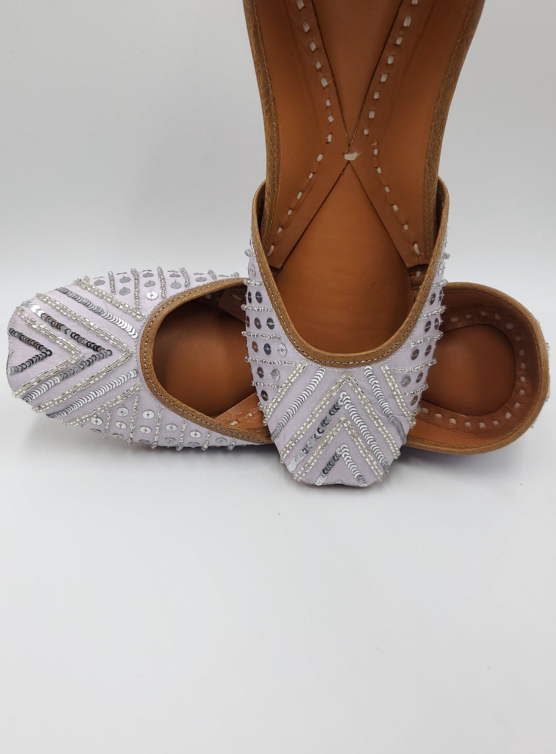 LILAC jutti beautifully handcrafted embellished with beads. The interior is made of genuine leather and double cushioned making the jutti very comfortable to wear.