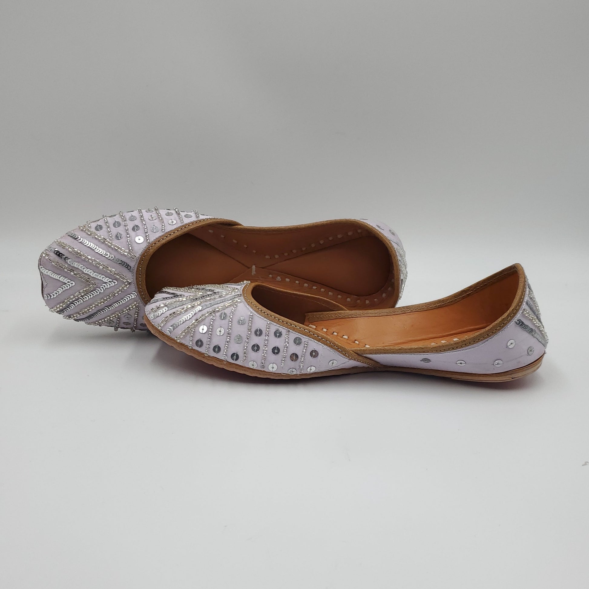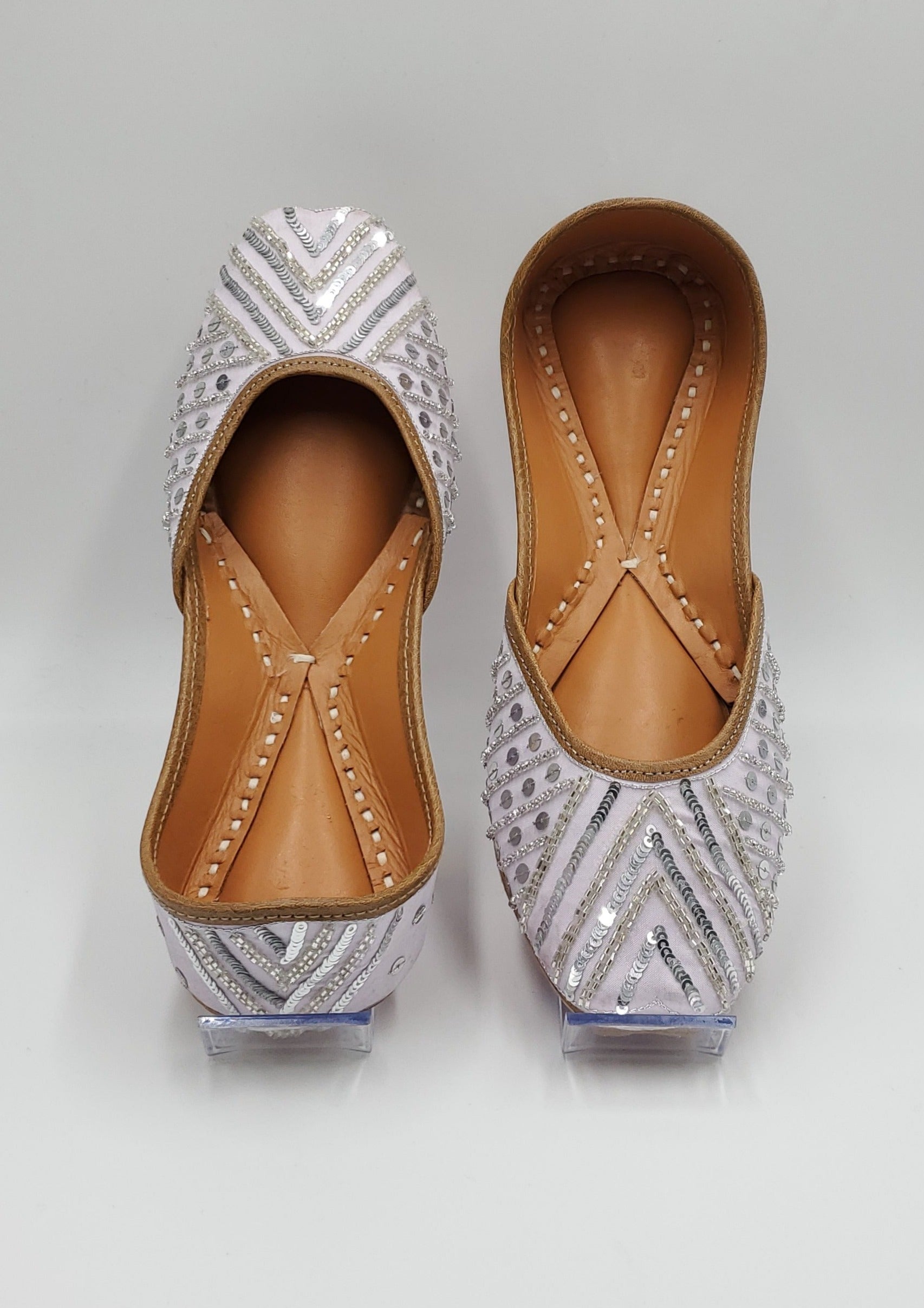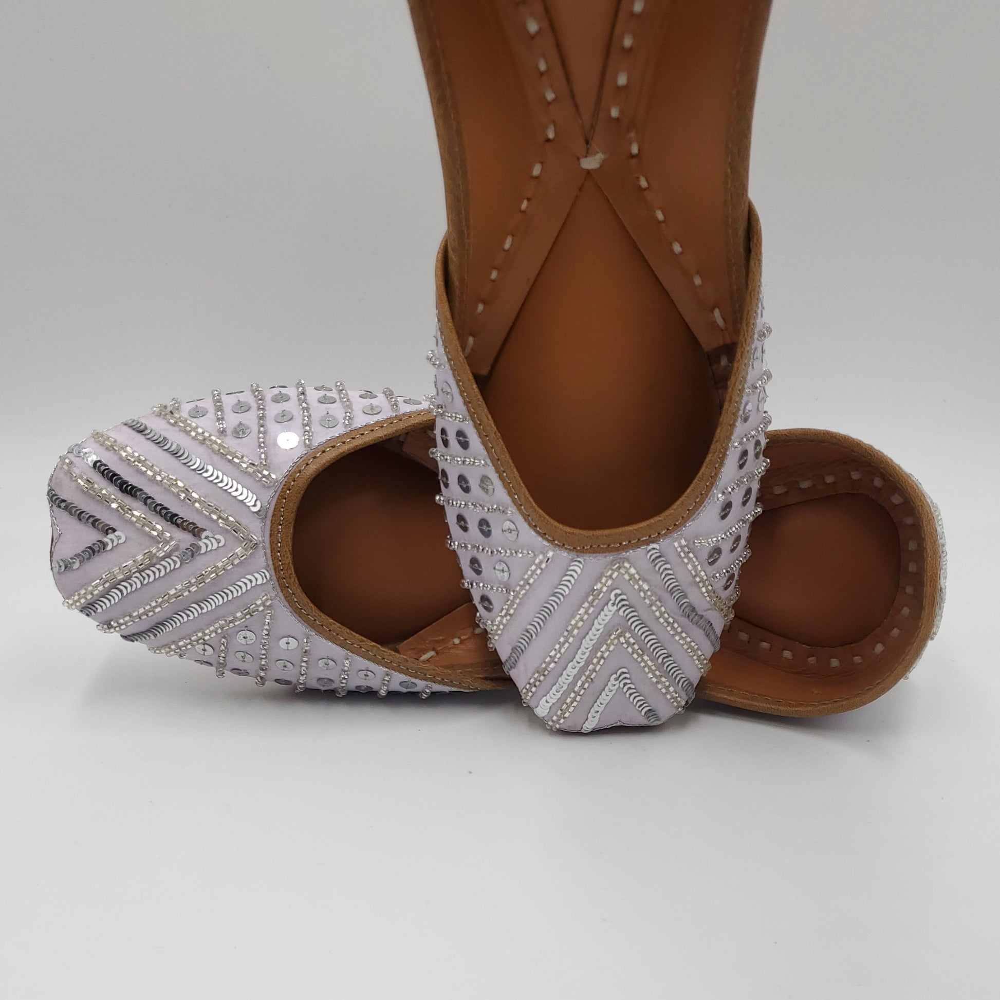 LILAC jutti beautifully handcrafted embellished with beads. The interior is made of genuine leather and double cushioned making the jutti very comfortable to wear.