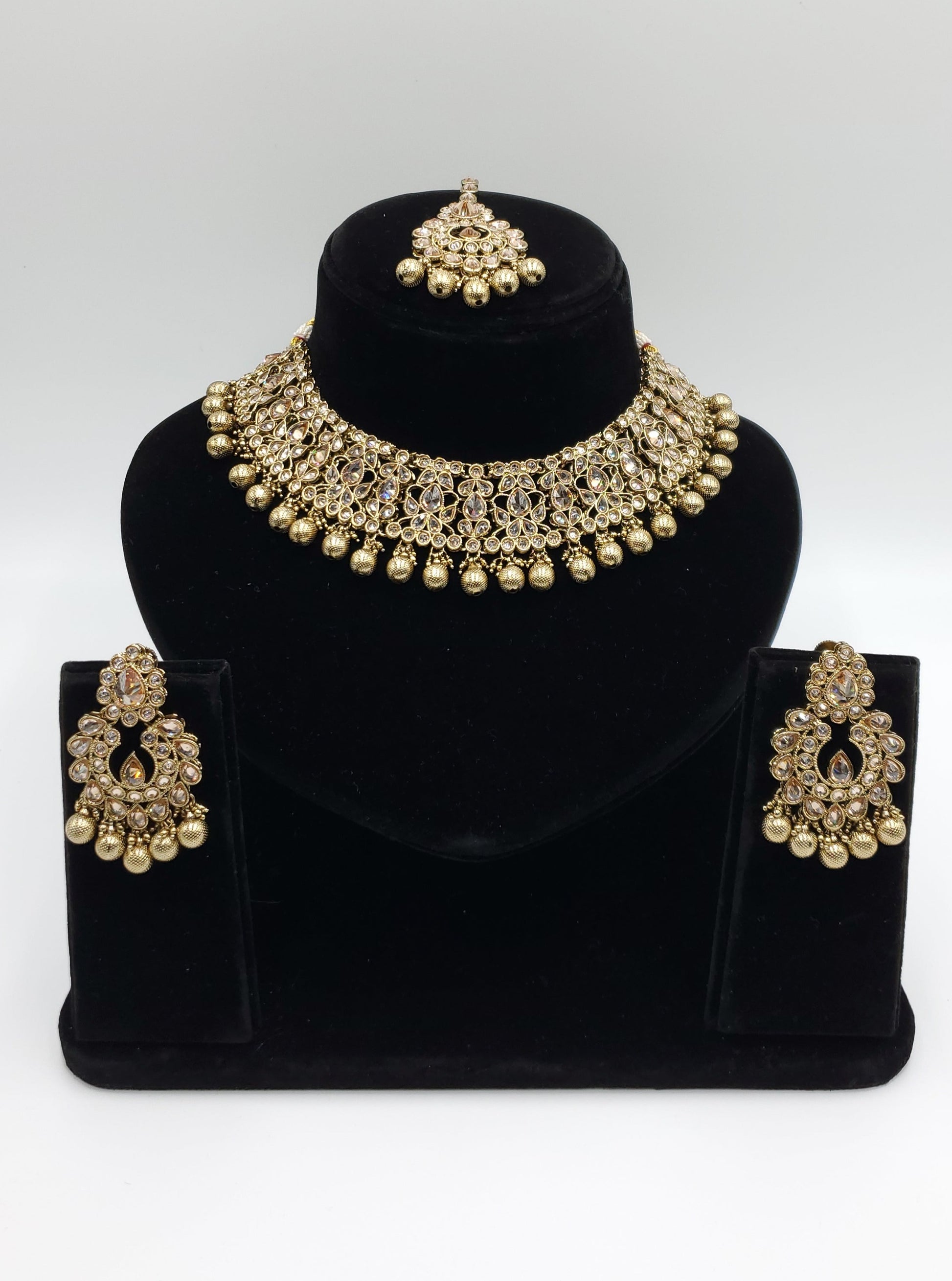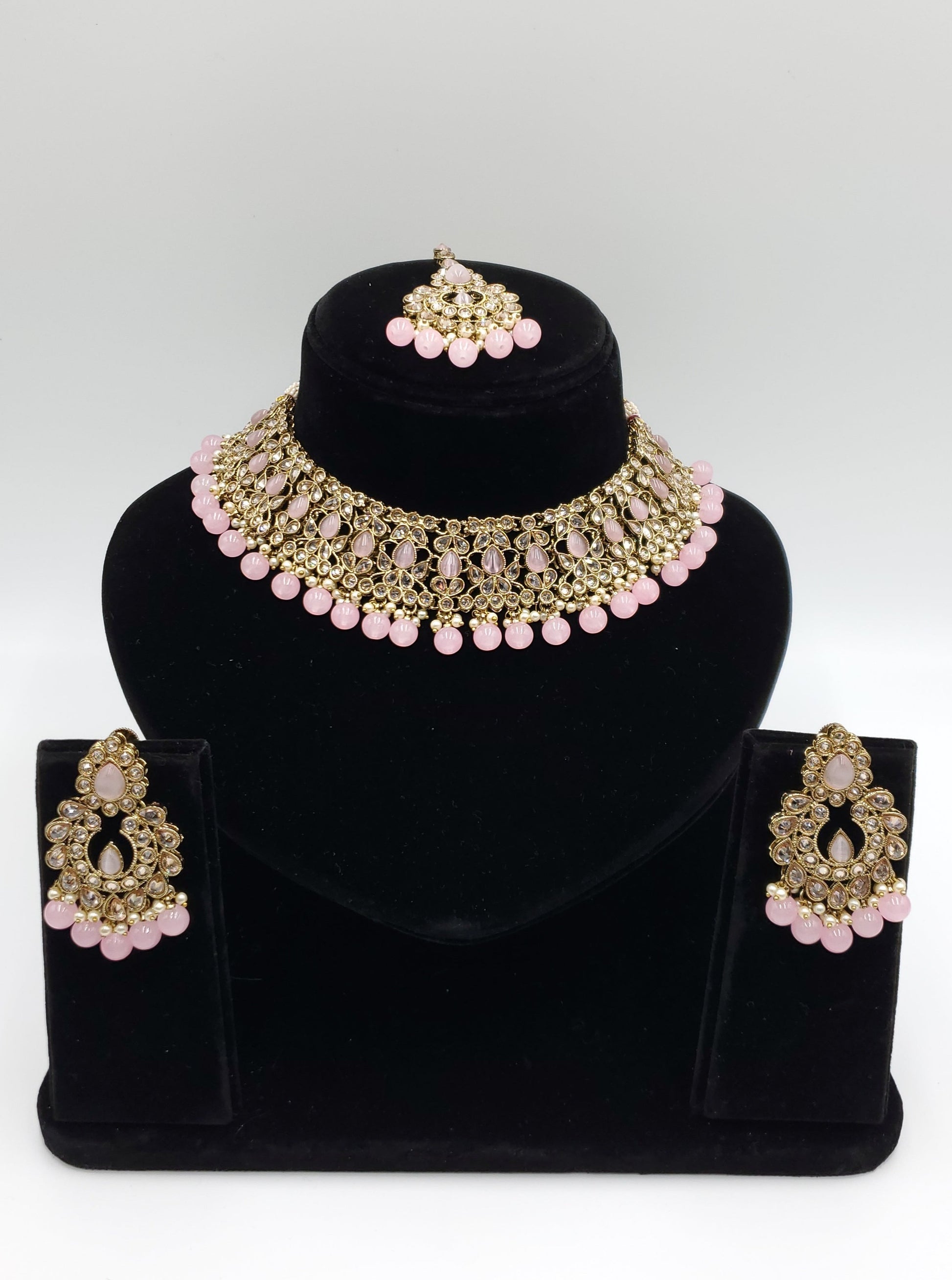 Mita Necklace Simulated with Polki kundand and Faux pearls.
