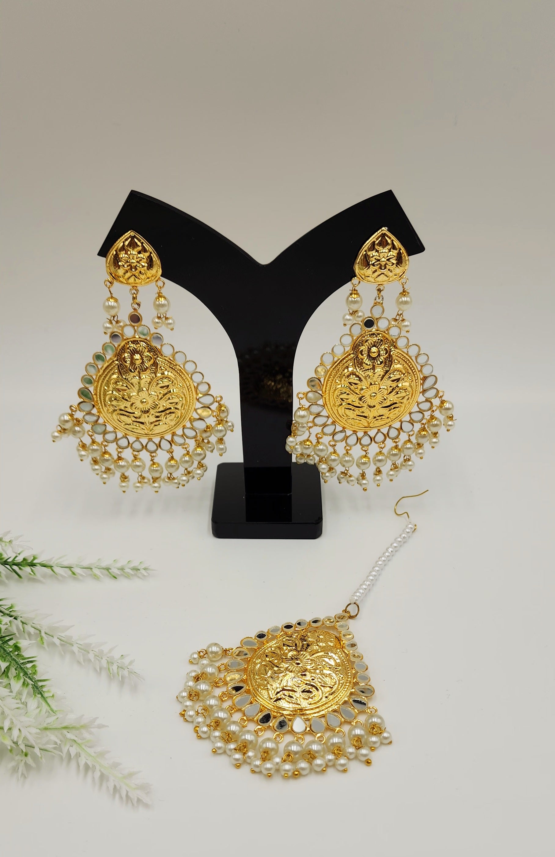 Gold Tone with mirror and pearls.