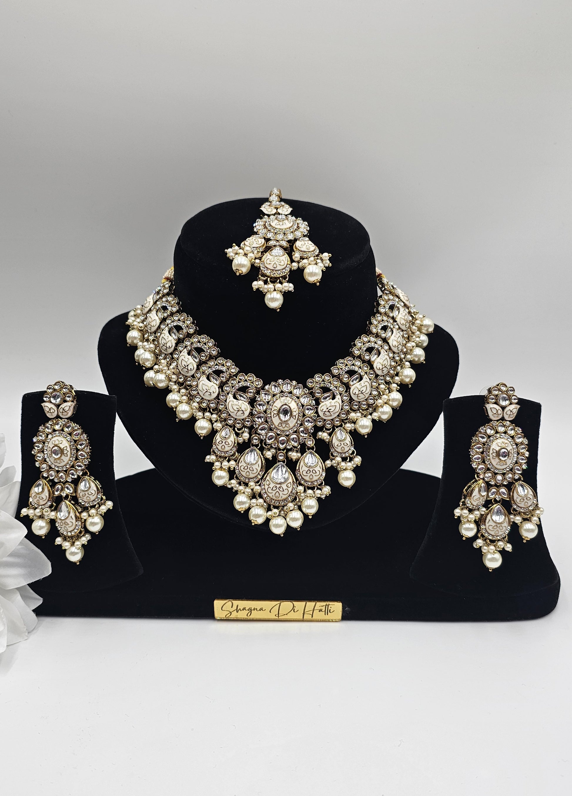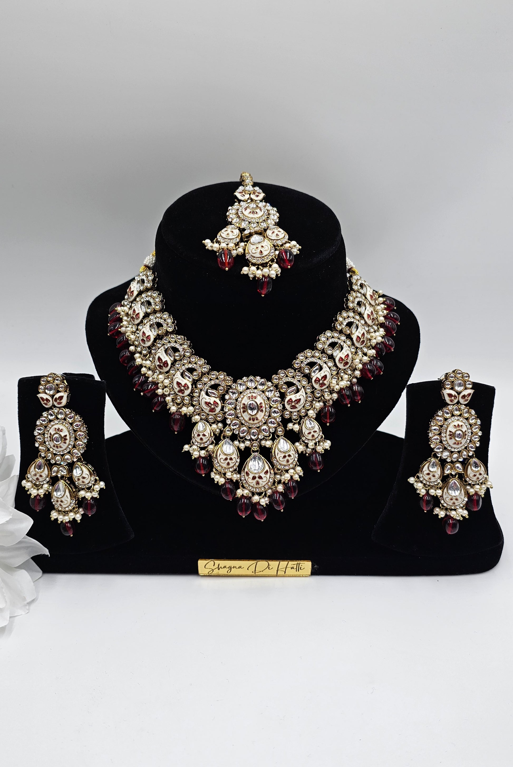 The Nivisha Set is accompanied by stunning earrings and a matching tikka.
