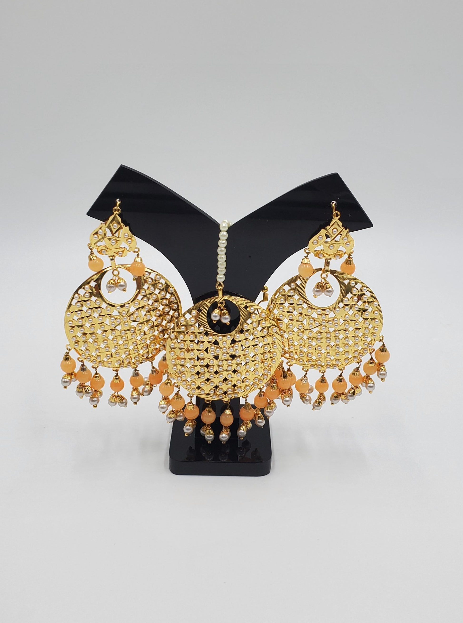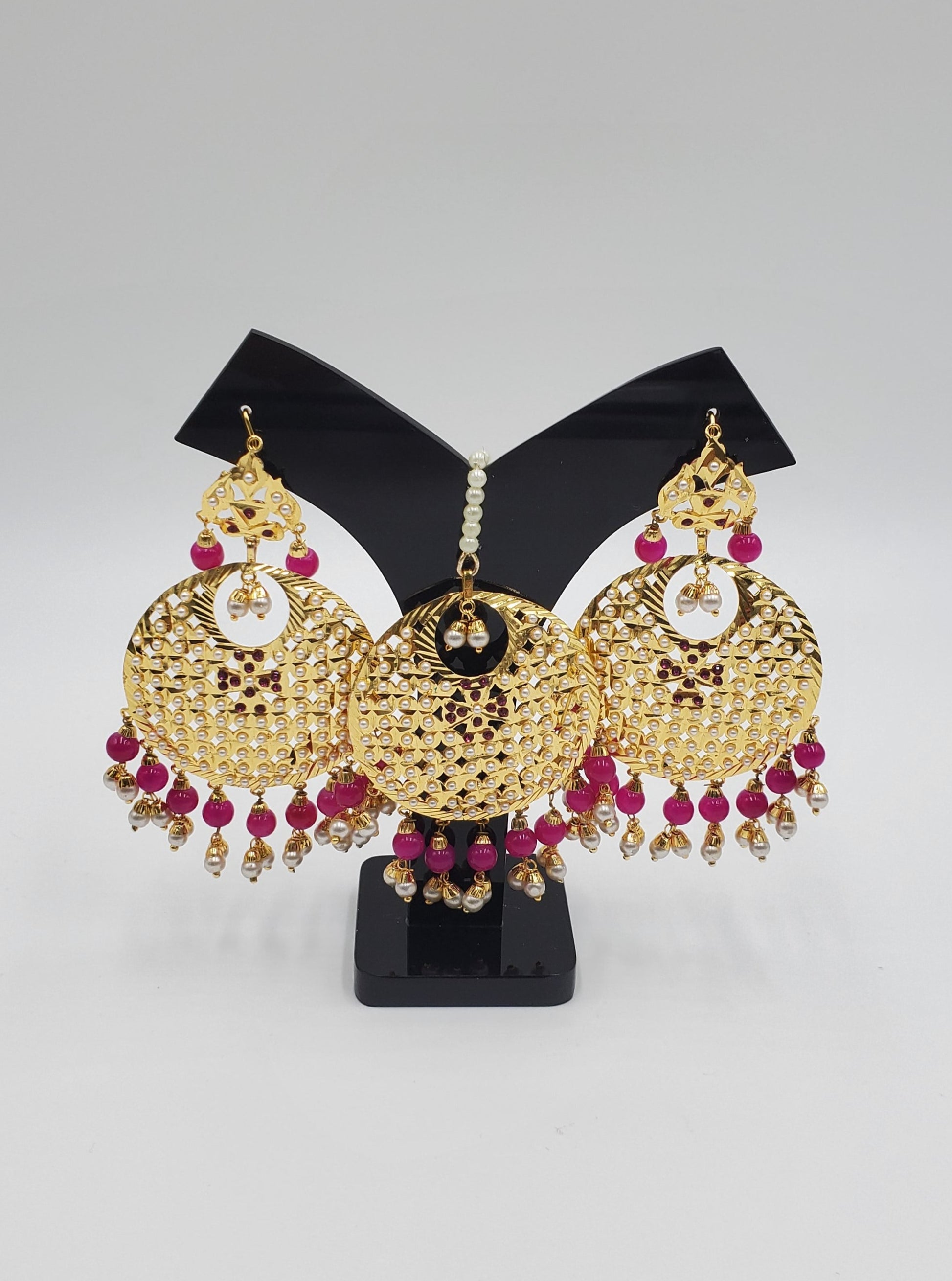 Gold jadau set. Simulated with color pearls
