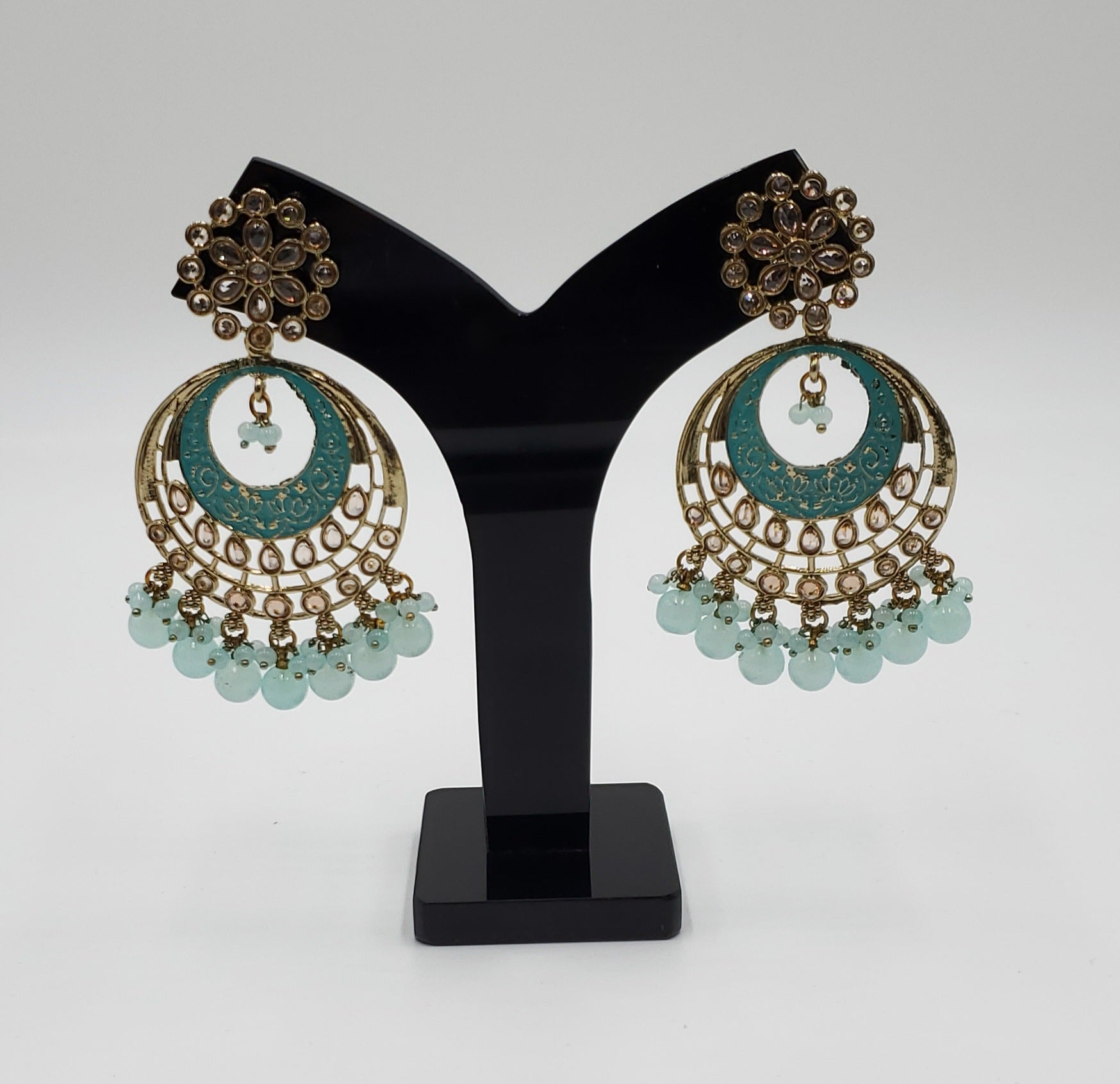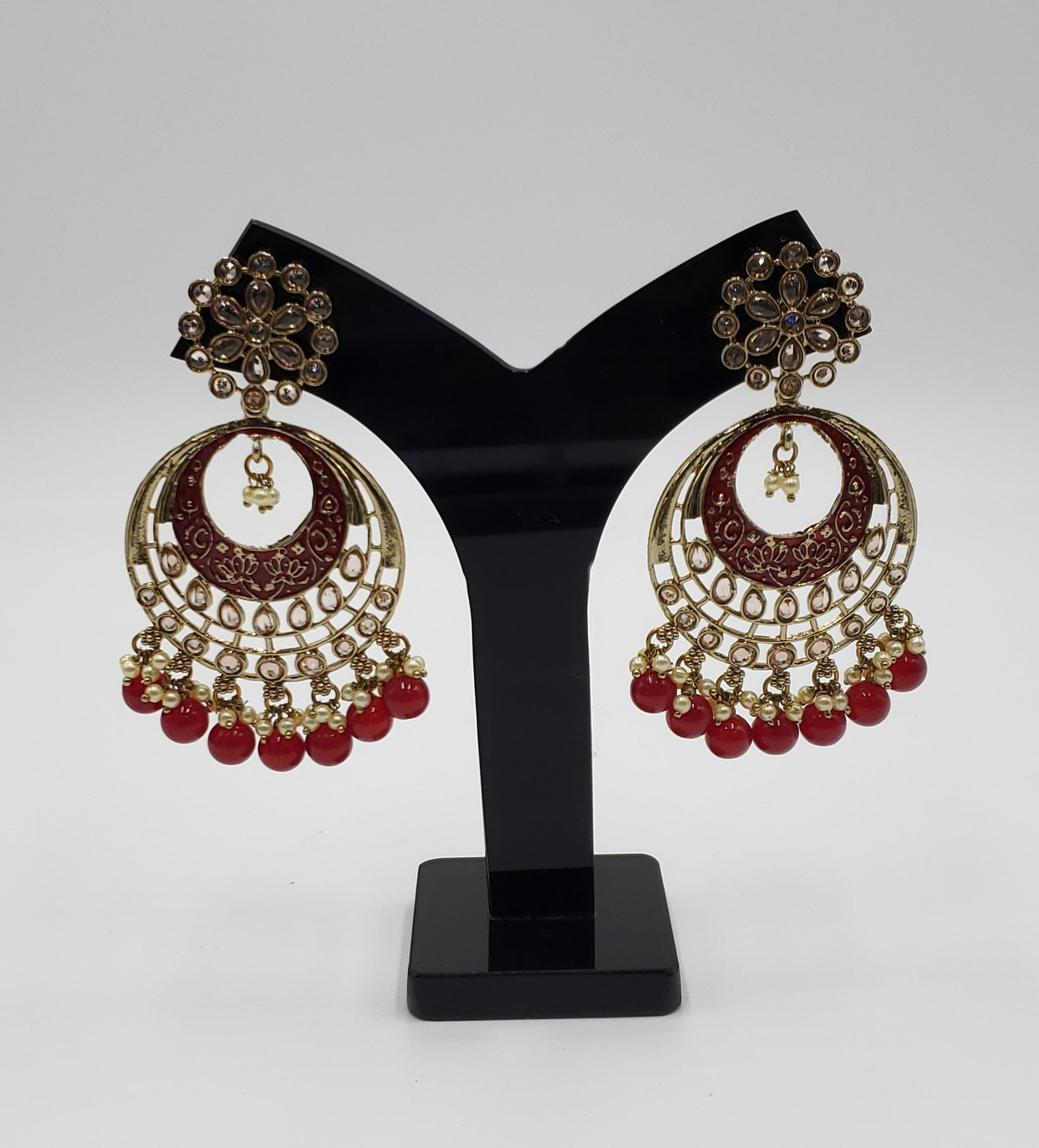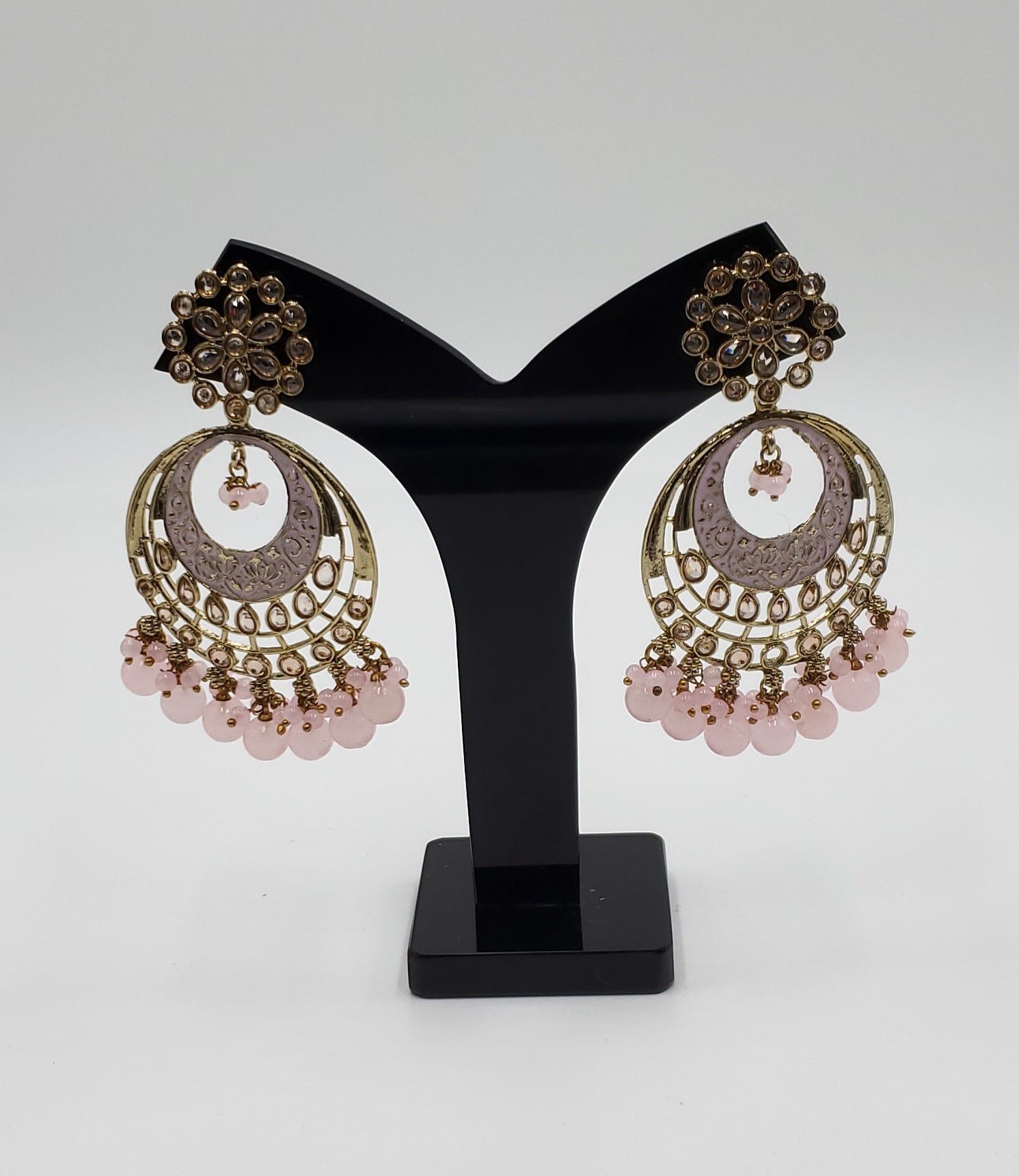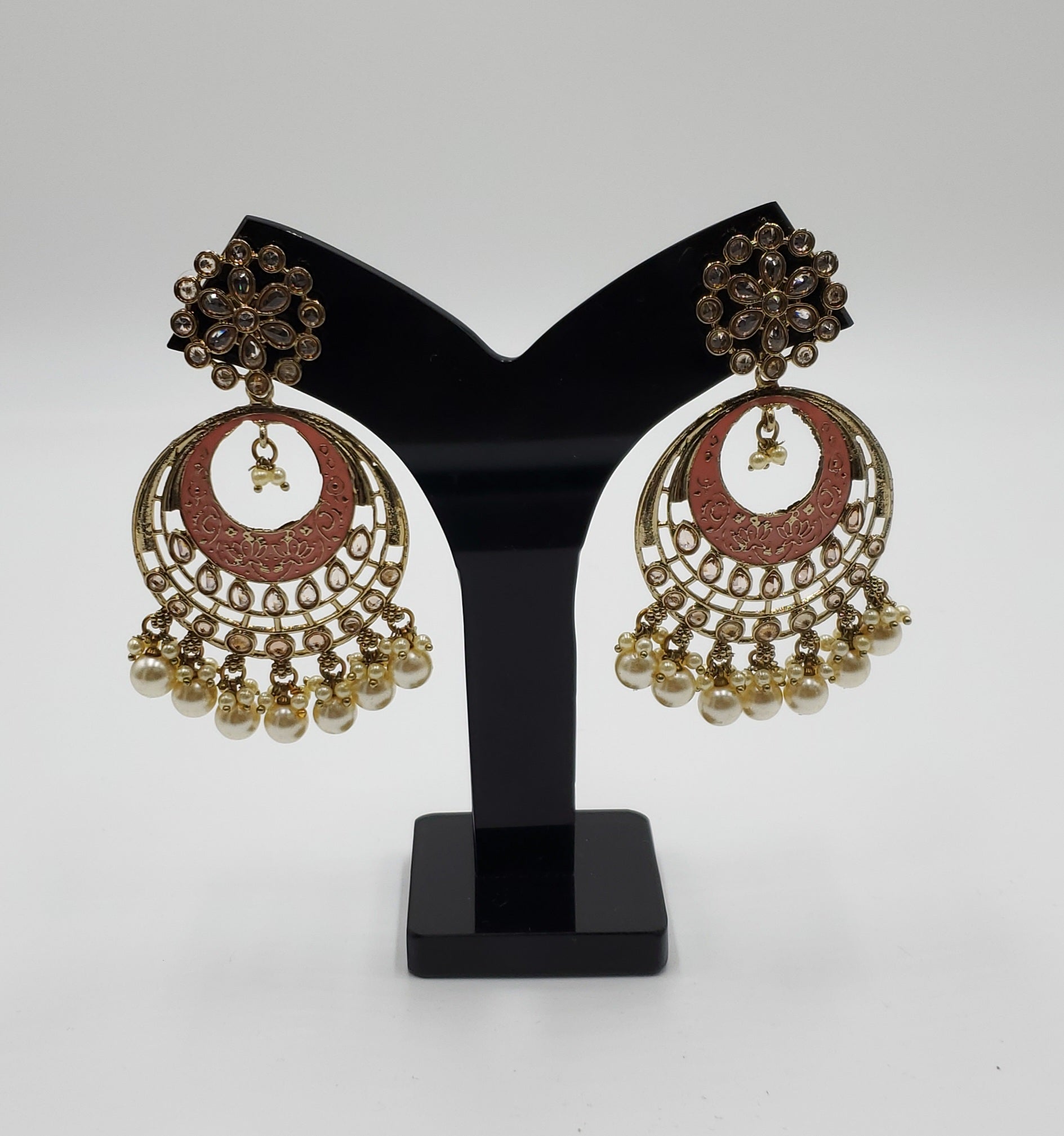 Gold Tone moon Earrings hand painted studded with Polkis and Faux Pearls.