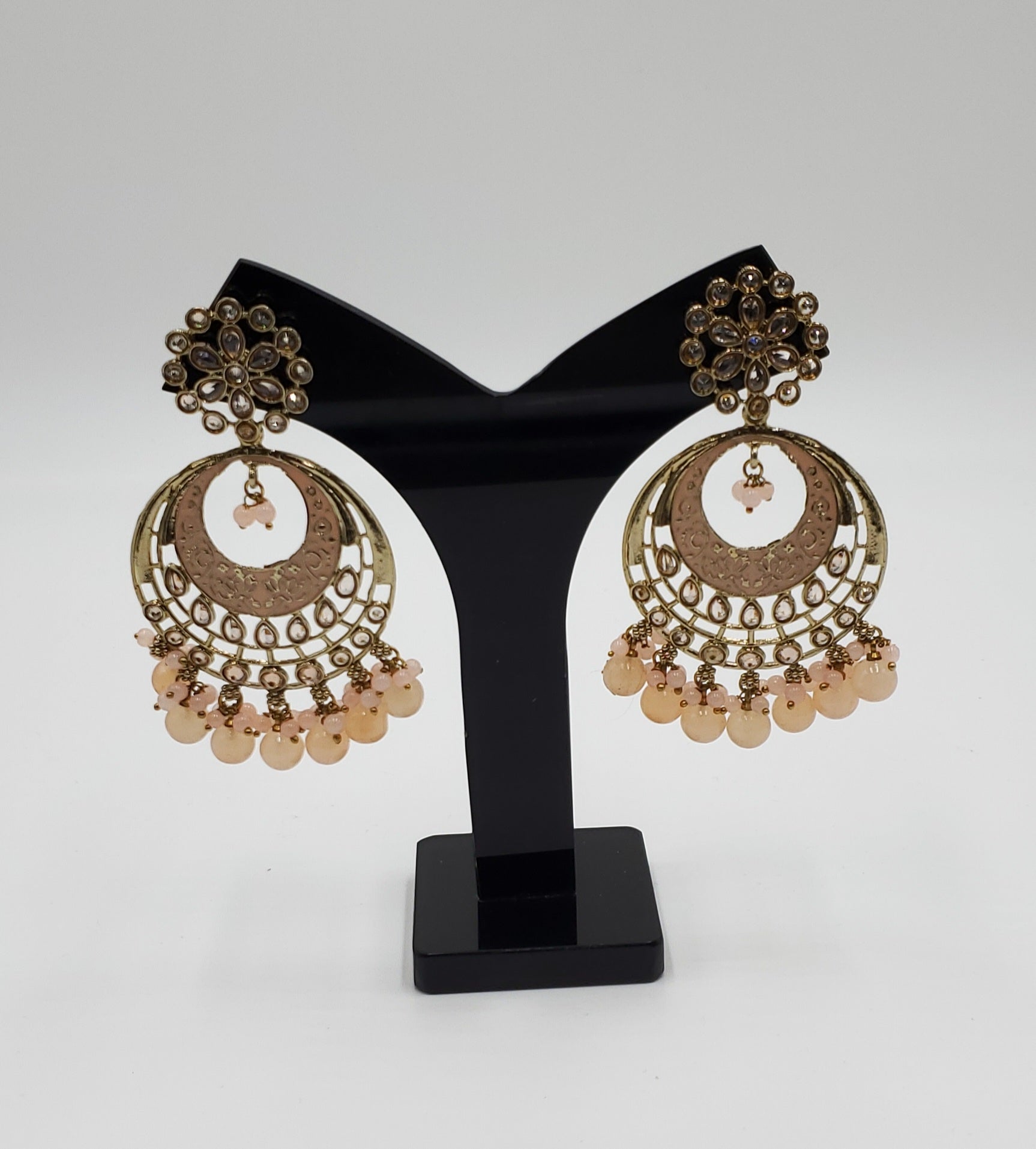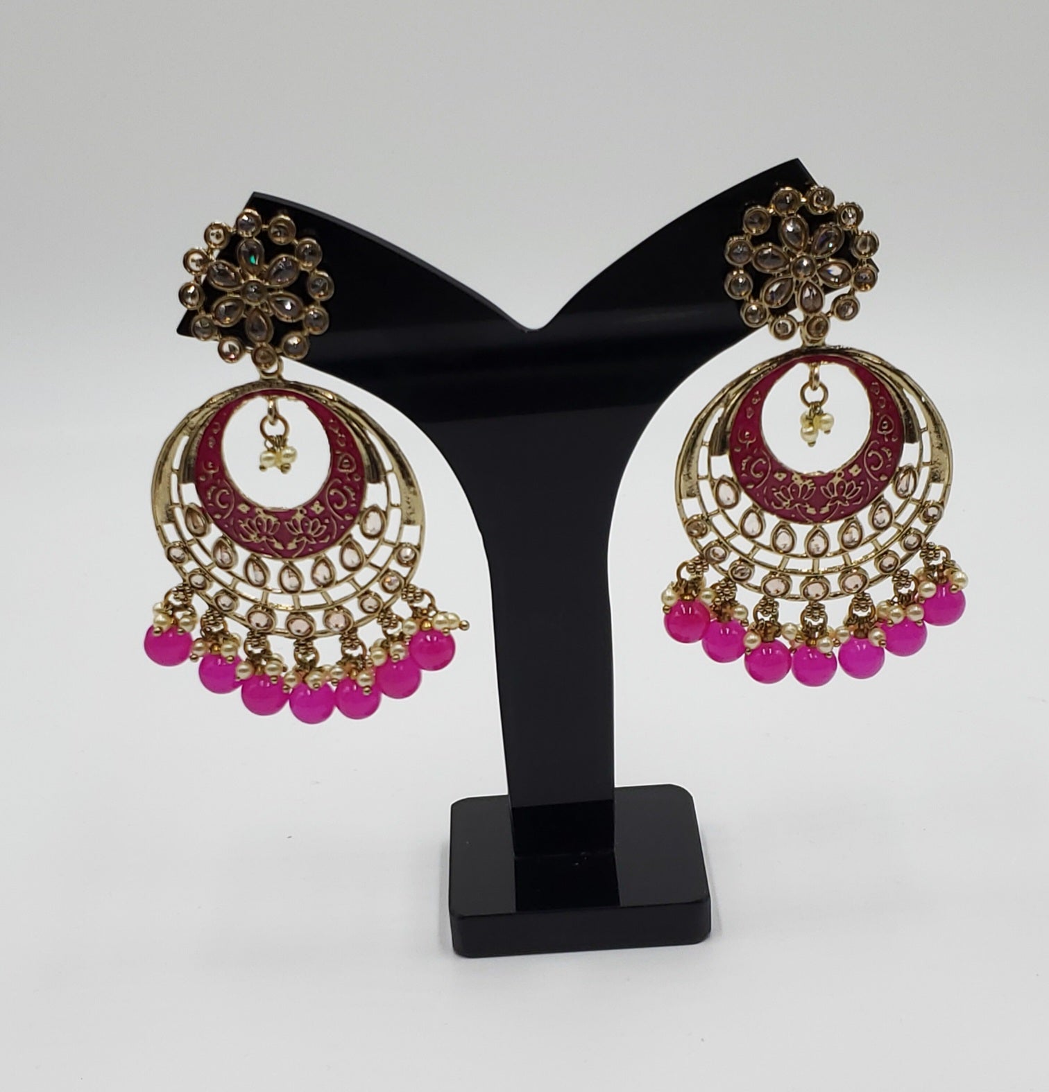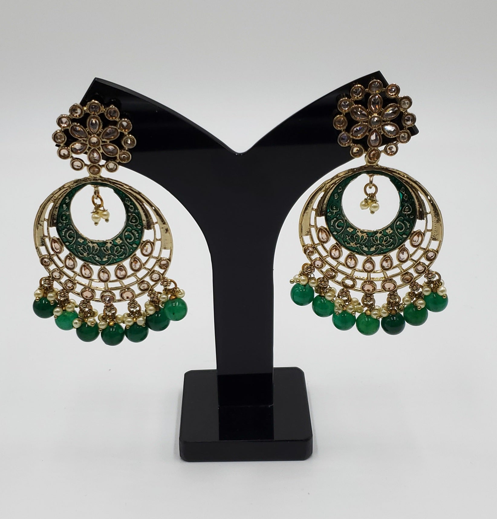 Gold Tone moon Earrings hand painted studded with Polkis and Faux Pearls.
