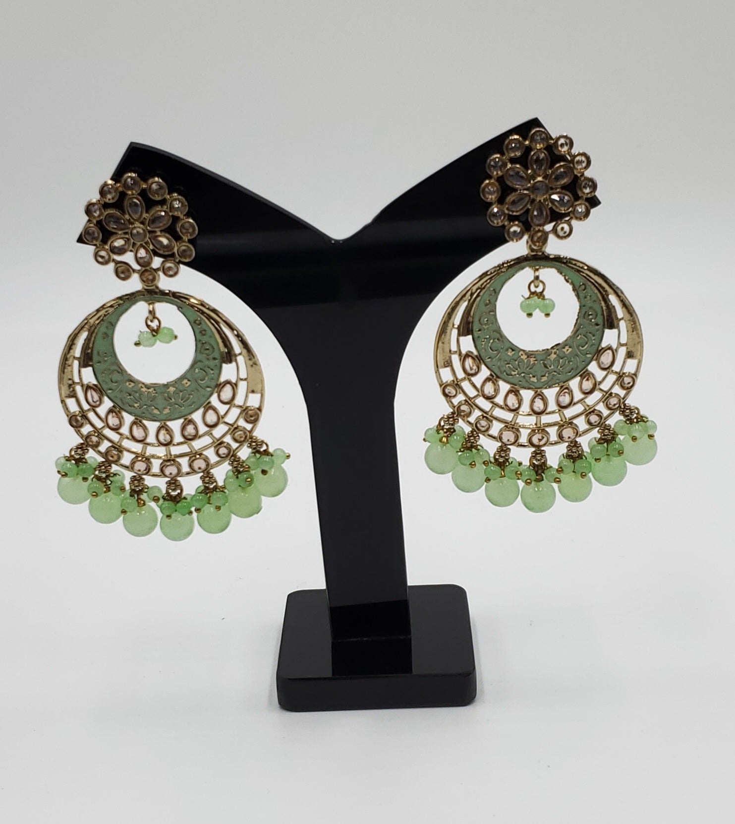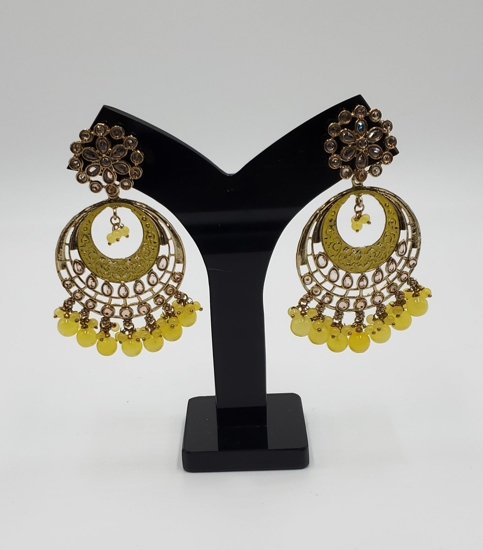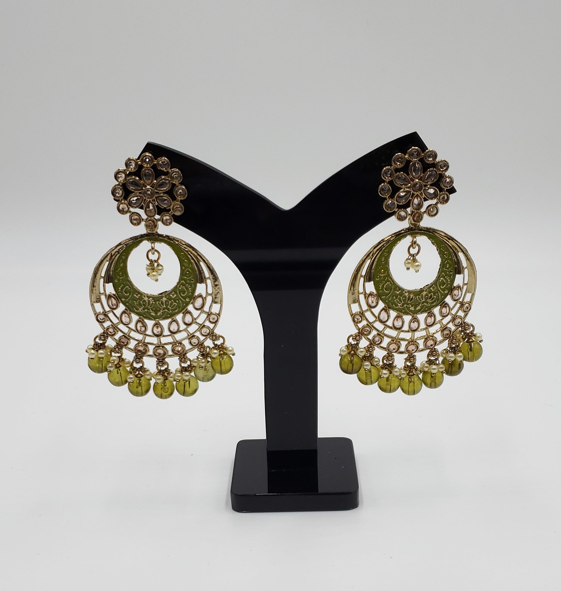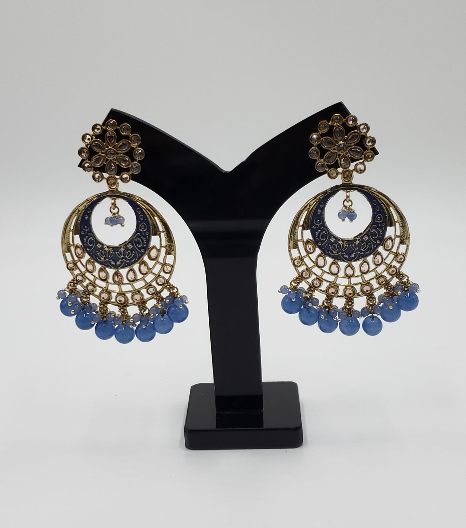 Gold Tone moon Earrings hand painted studded with Polkis and Faux Pearls.