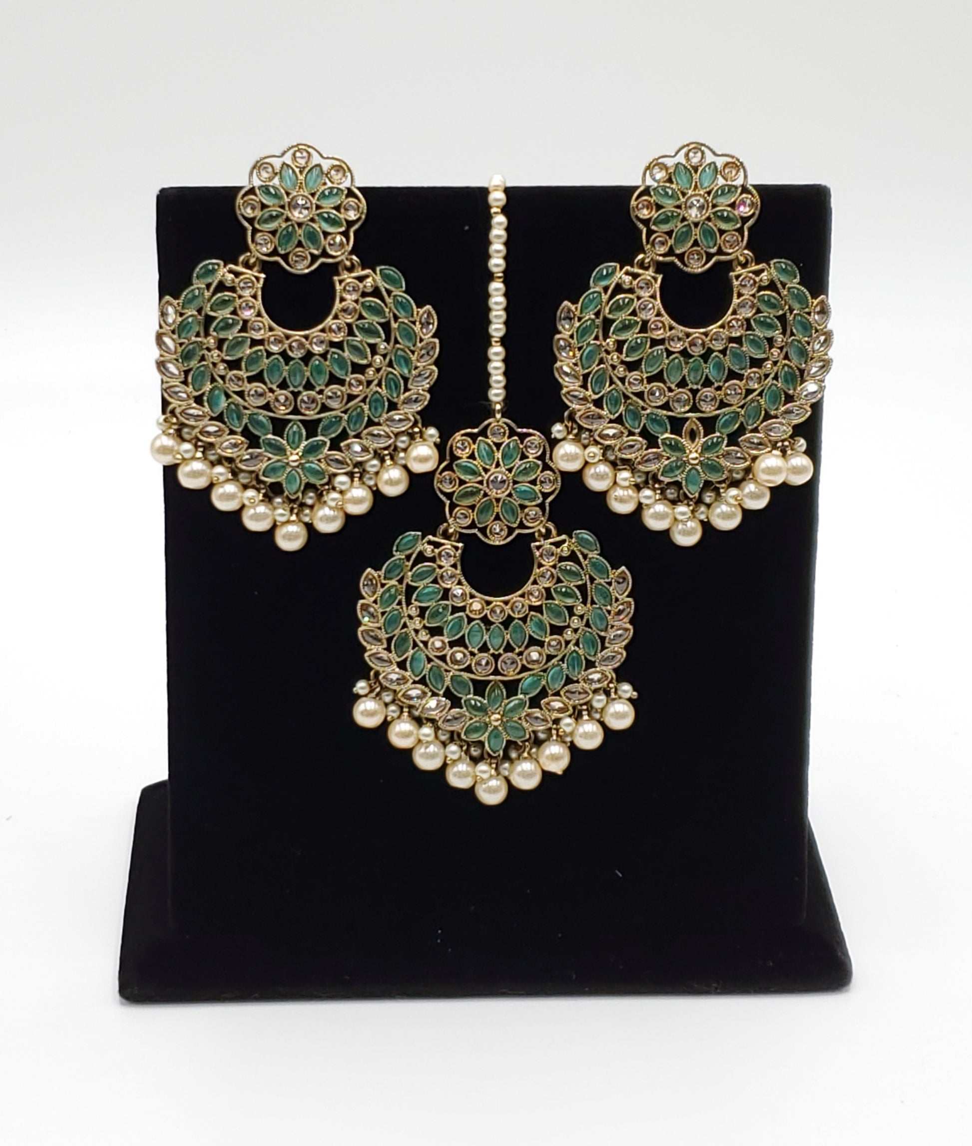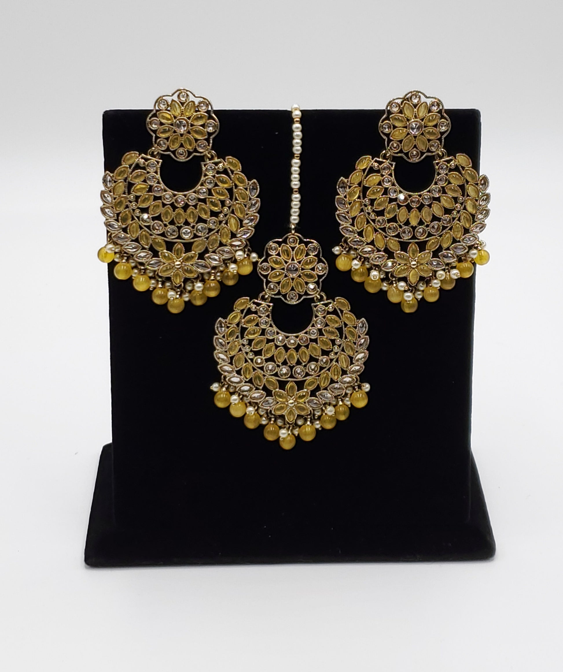 Gold Tone Earrings studded and Simulated with Polkis and Faux Pearls.