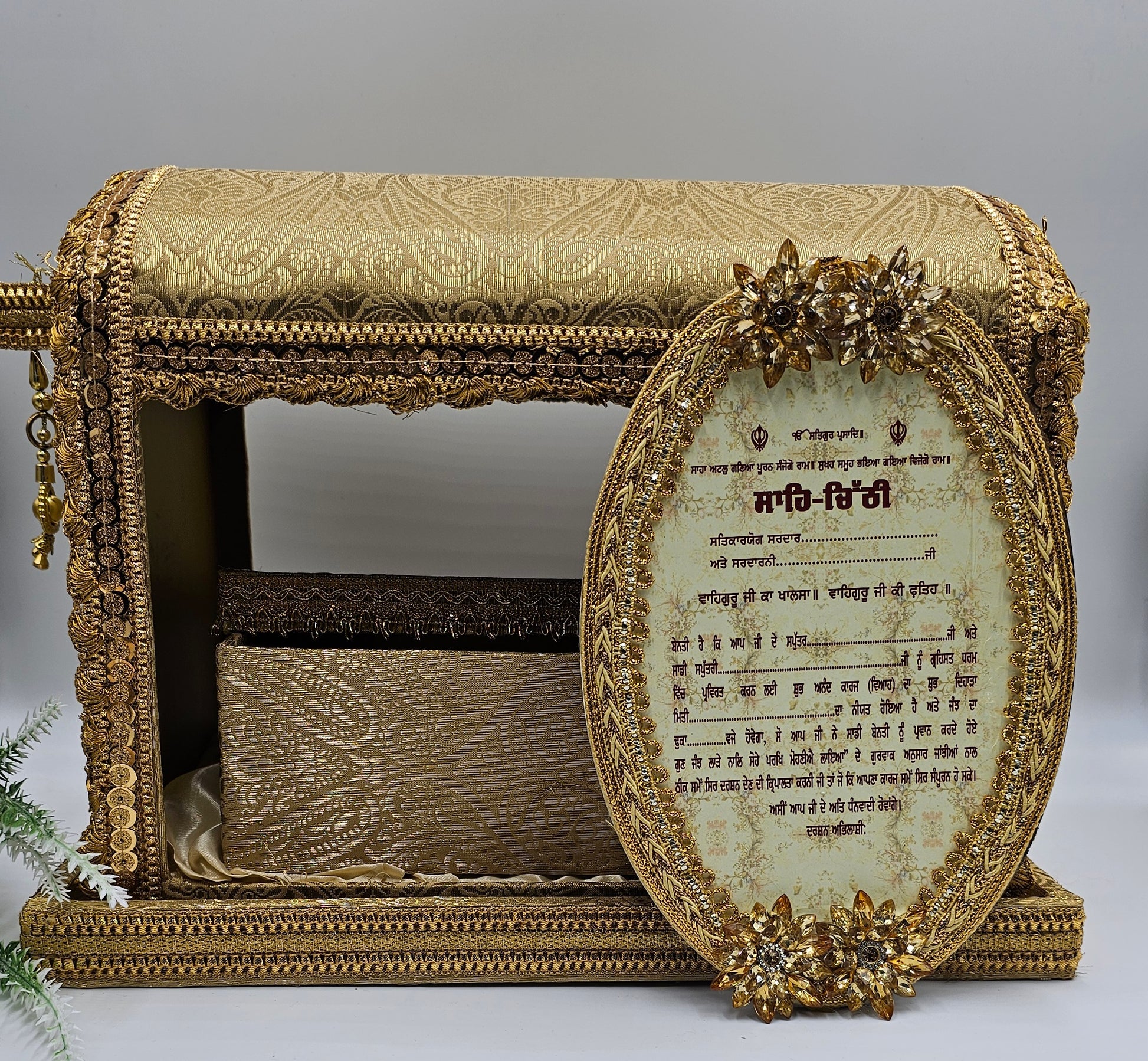 Gold color, good quality doli sahe  Chithi.