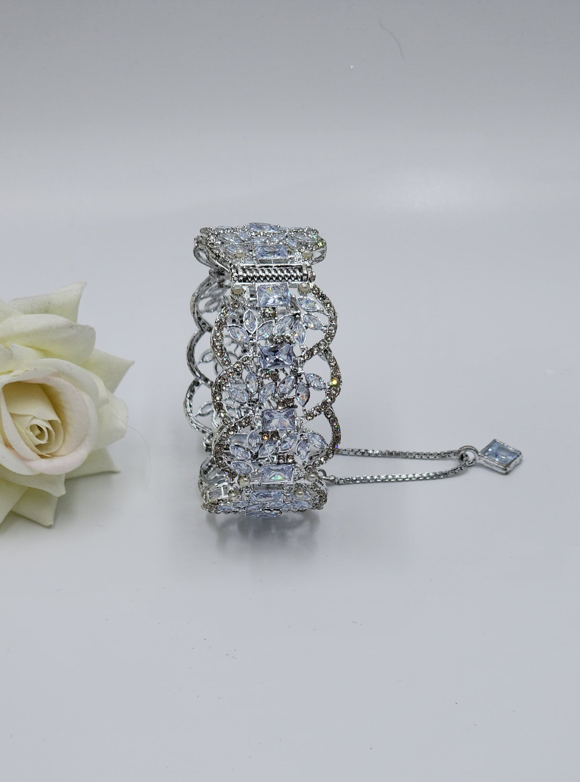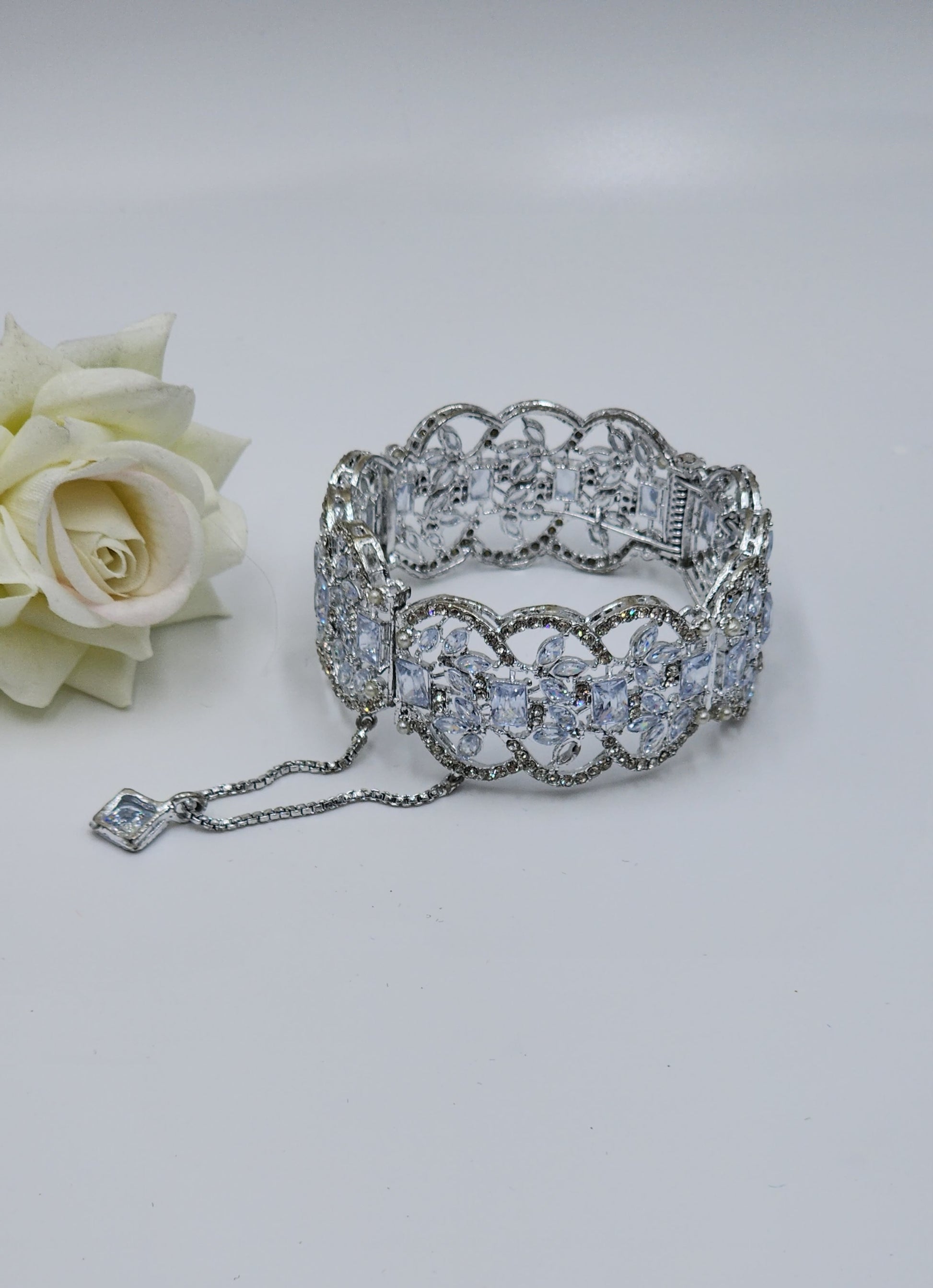 Pakistani Gajra in silver tone with hanging.  Adjustable sizes