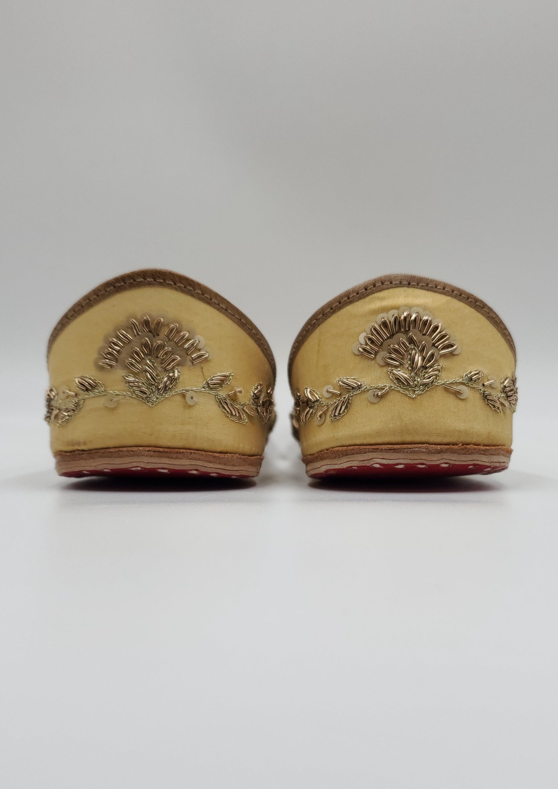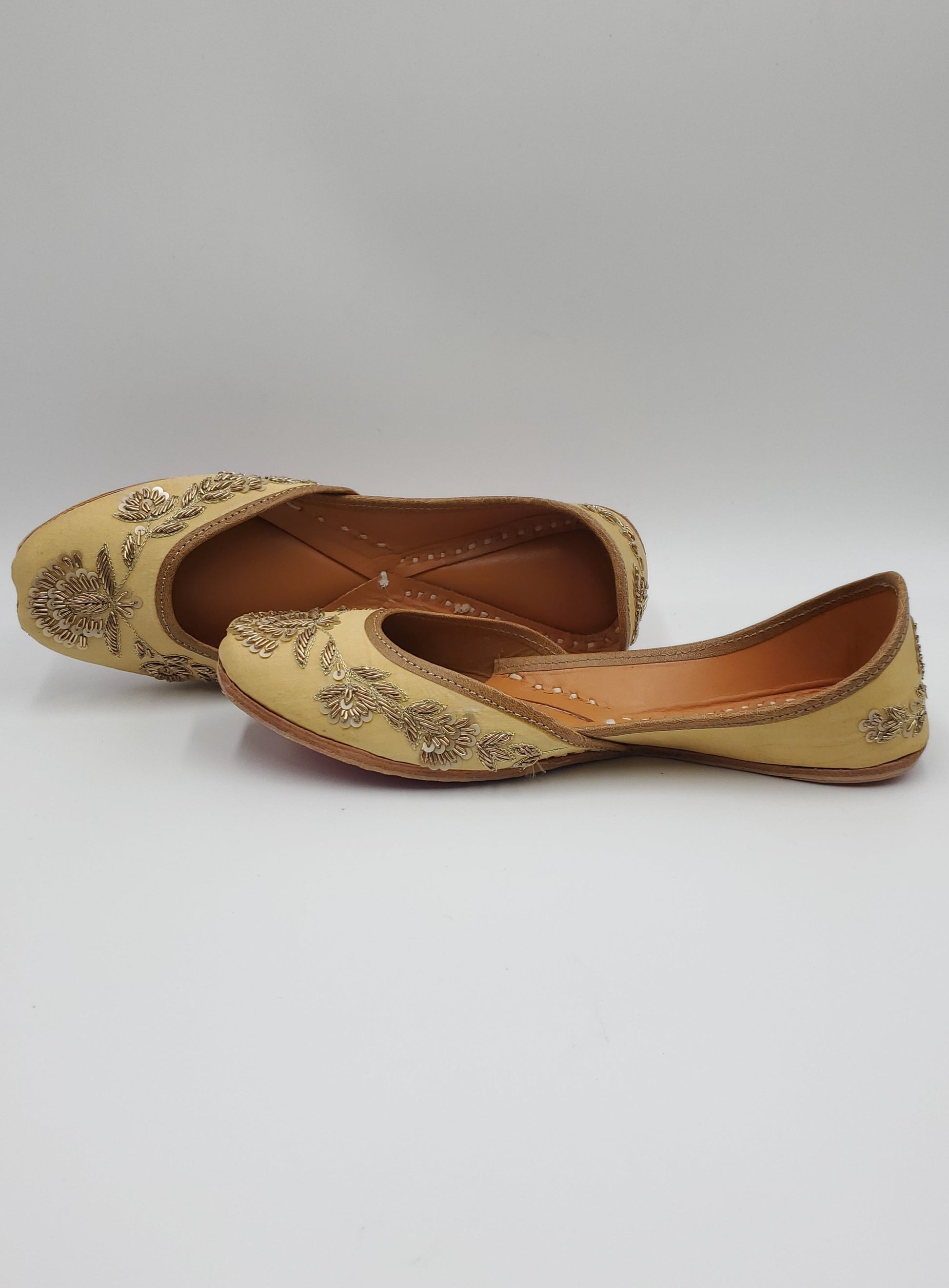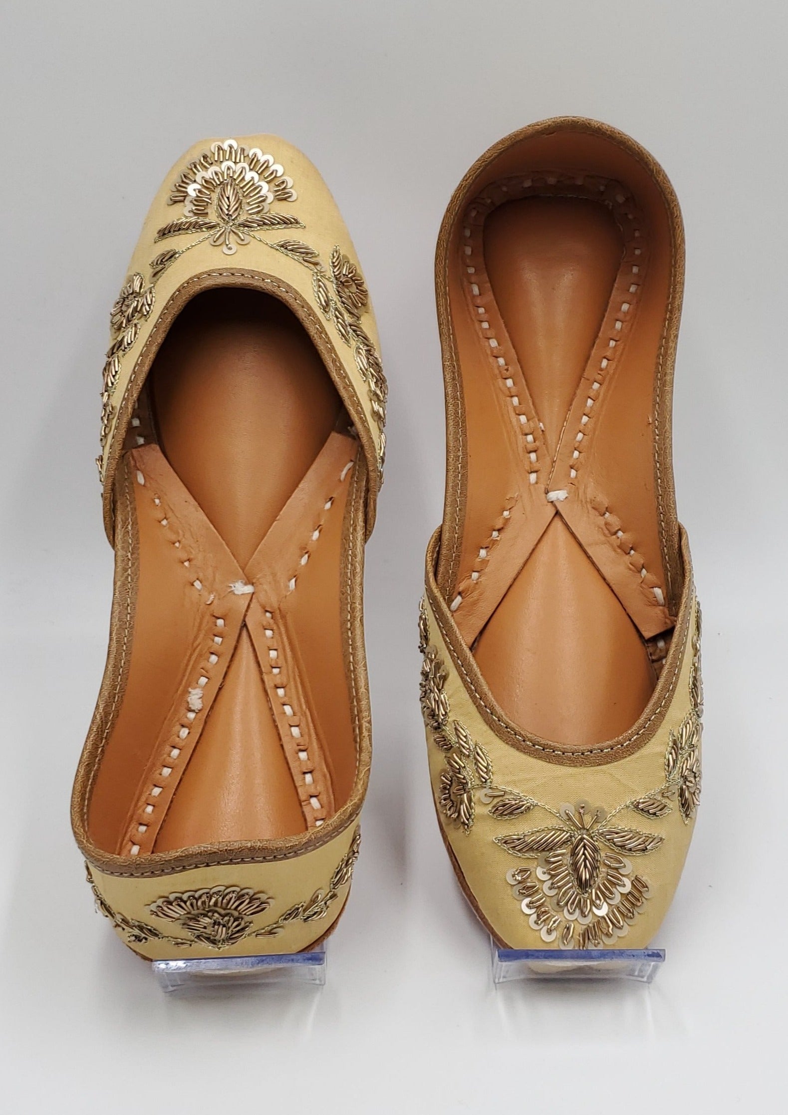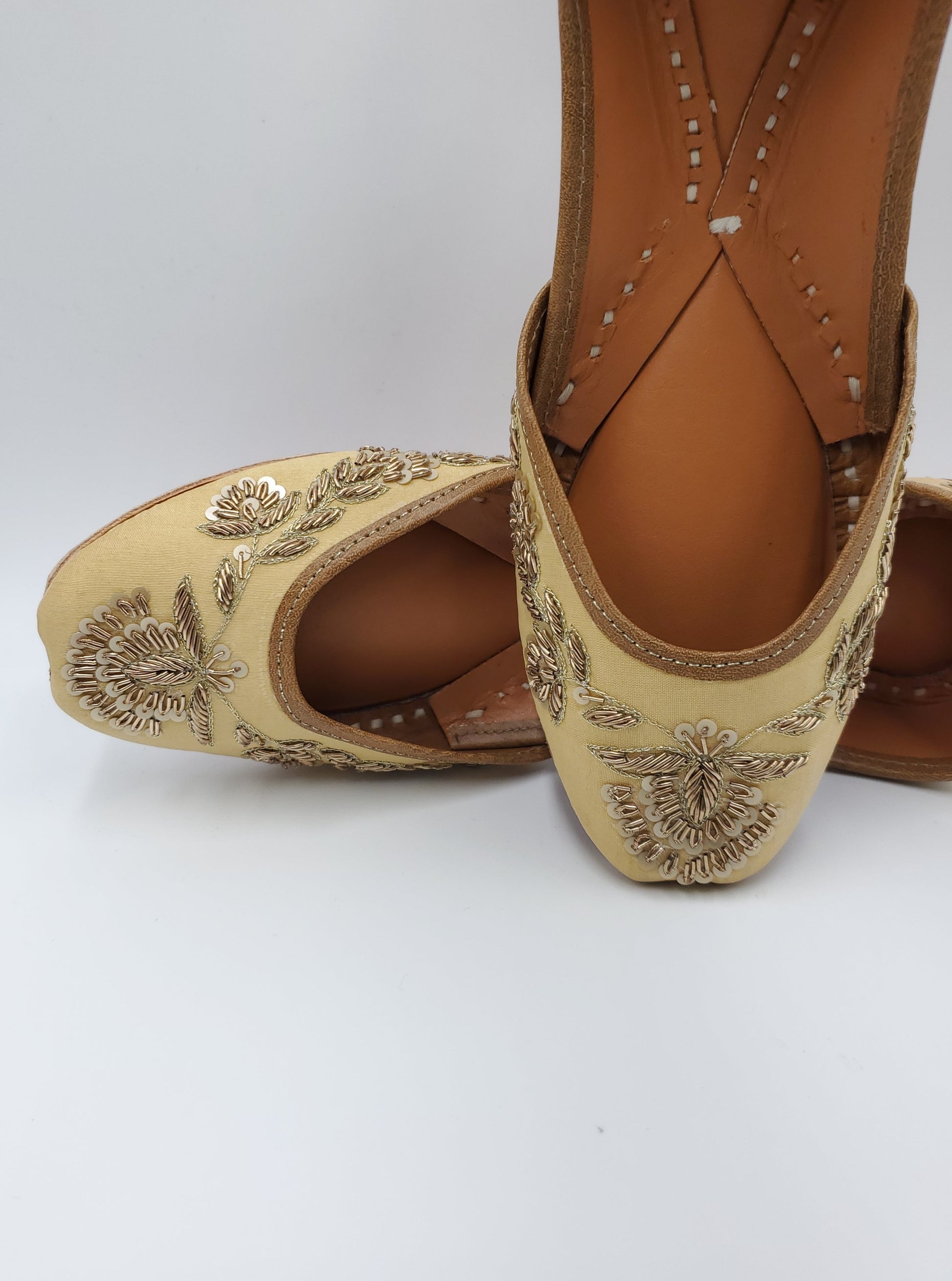 These sophisticated jutti beautifully handcrafted with  embellished with thread work. The interior is made of genuine leather and double cushioned making the jutti very comfortable to wear.