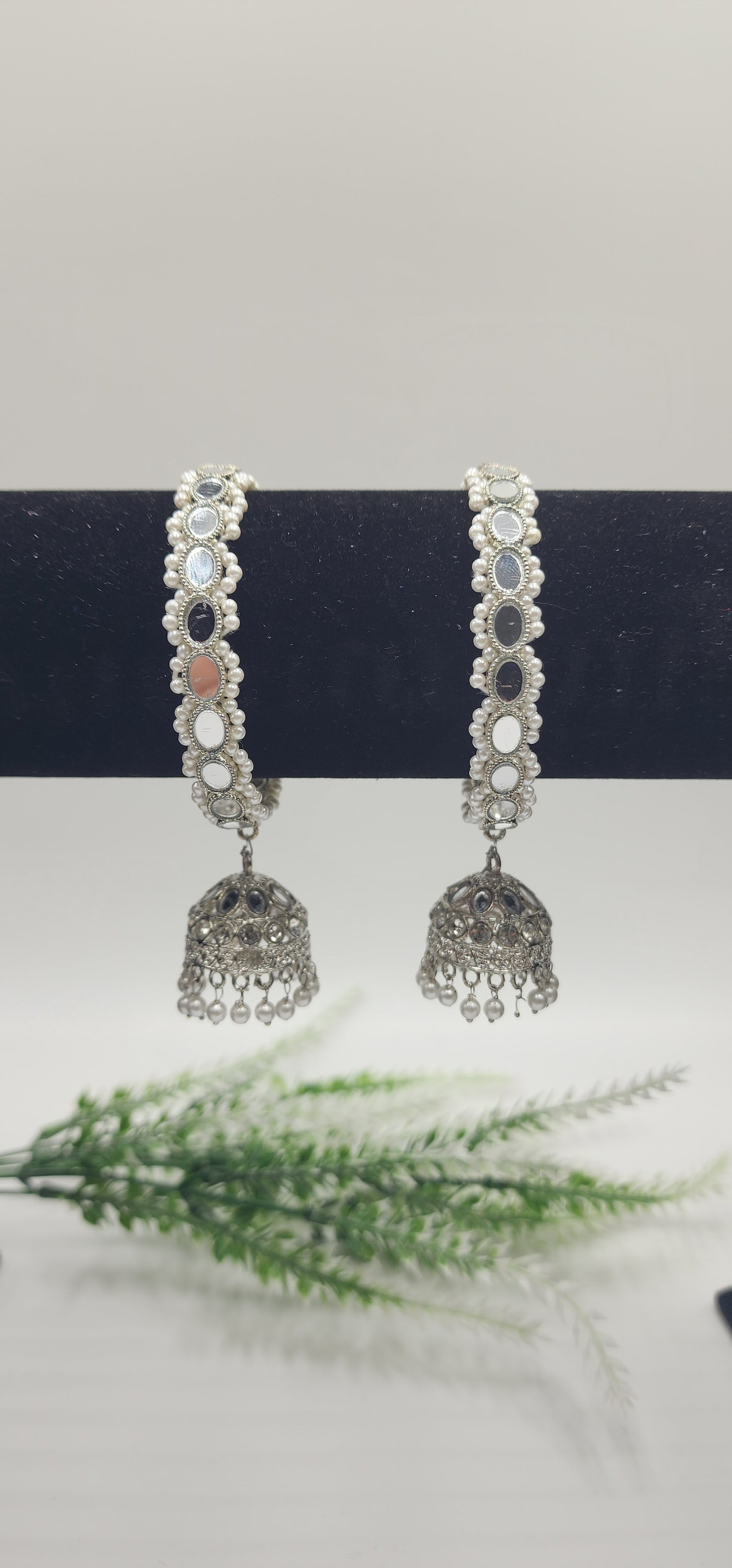 Silver tone bangles Simulated with glass and pearls.