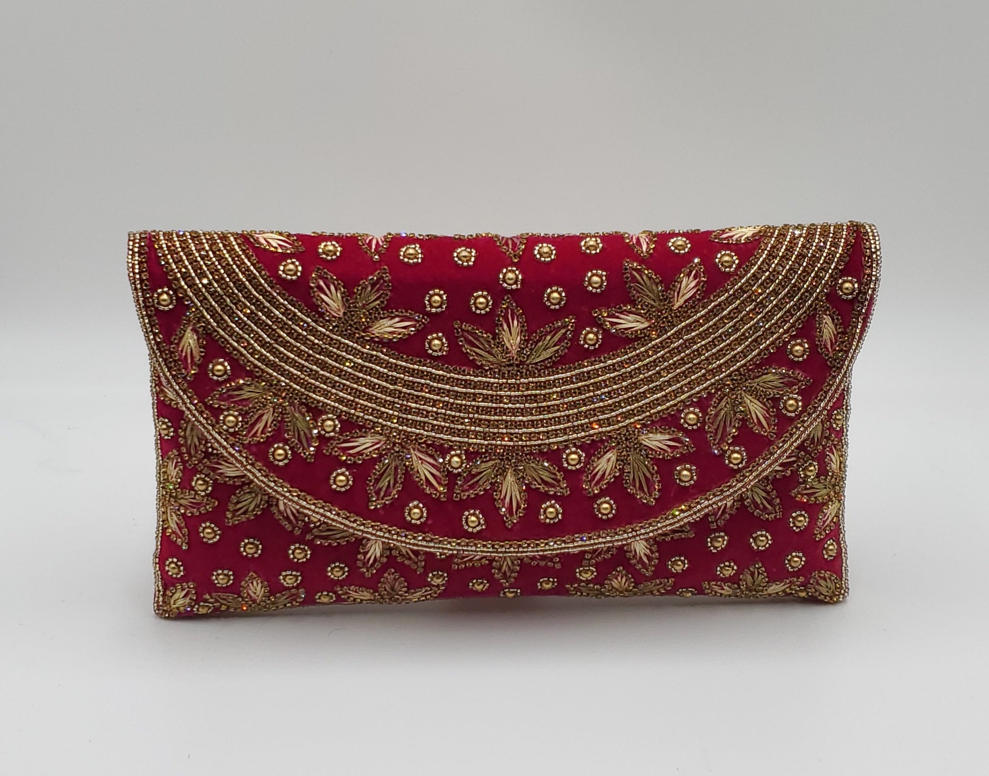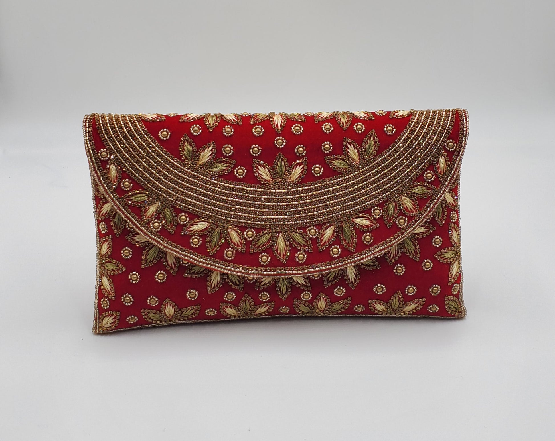 Be wedding ready with this beautiful red gold embroidery purse made for all occasions.