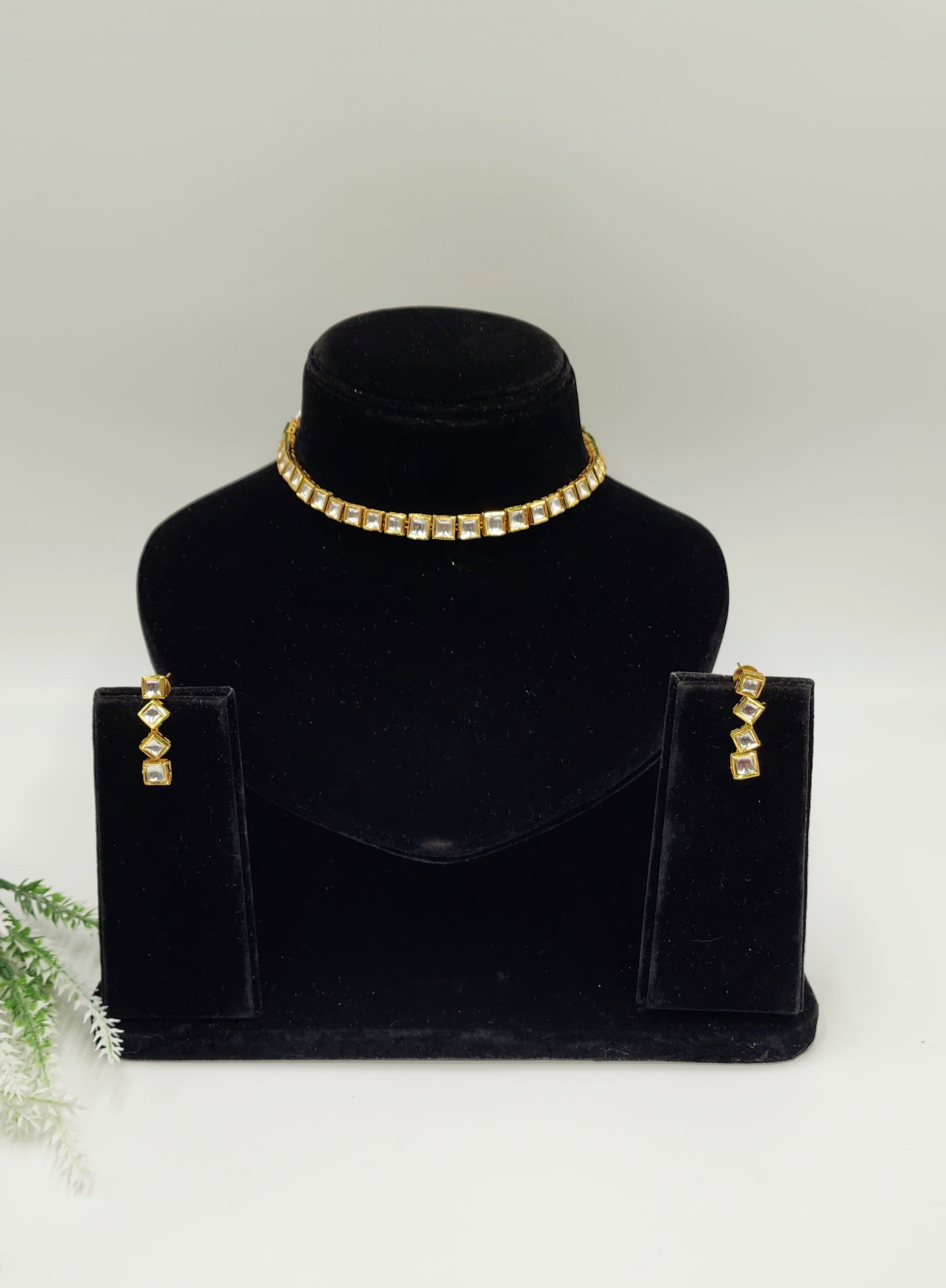 Gold Tone single line kundan set.