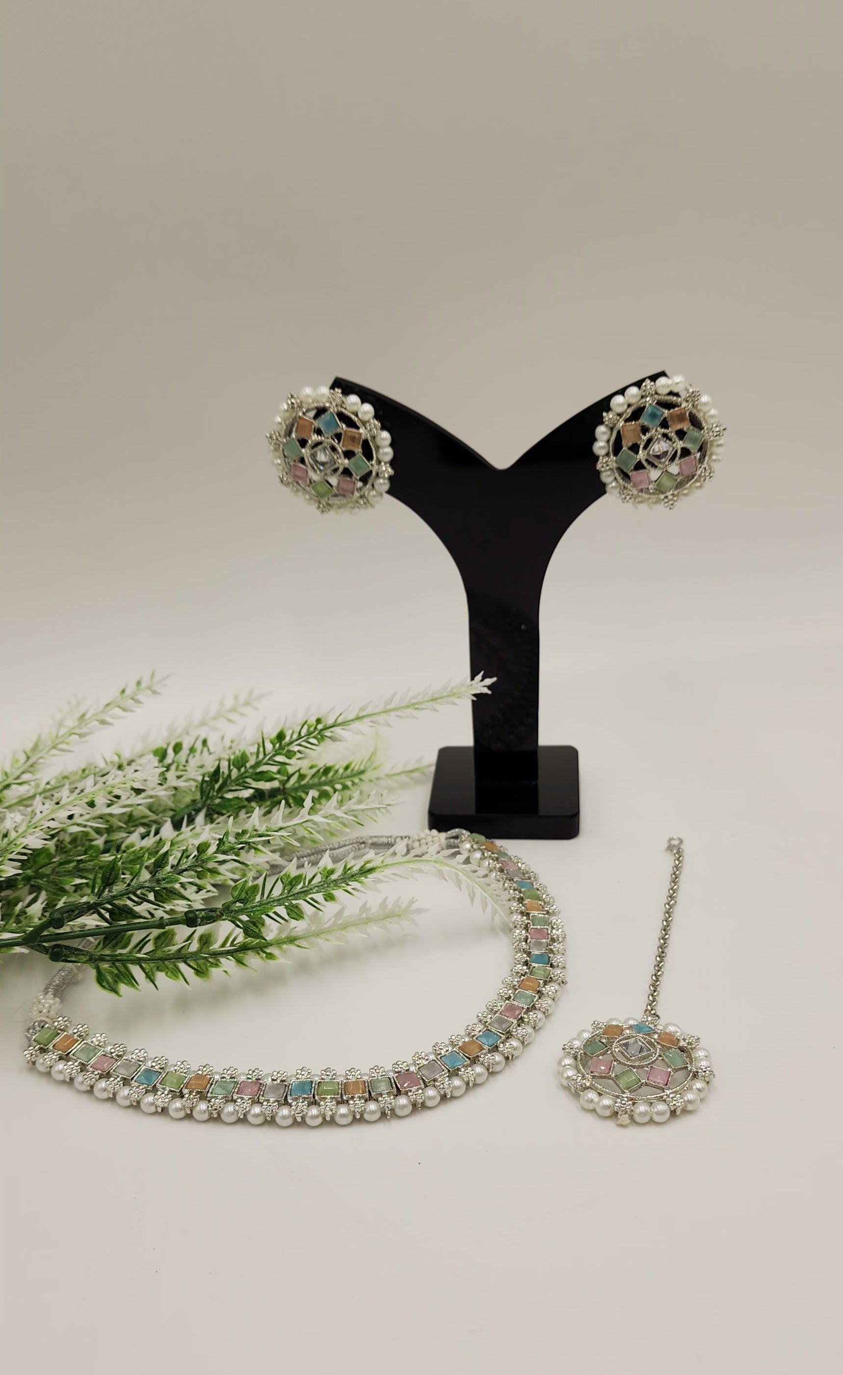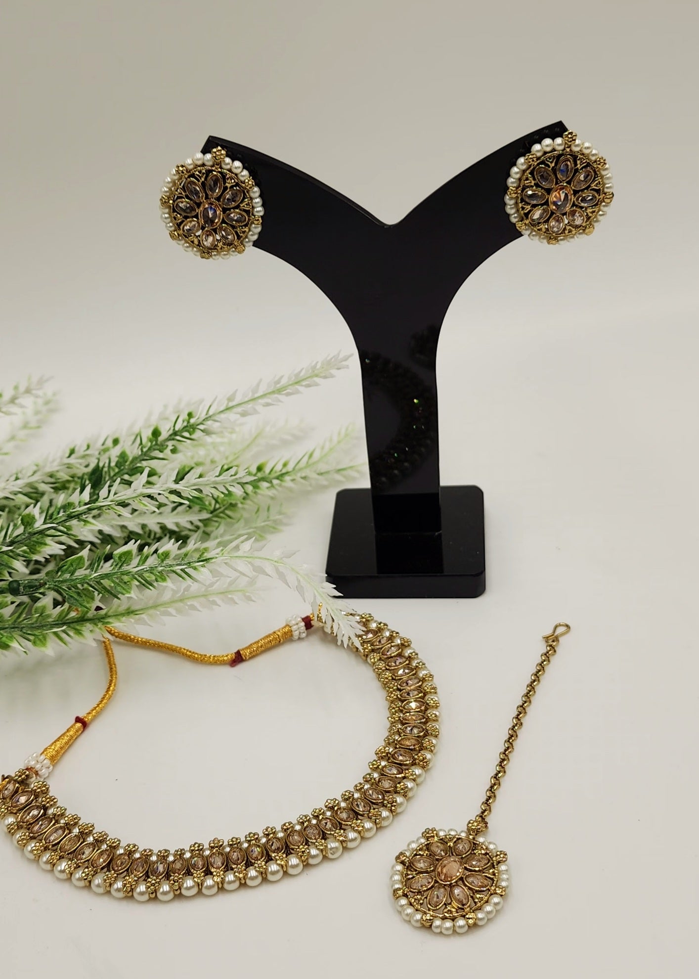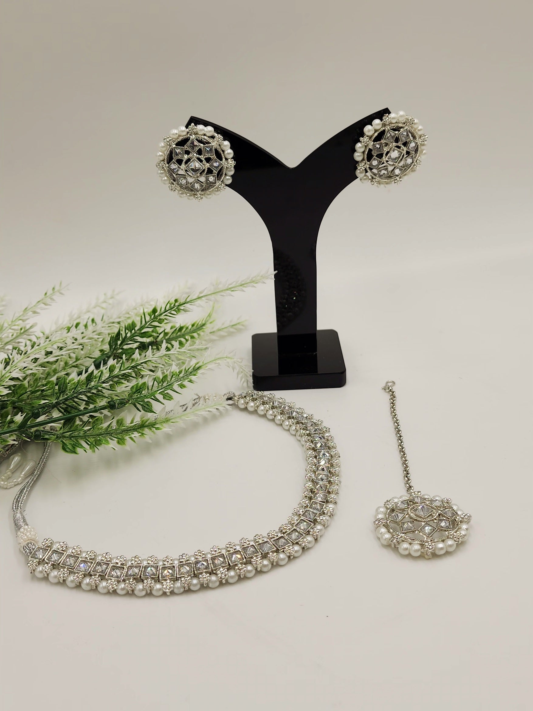 Polki kundan Simulated with Pearls.