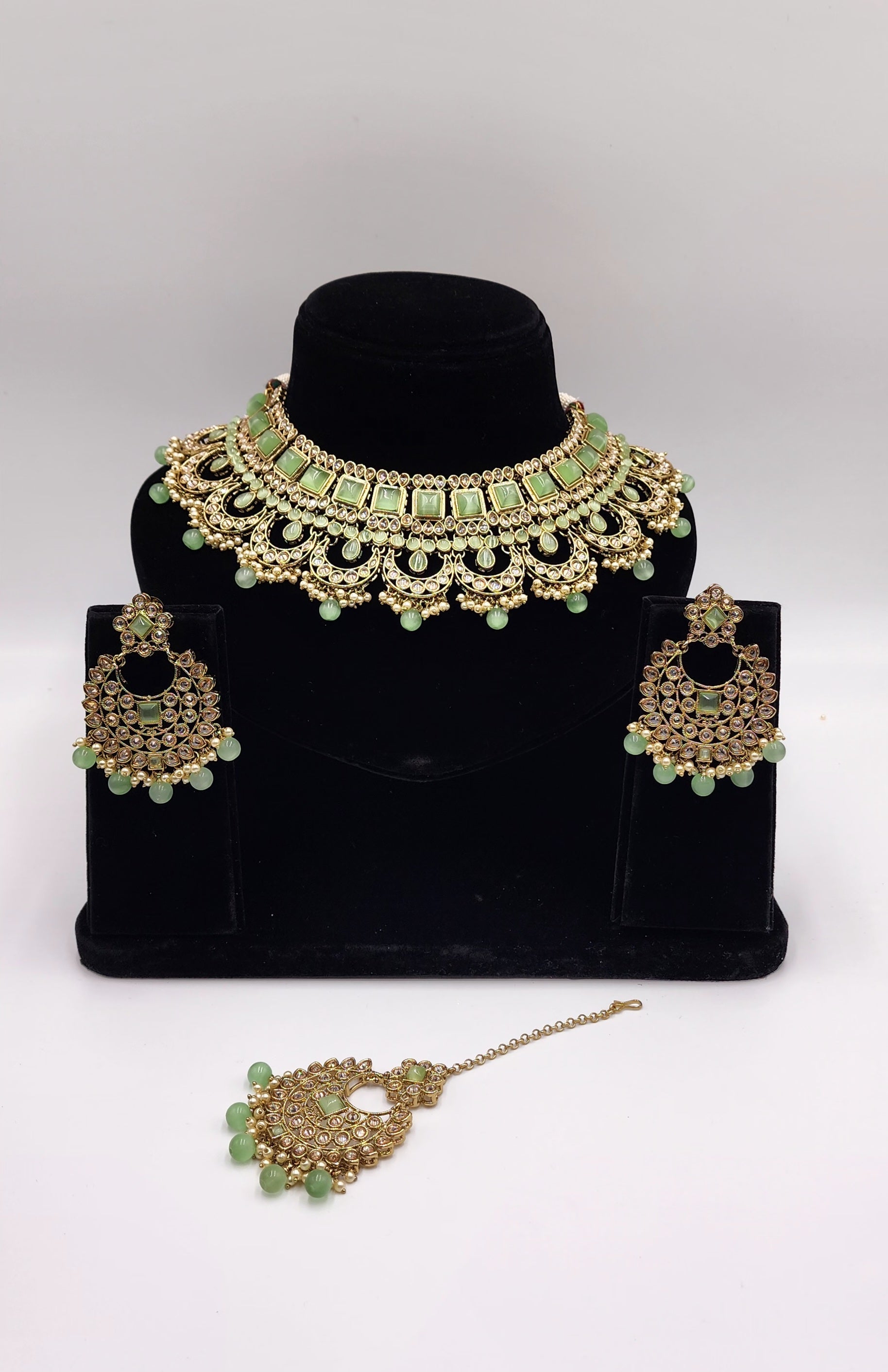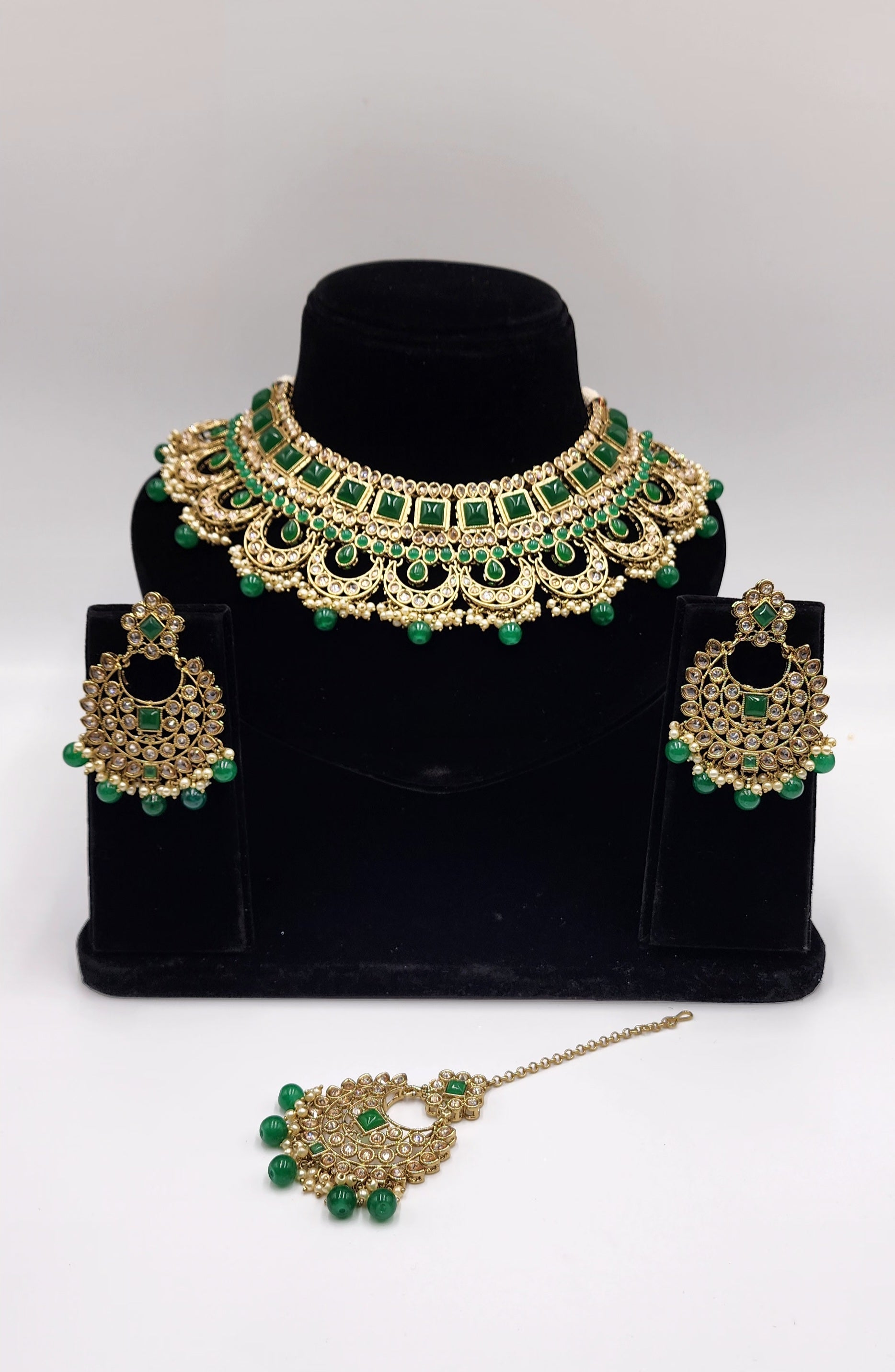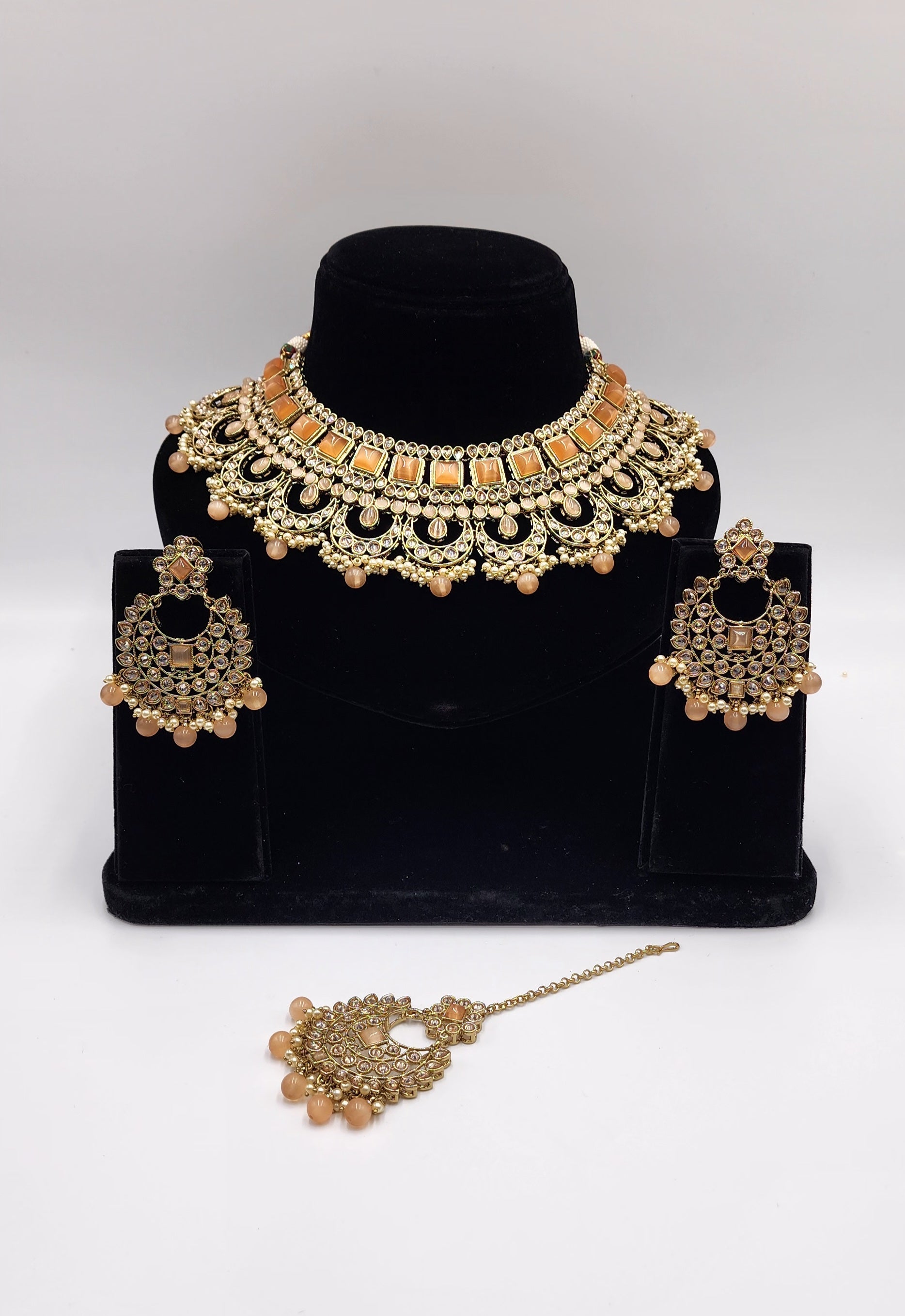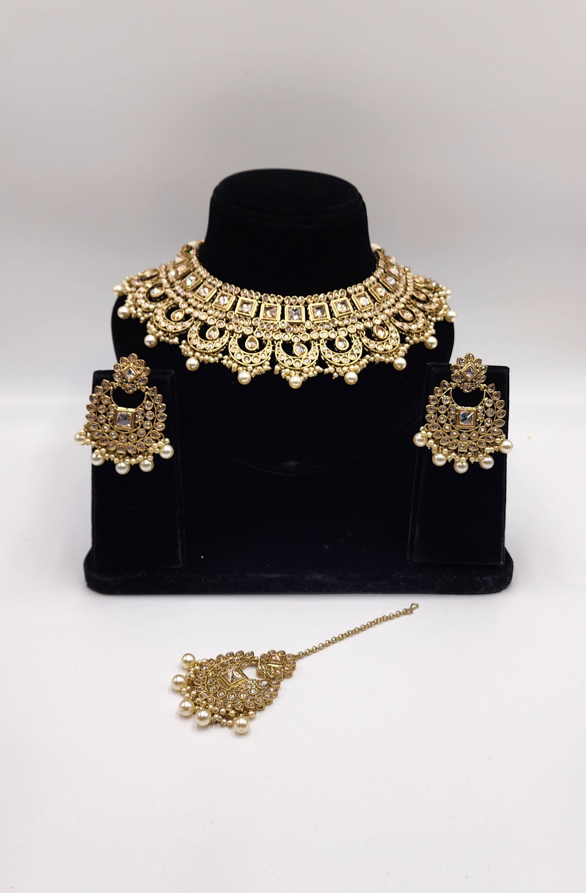 Gold Tone with polki stone and Faux Pearls.