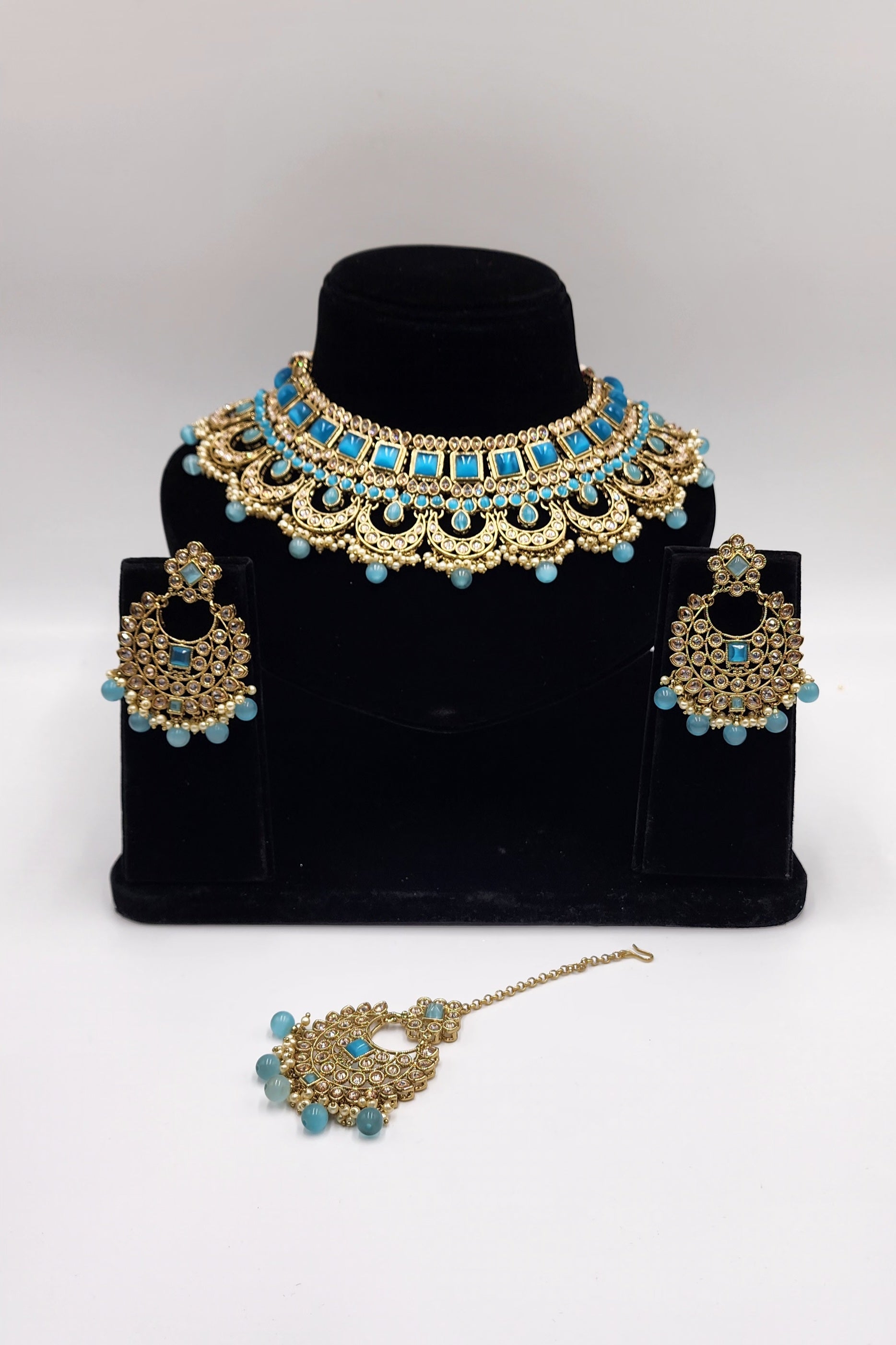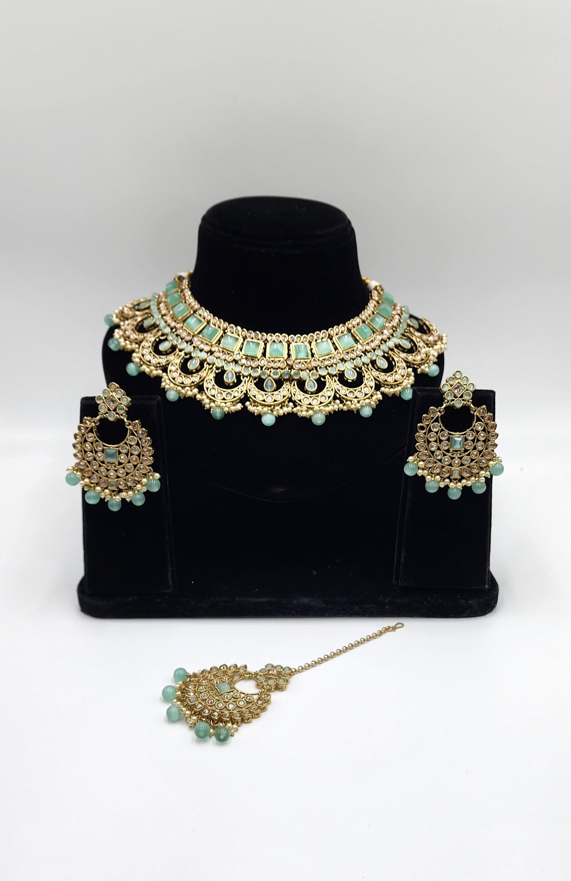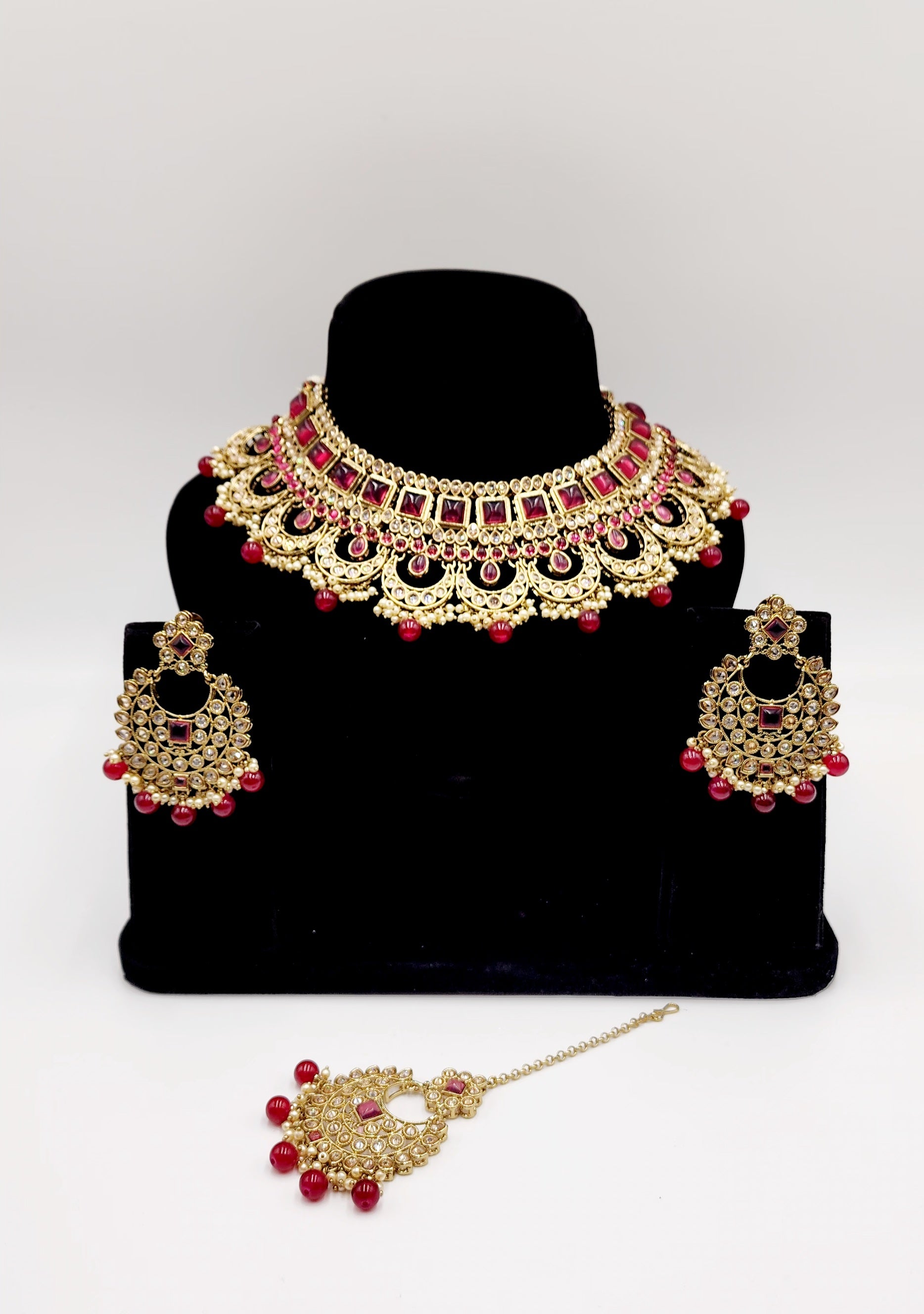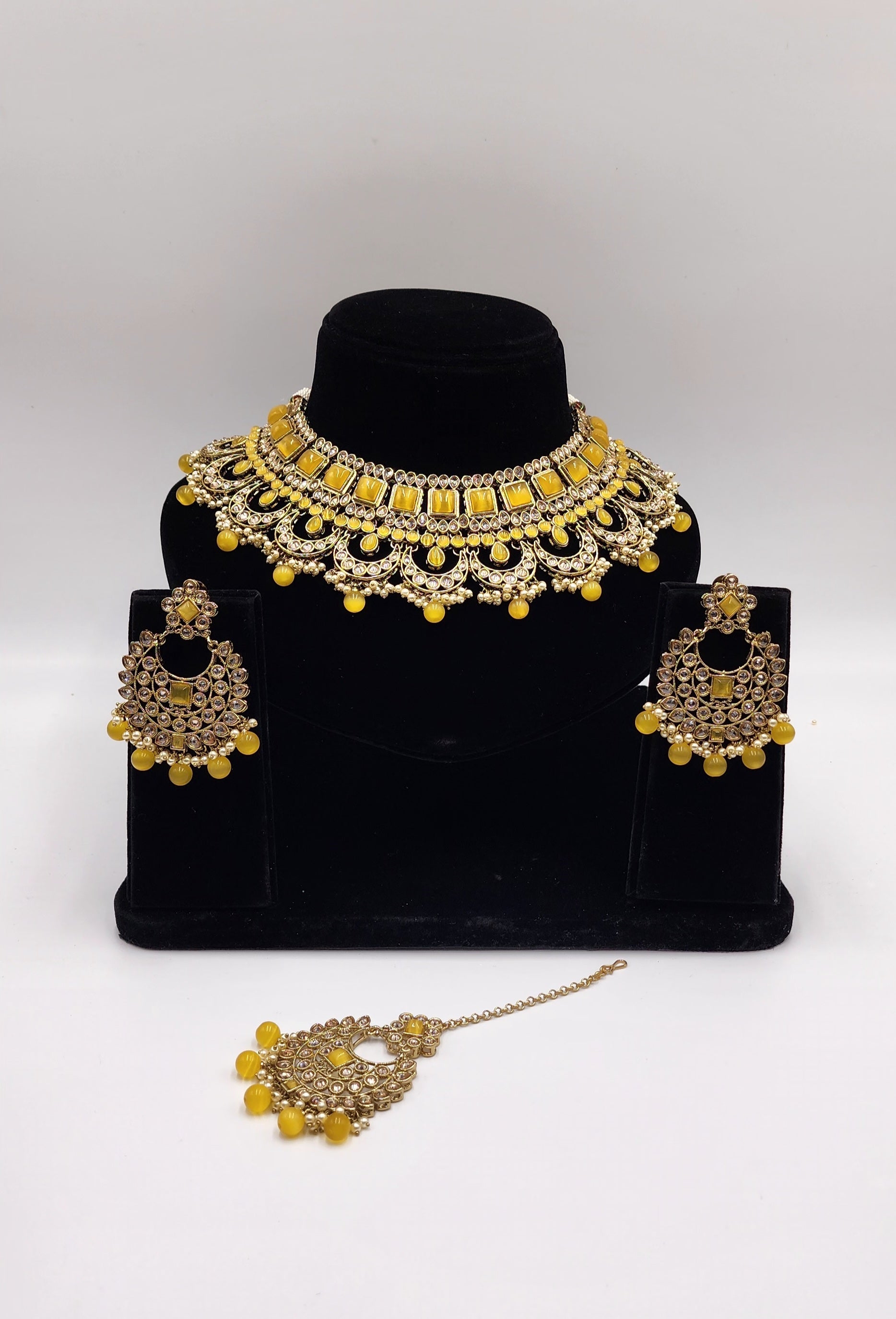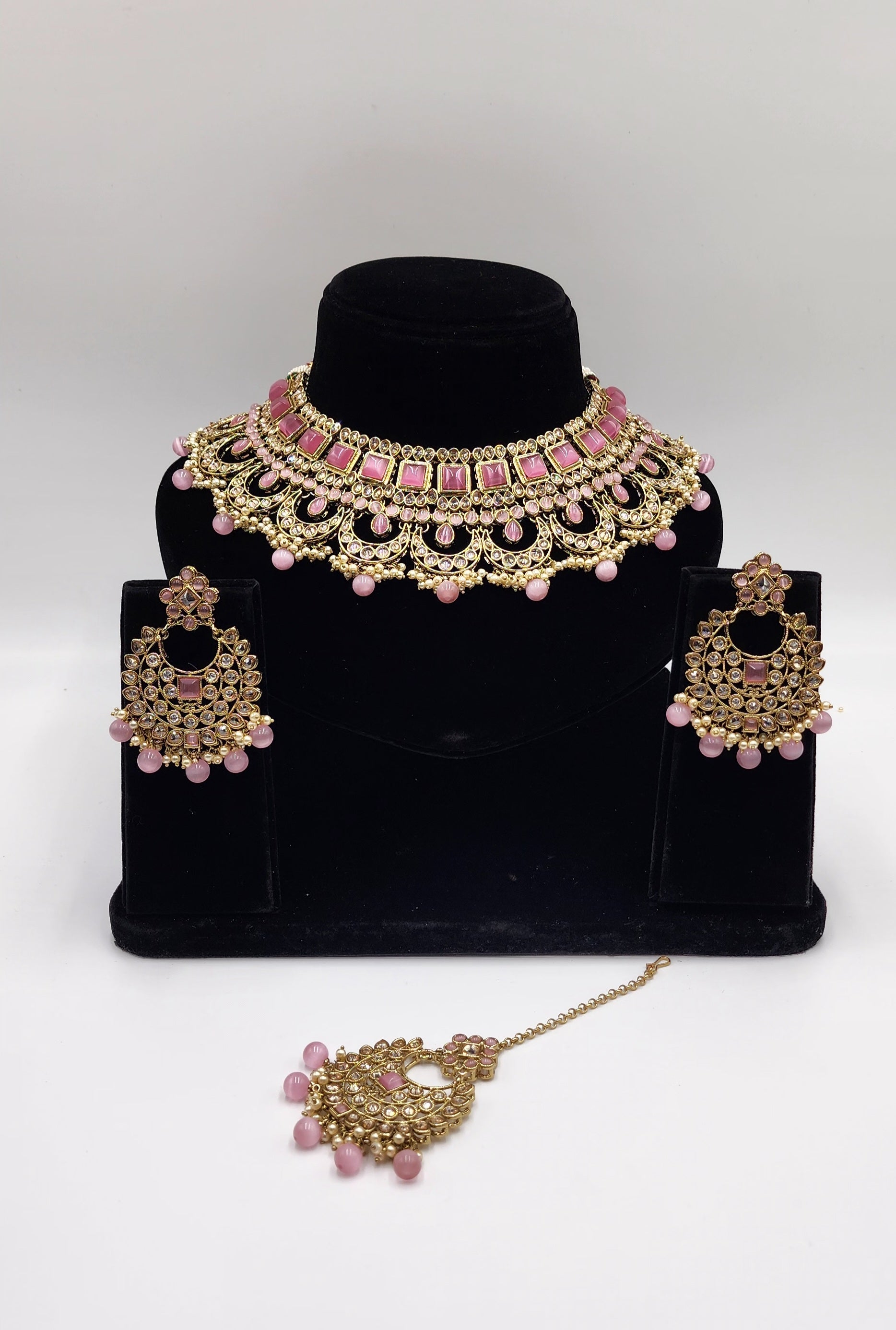 Gold Tone with polki stone and Faux Pearls.