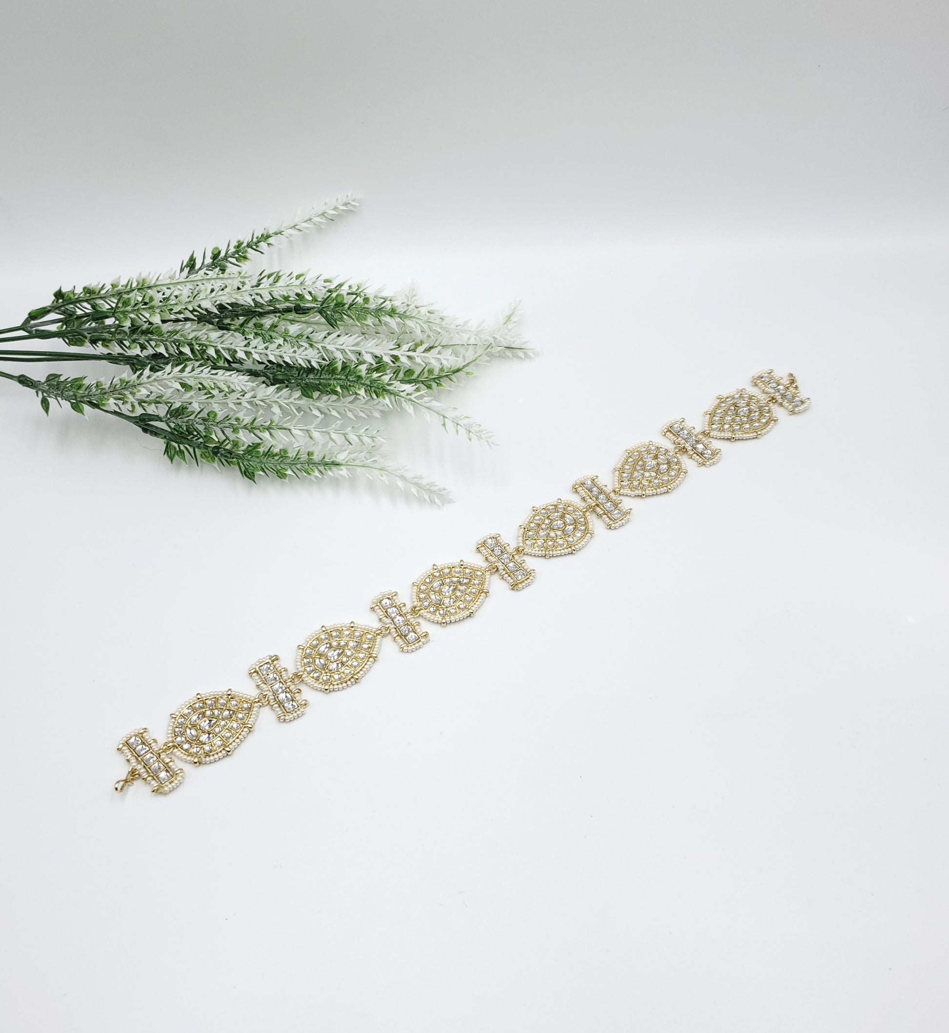 Gold Tone traditional with beeds and kundan stone sheeshphool for any occasions.