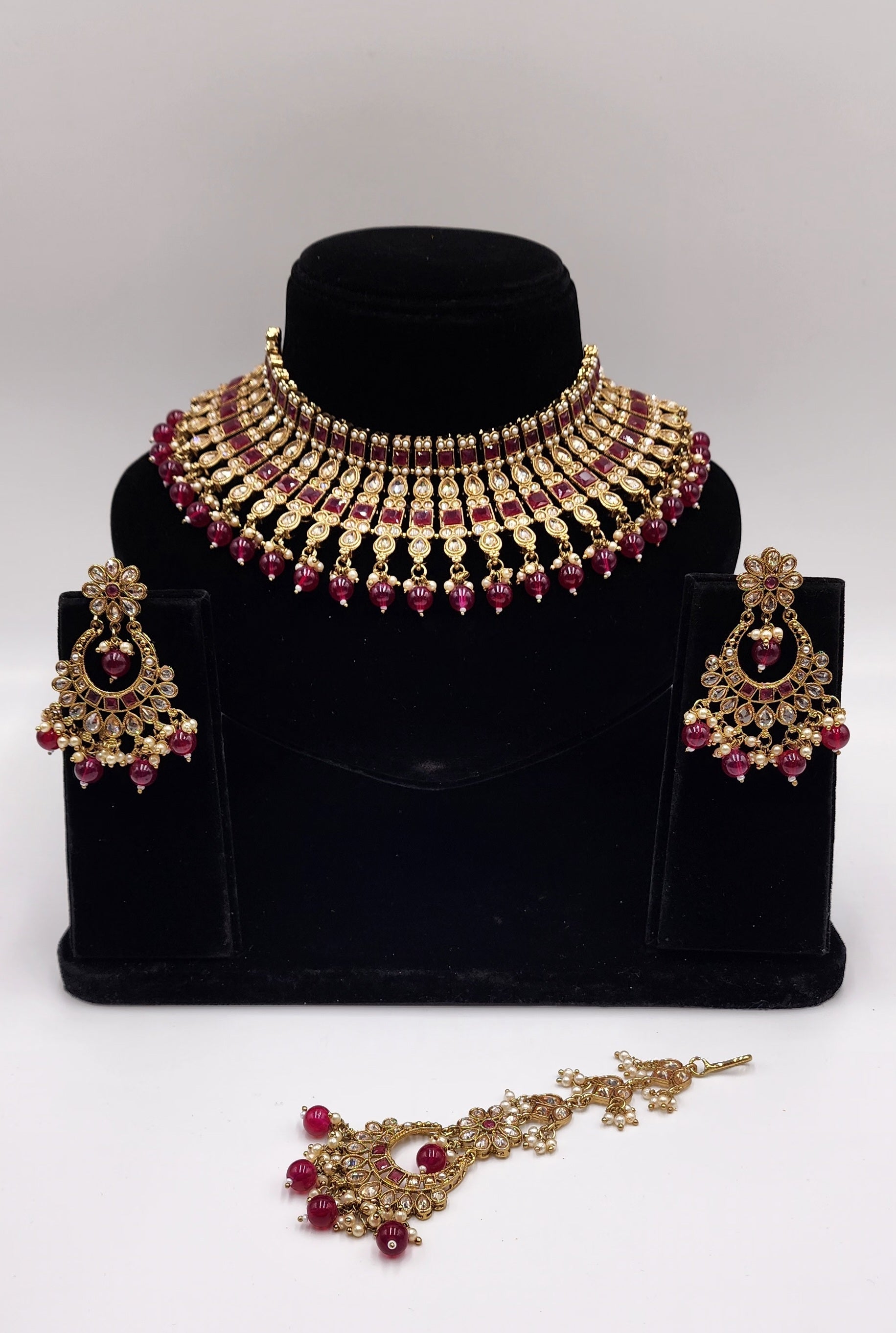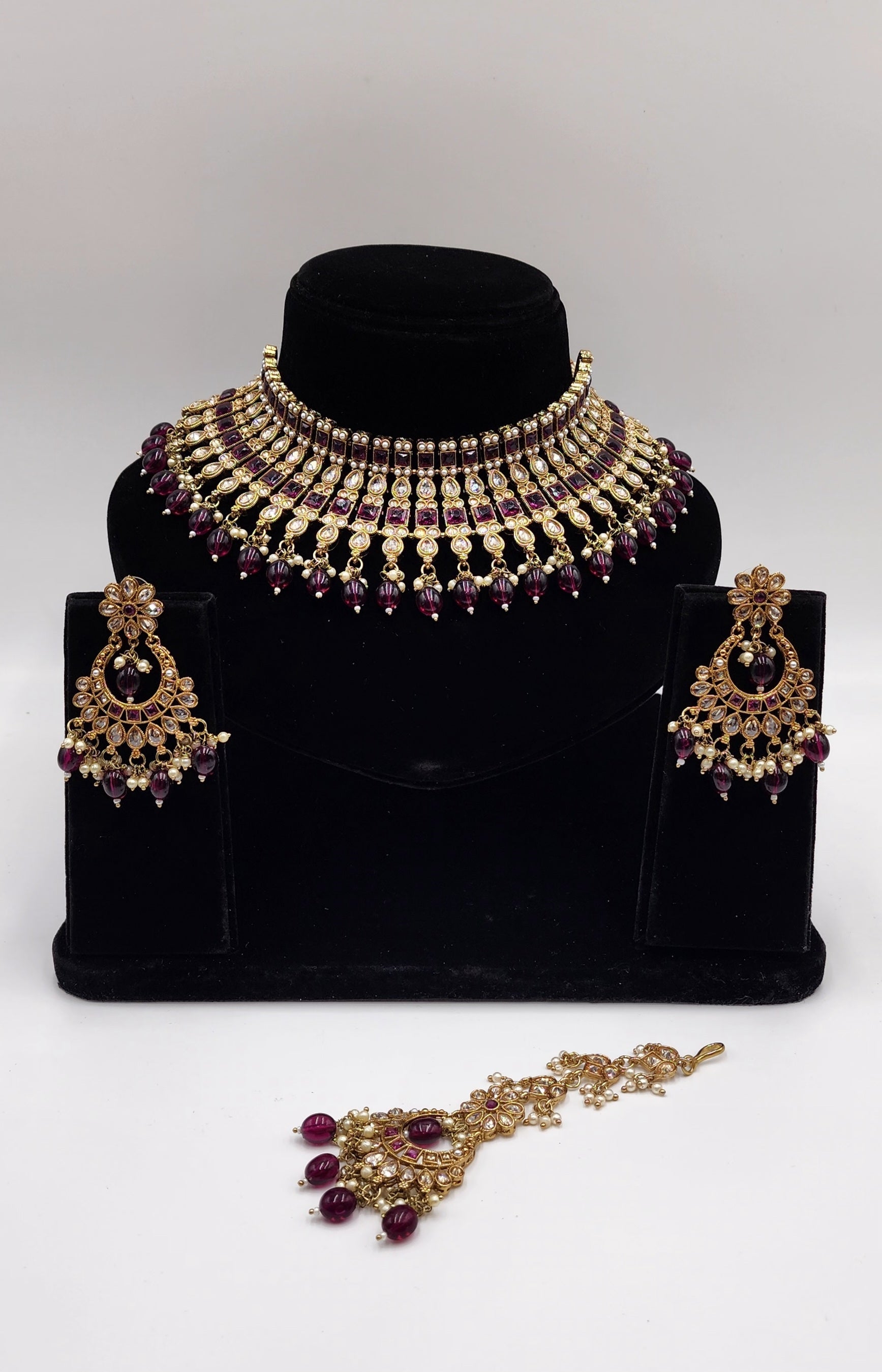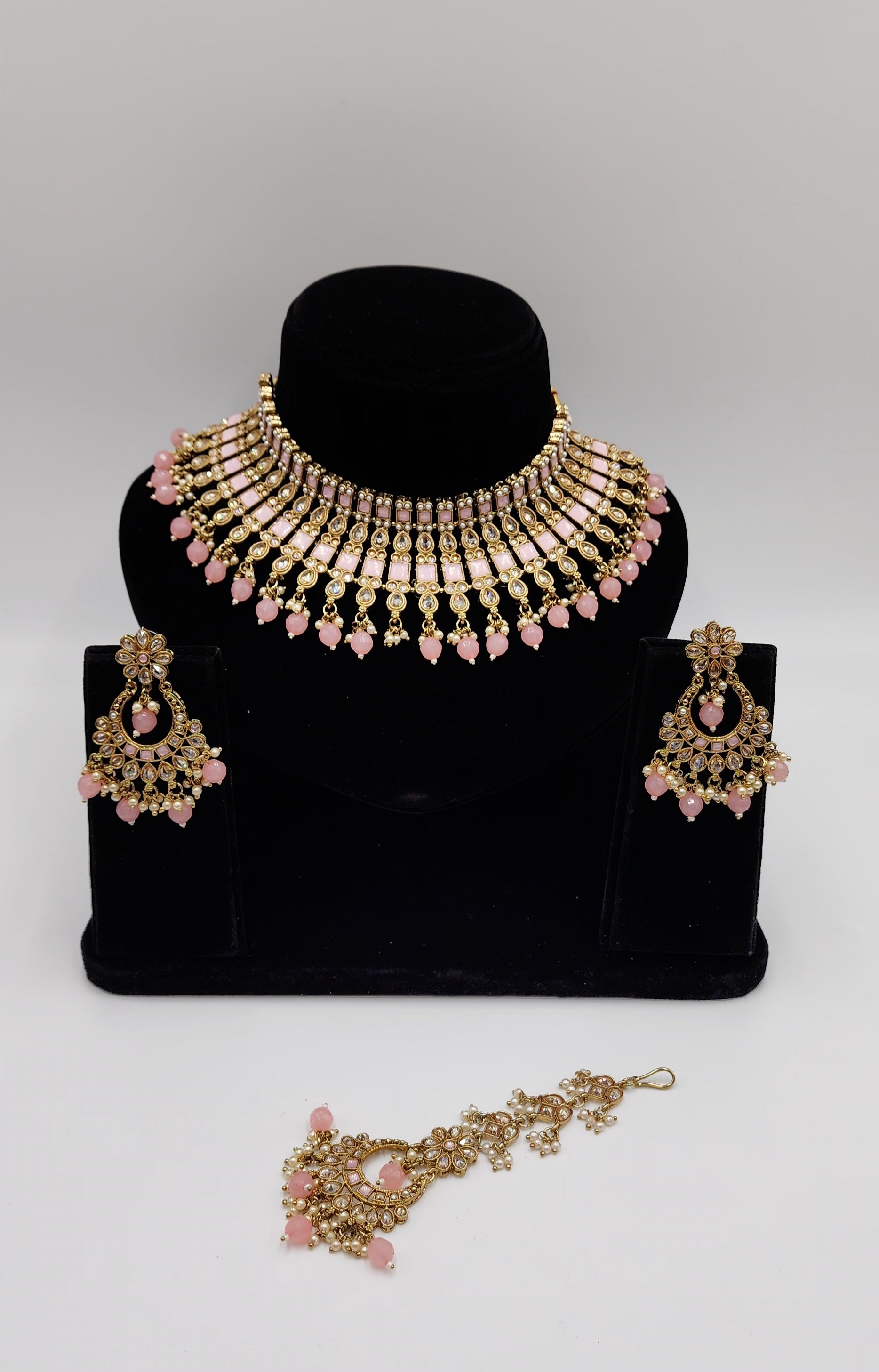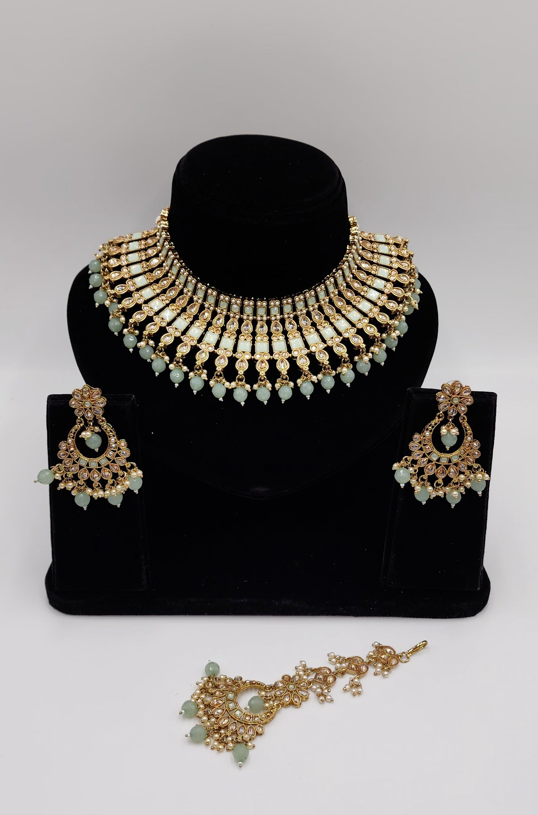 Gold Mehendi polki simulated with pearls and beads. Semi bridal set.