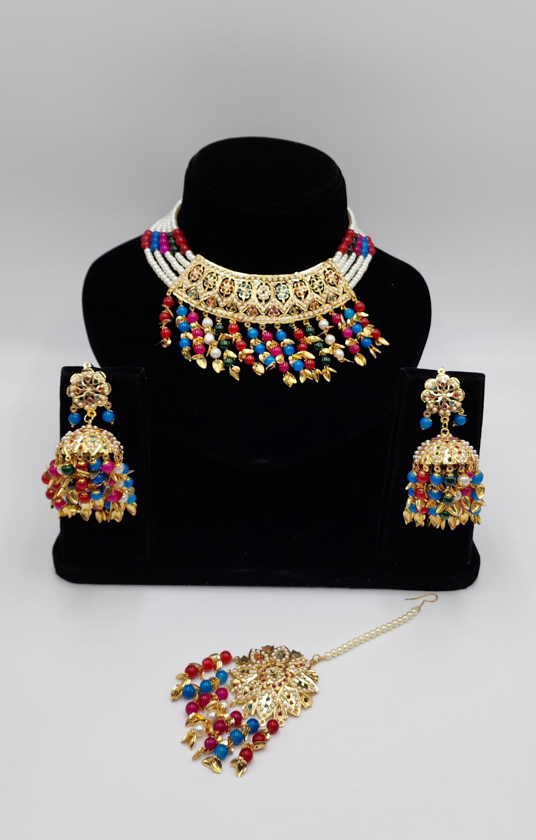 Gold Tone jadau Set with Faux Pearls