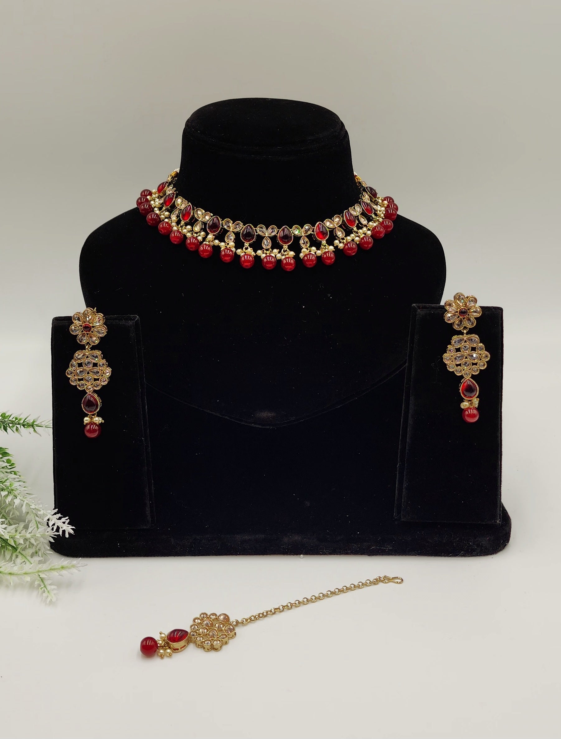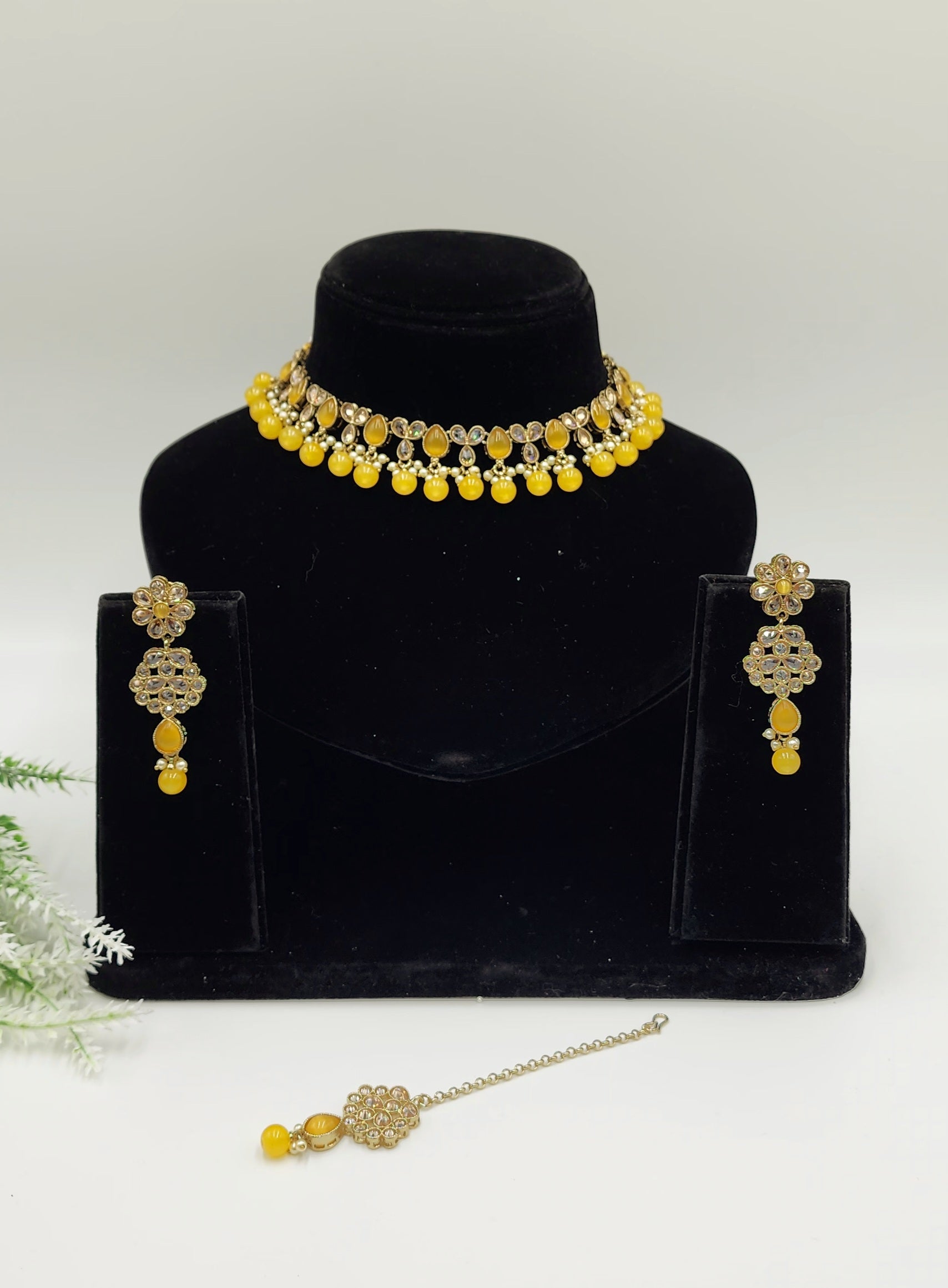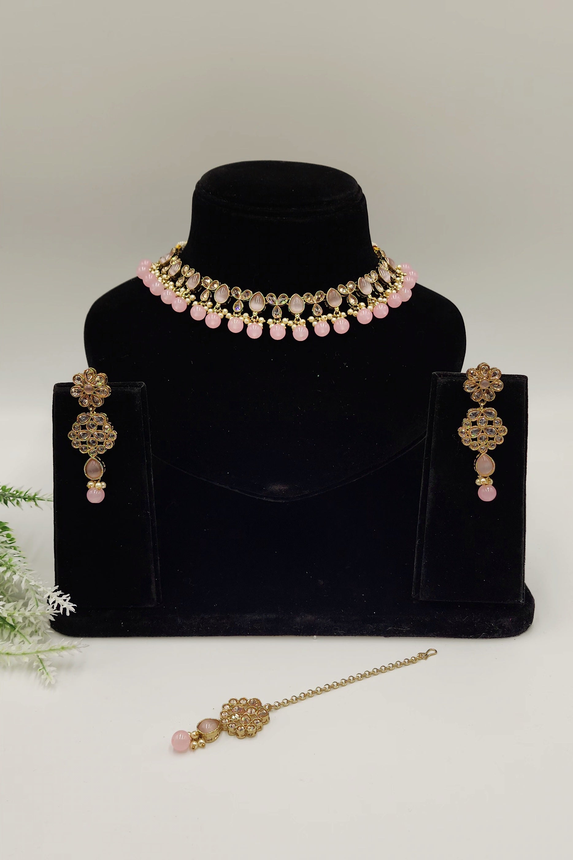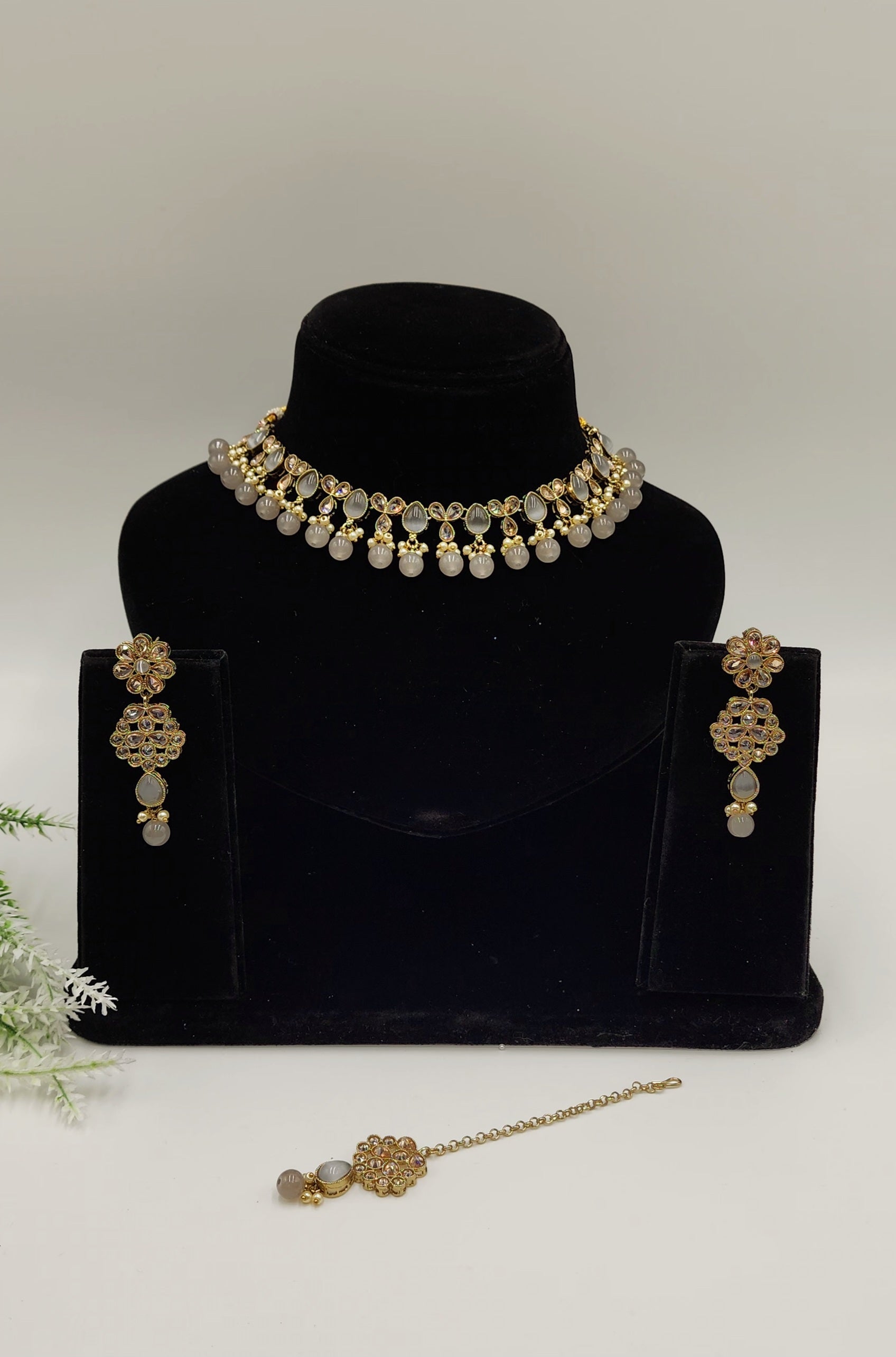 Very elegant look with polki stones and pearls.