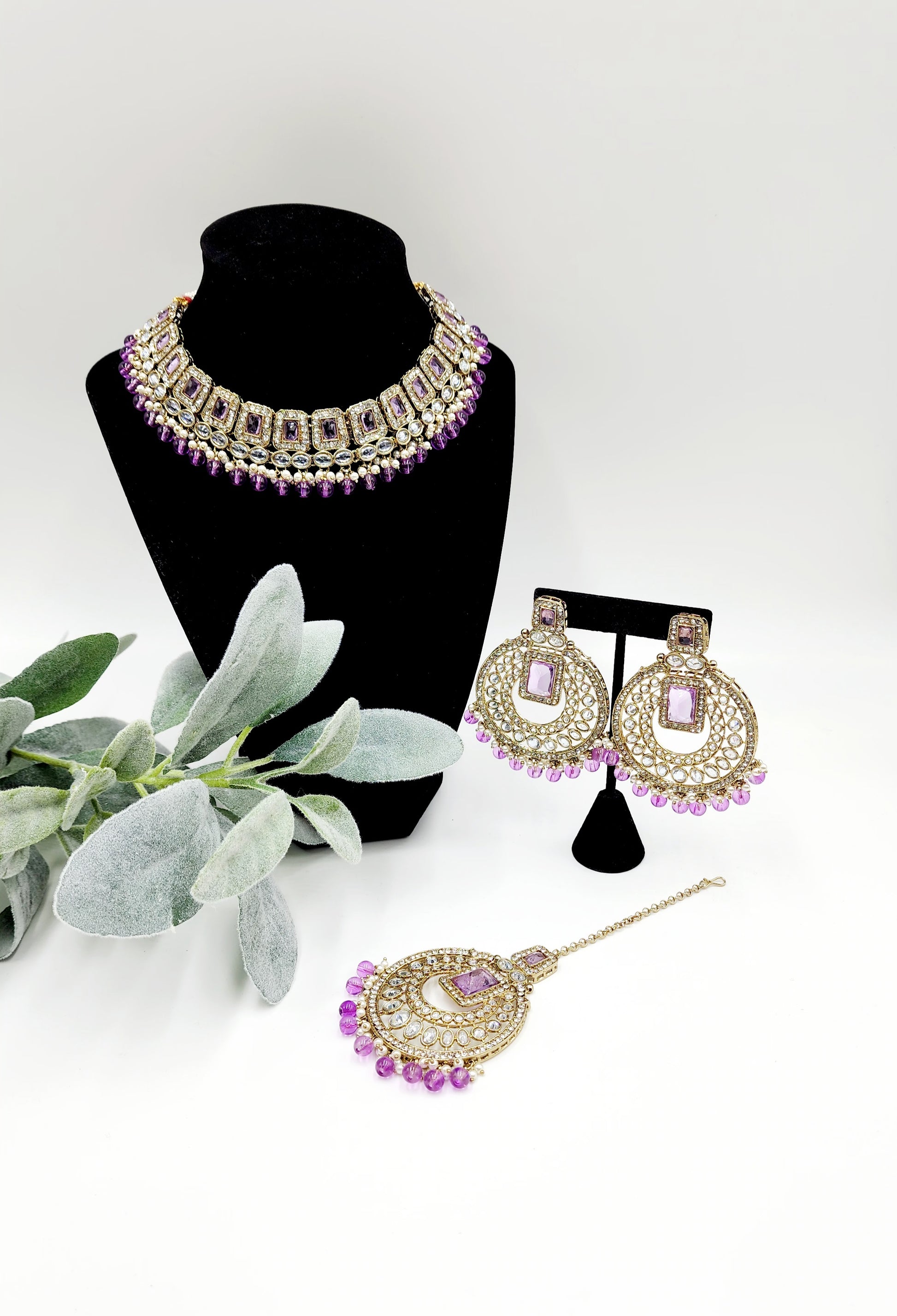 Gold Tone with with fine clear polki, Simulated with pearls and beeds.