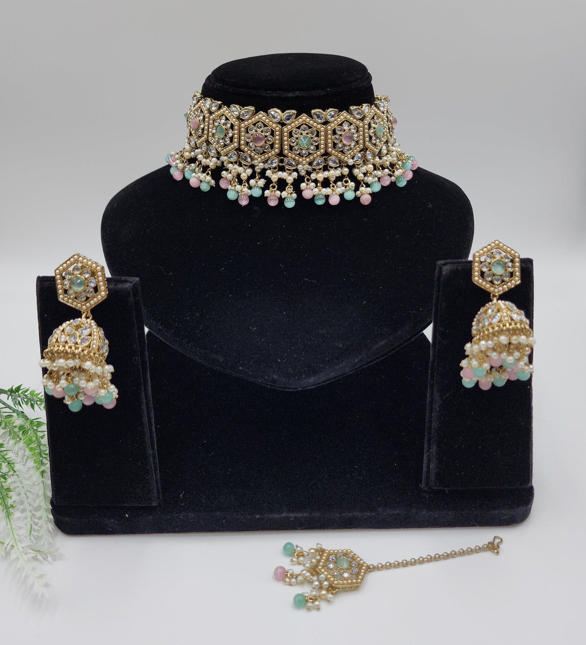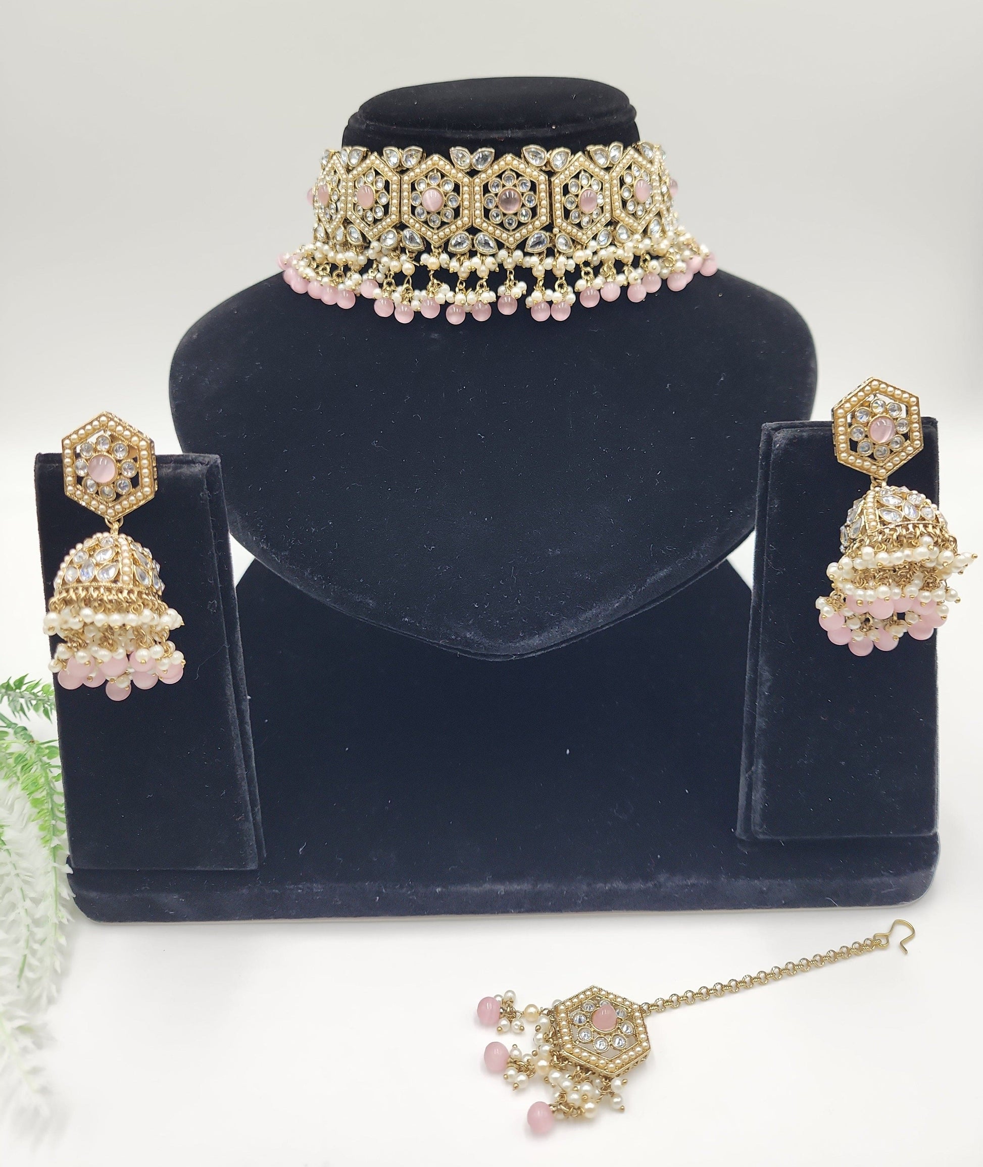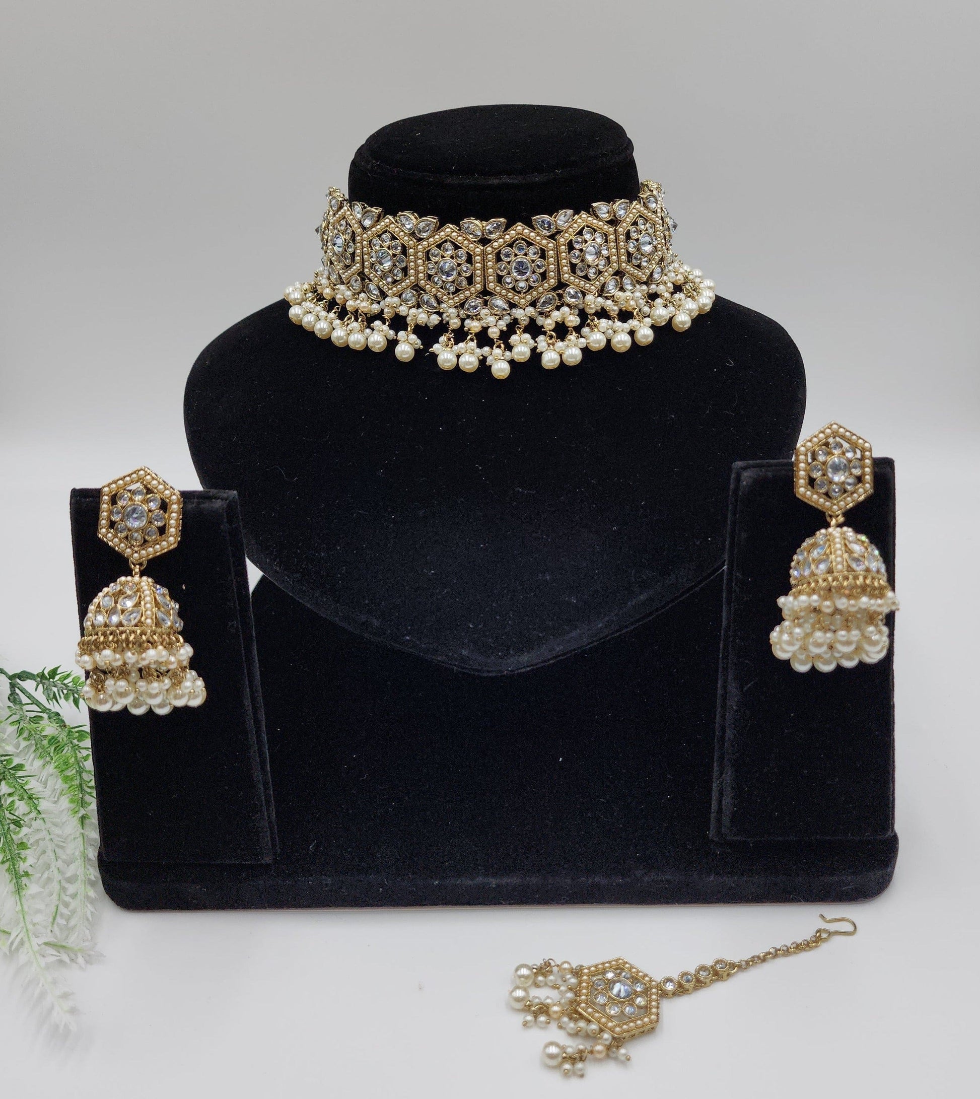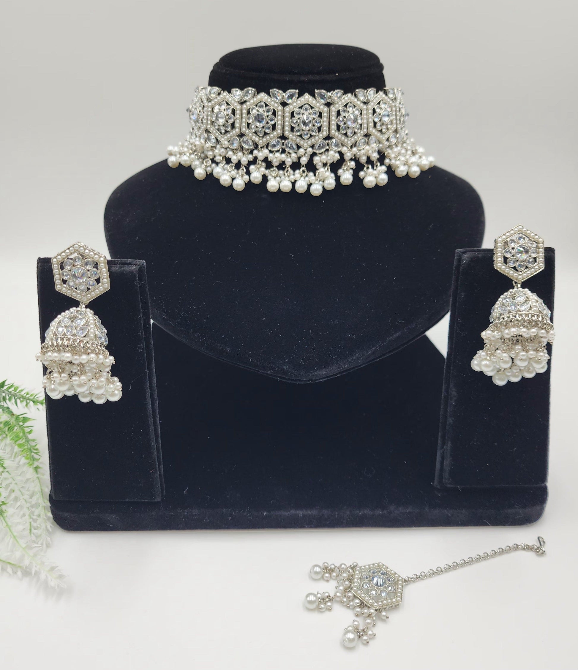 Clear polki Simulated with pearls and beeds