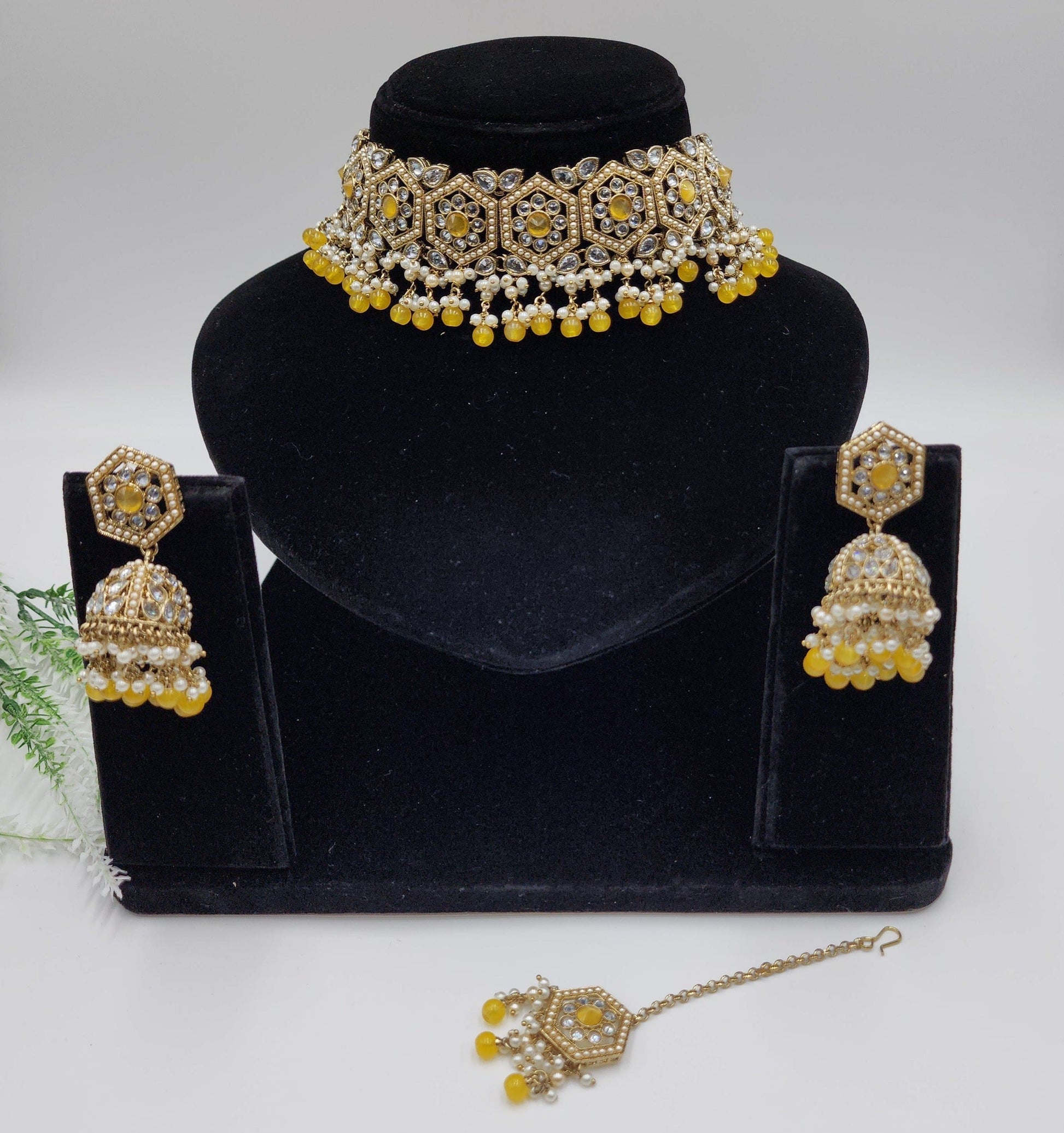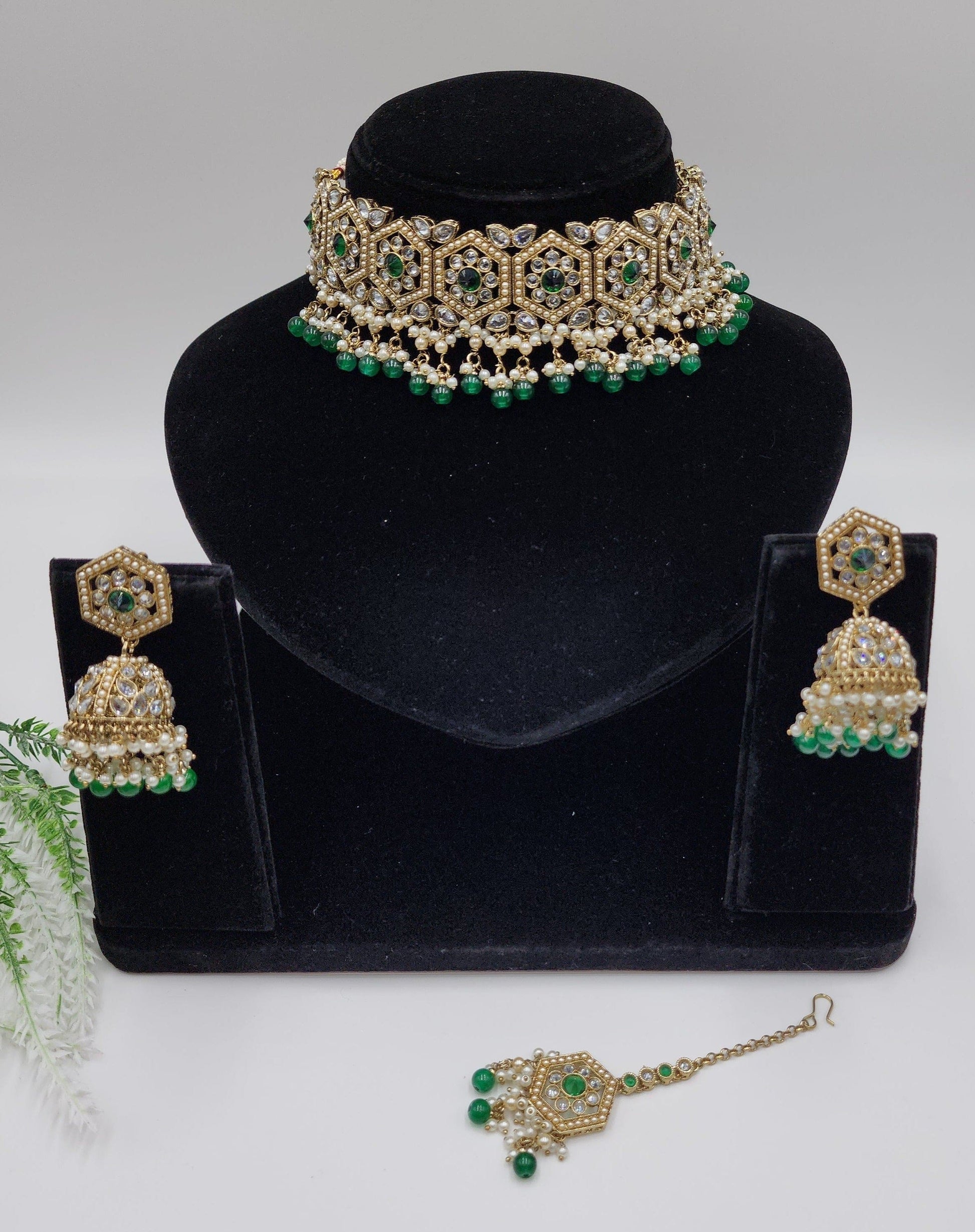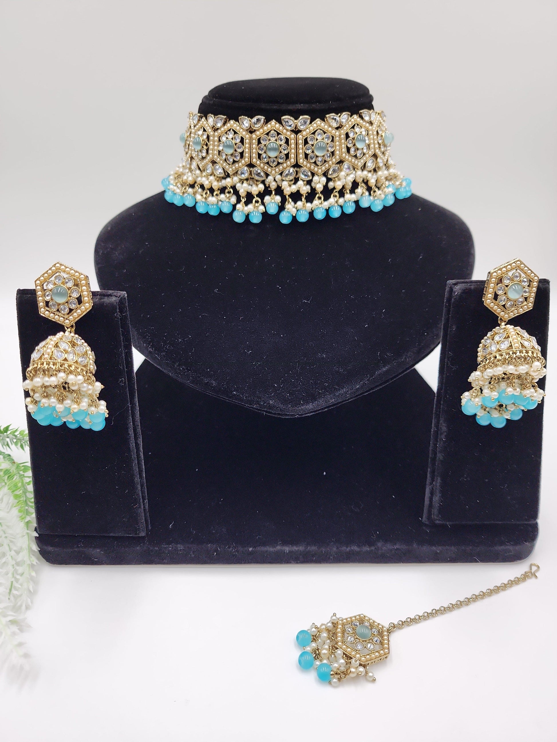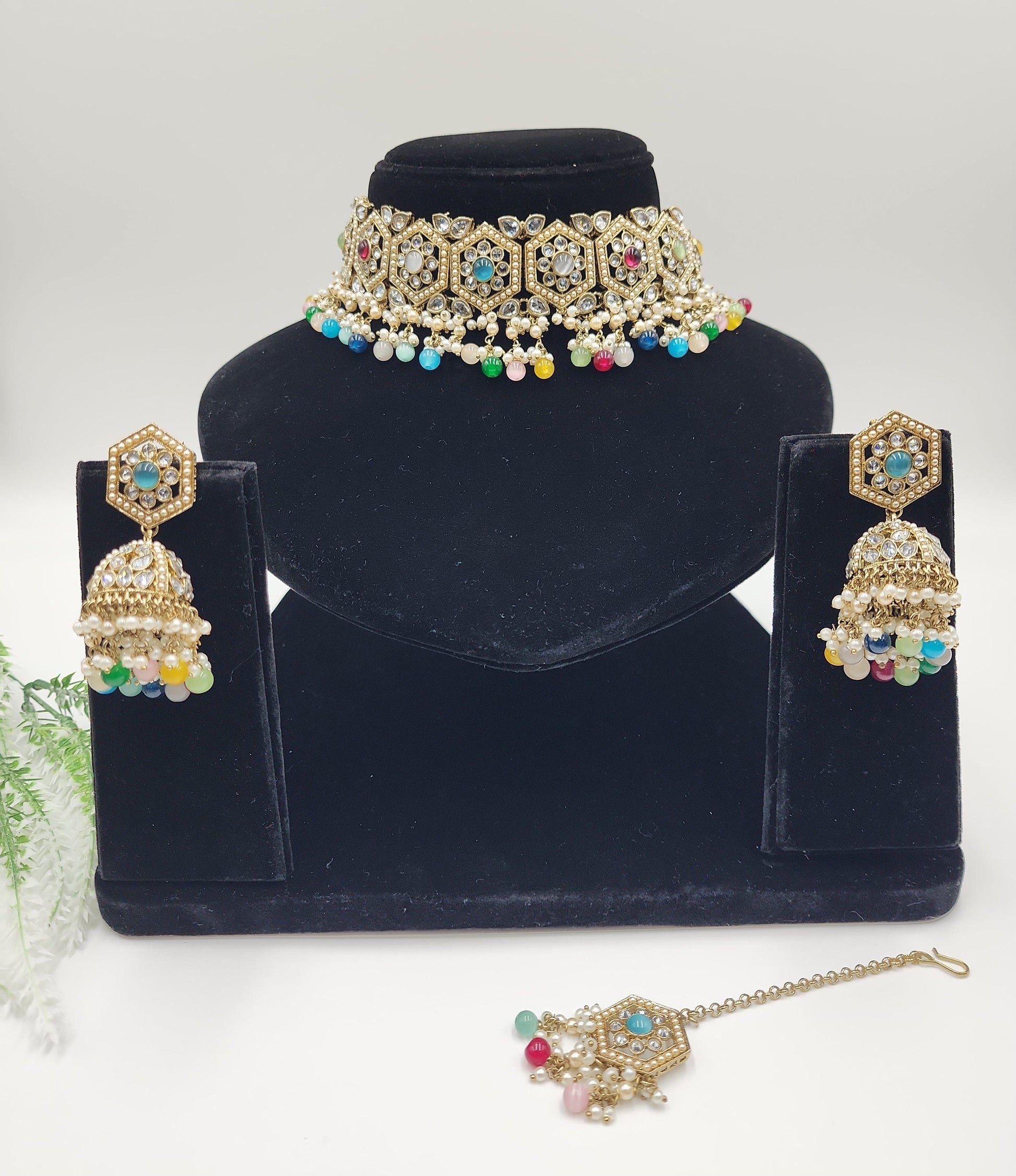 Clear polki Simulated with pearls and beeds