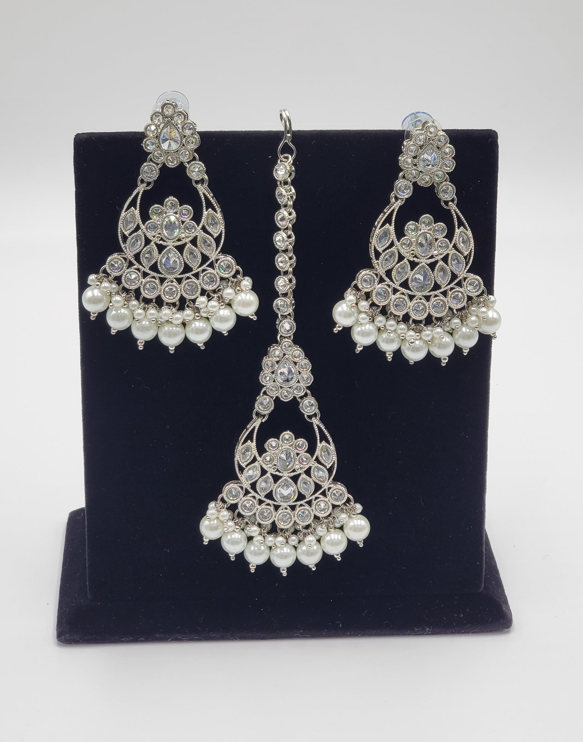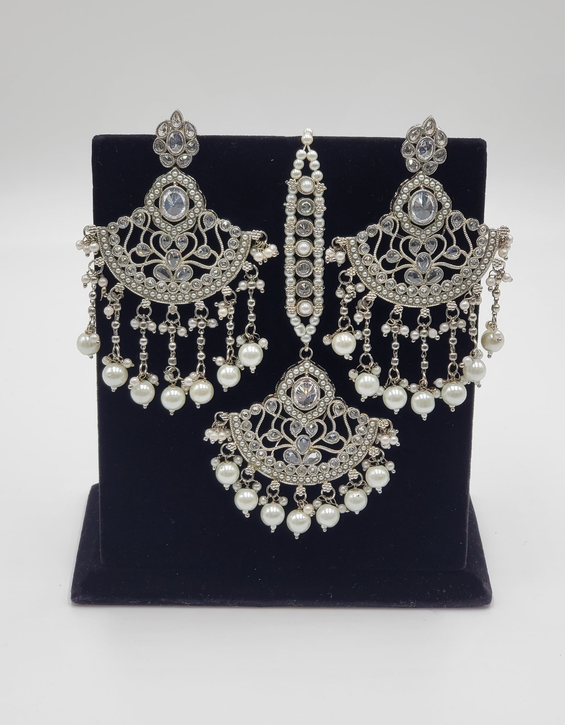 Silver Tone Simulated with Polki and pearls