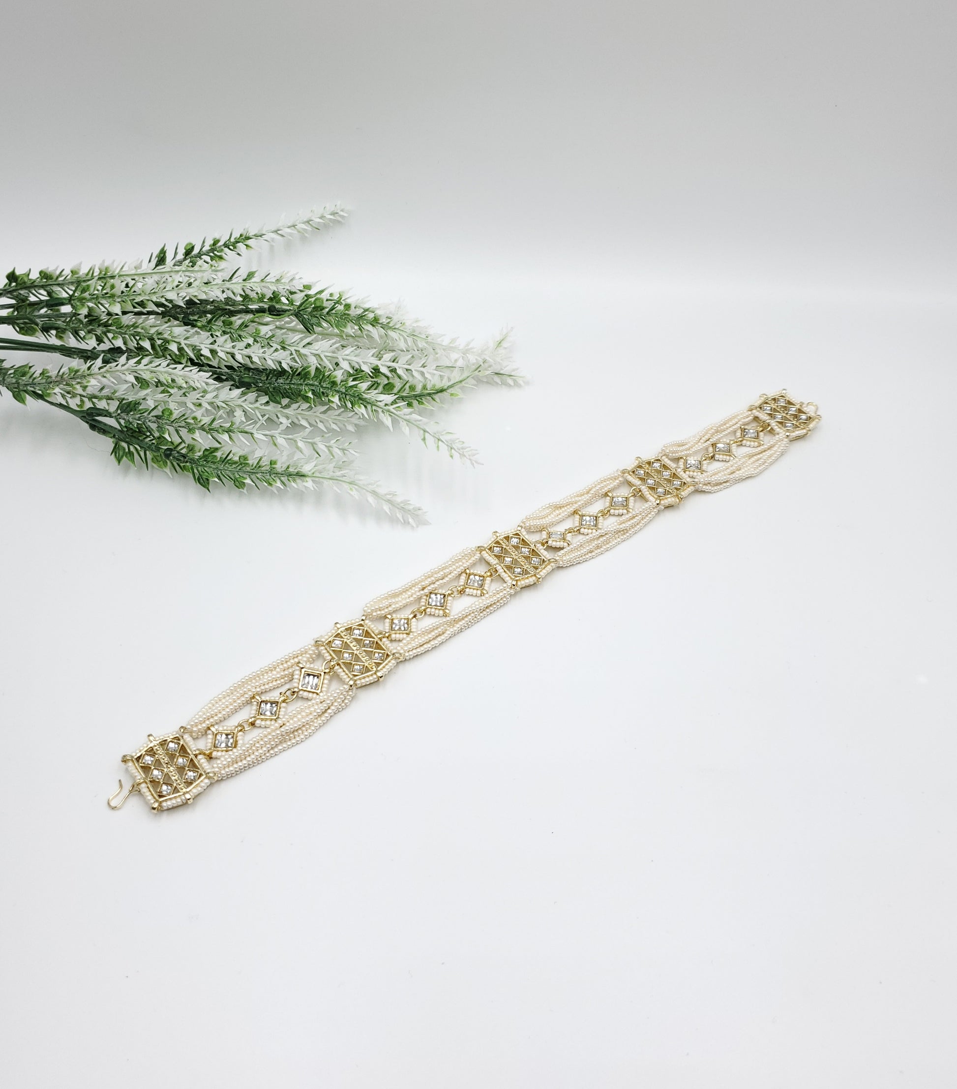 Gold Tone Simulated with beeds and kundan. Very elegant peice.