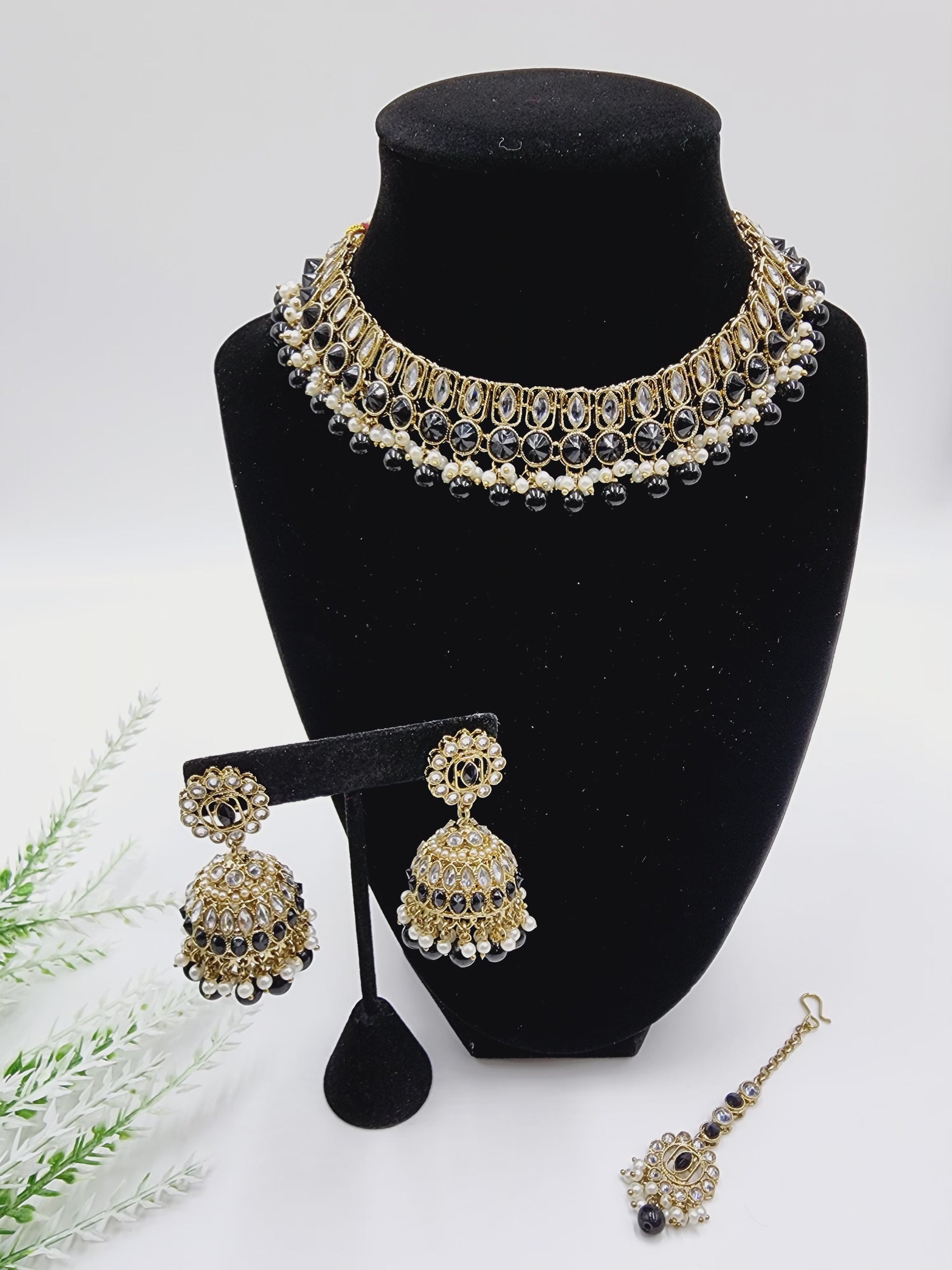 Gold ton with clear polki and gold polki Simulated with pearls.